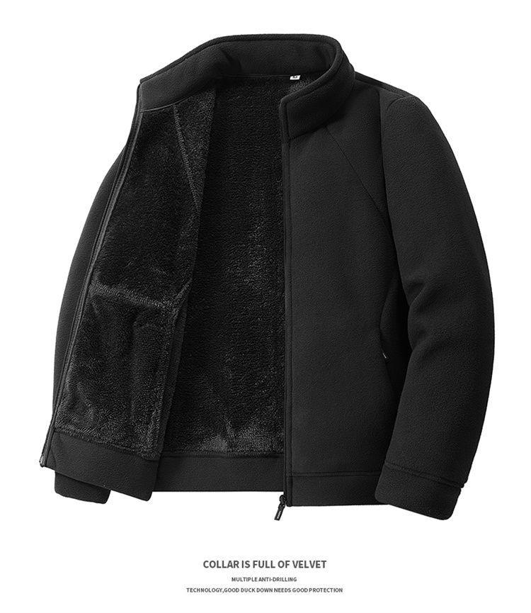 가을과 겨울 새로운 야외 양털 의류 남성 스탠드 칼라 카디건 기모 따뜻한 스웨터 더블 양털 두꺼운 코트