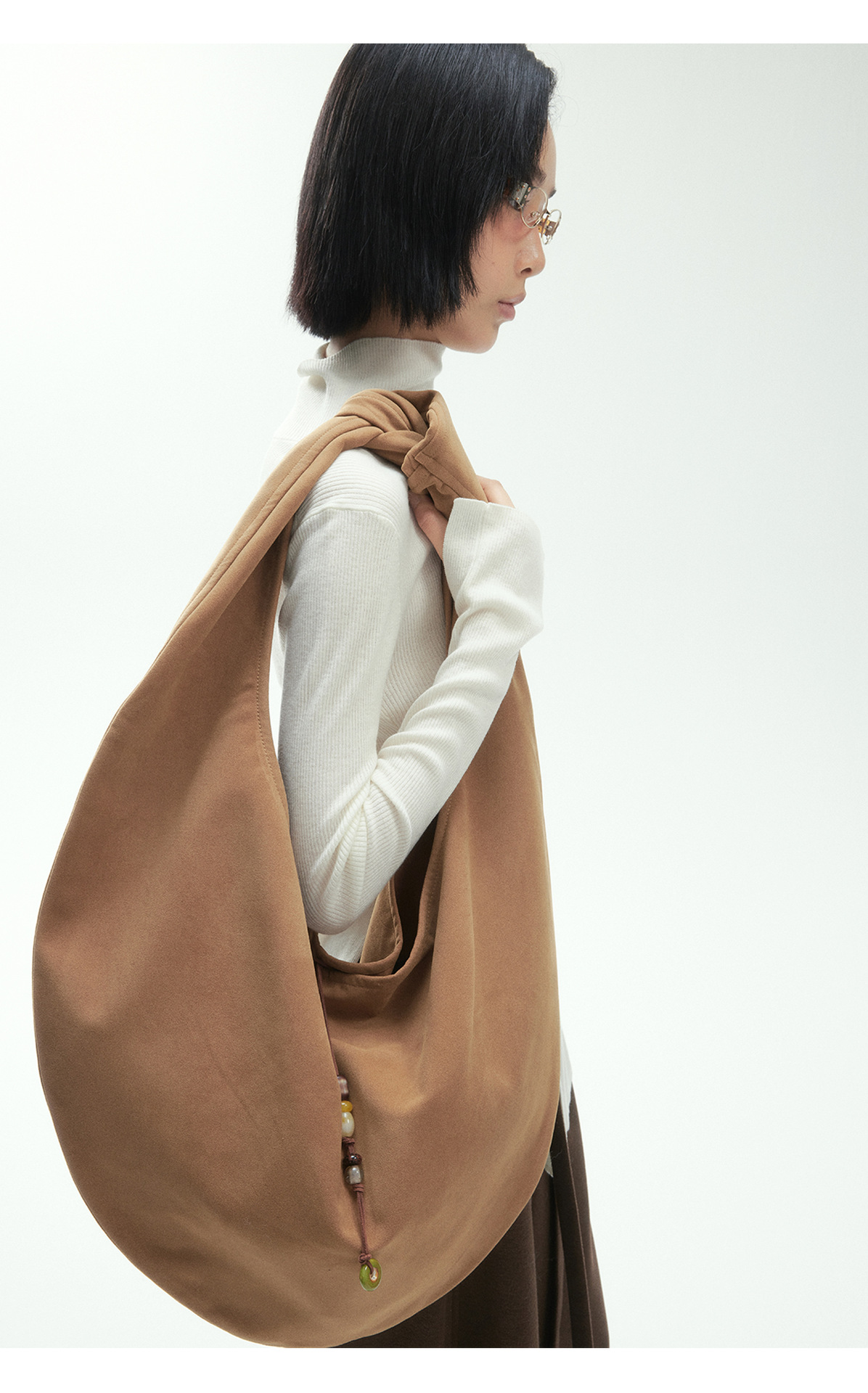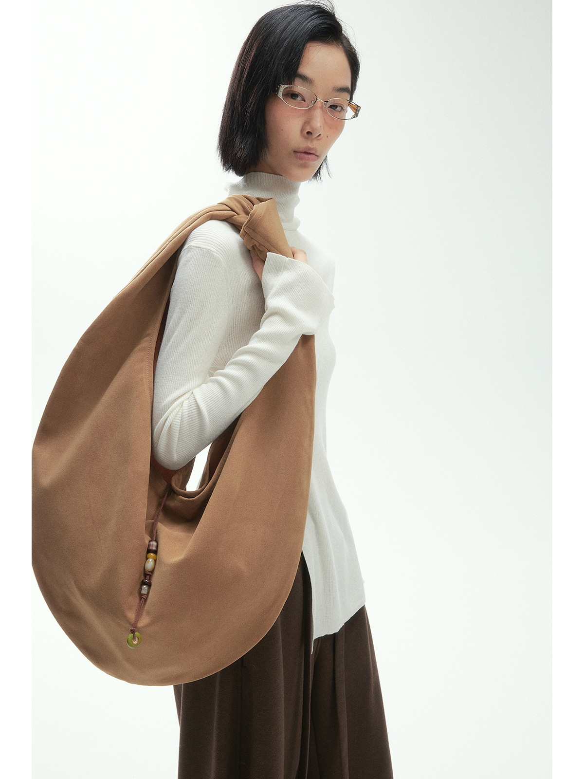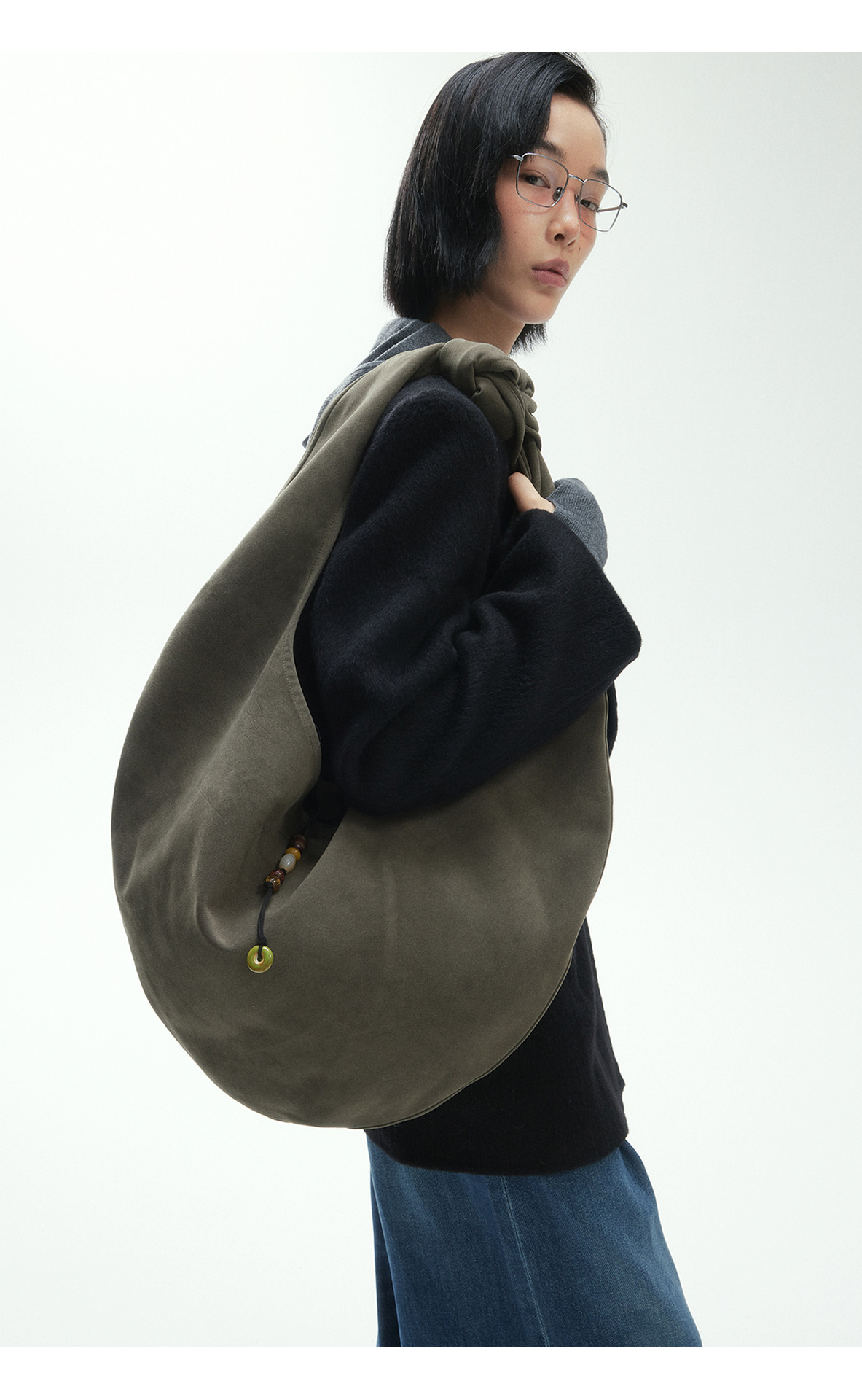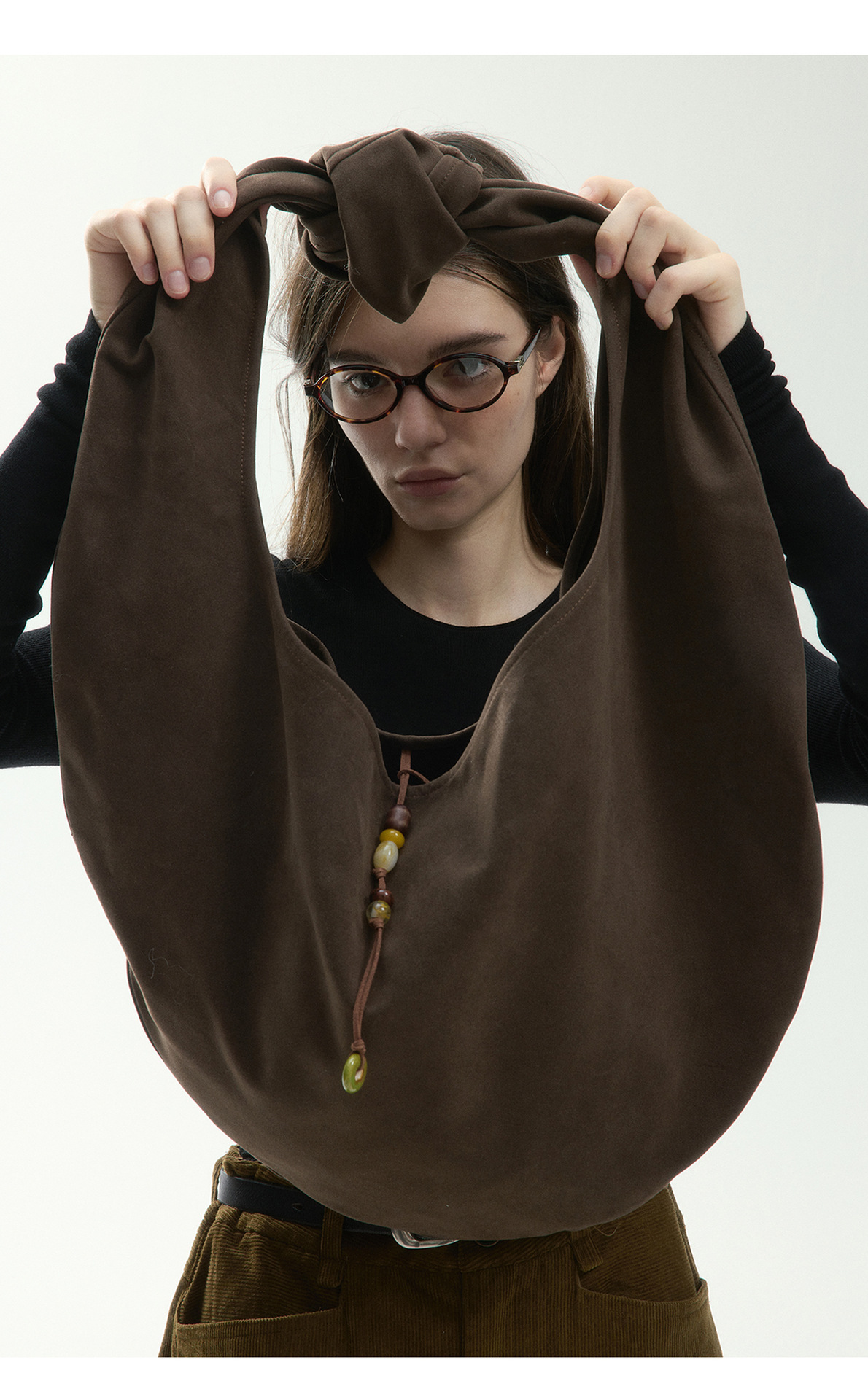 [시간] 뉴 스웨이드 매듭 디자인 레트로 옥비드 다크 브라운 크로스바디 대용량 토트 백 V7804