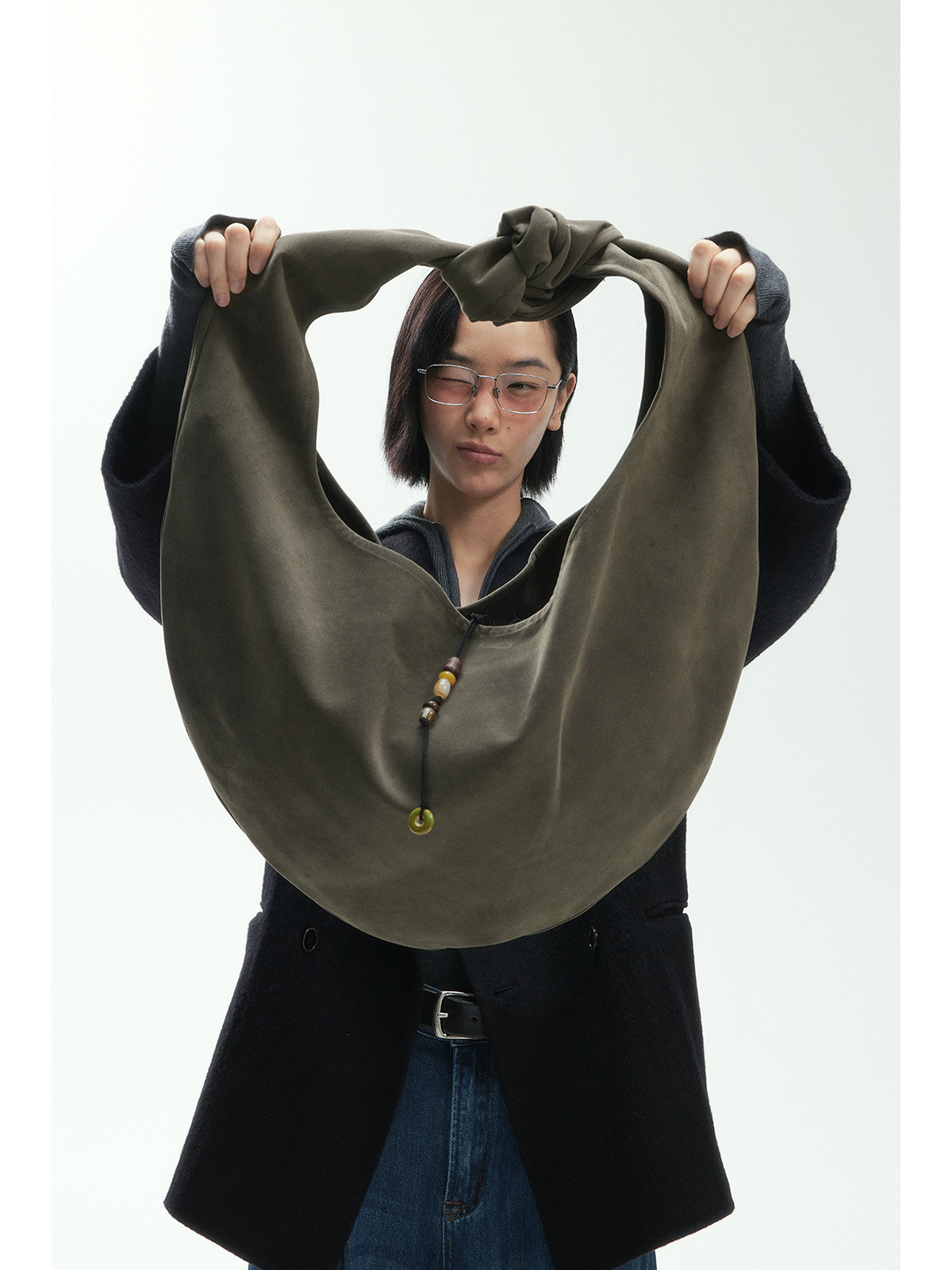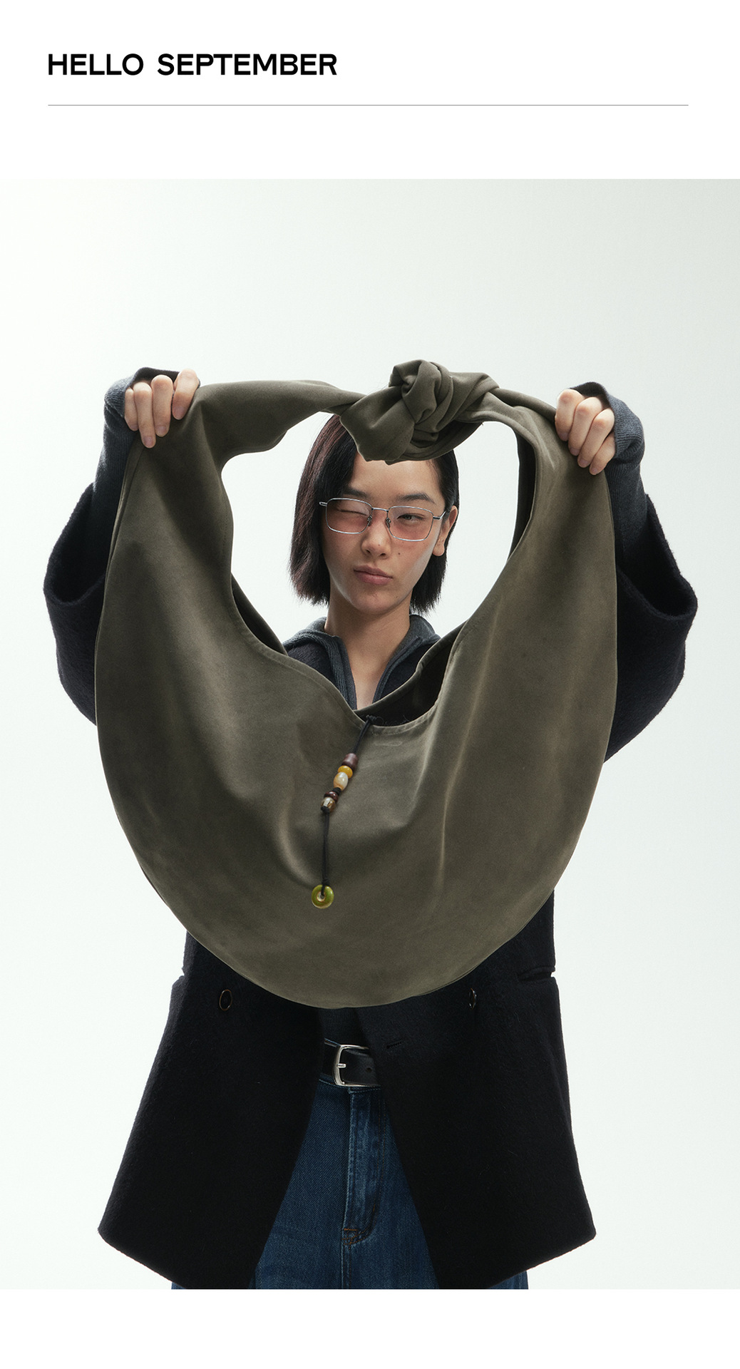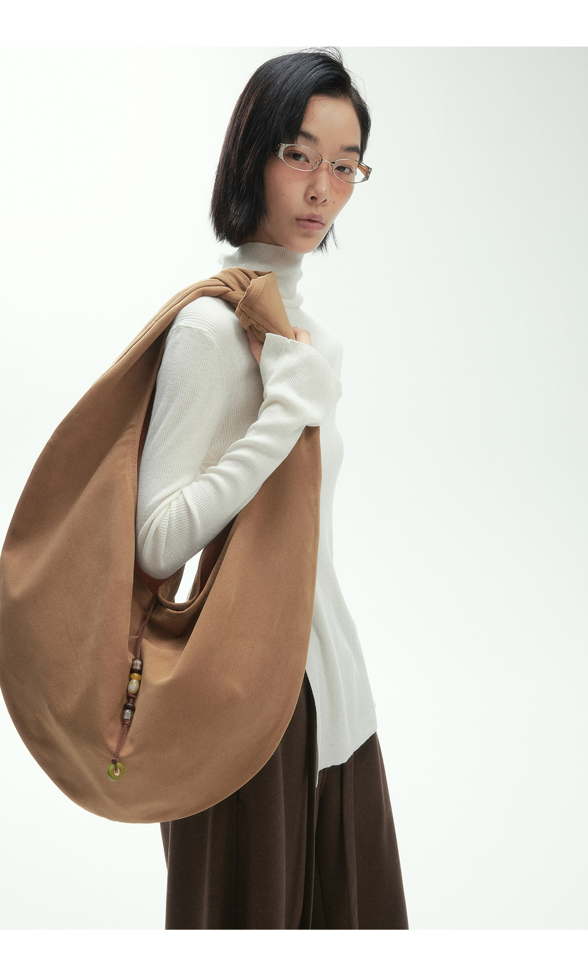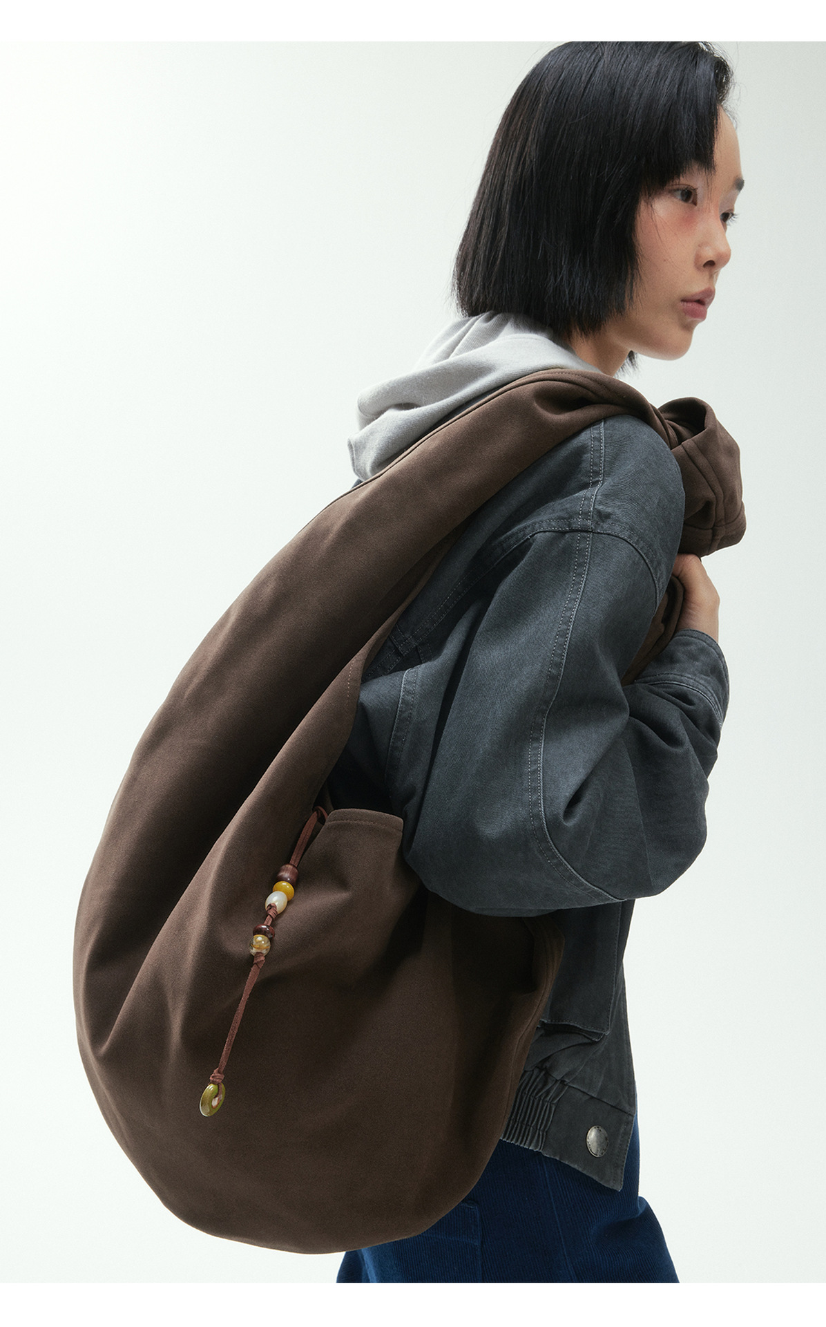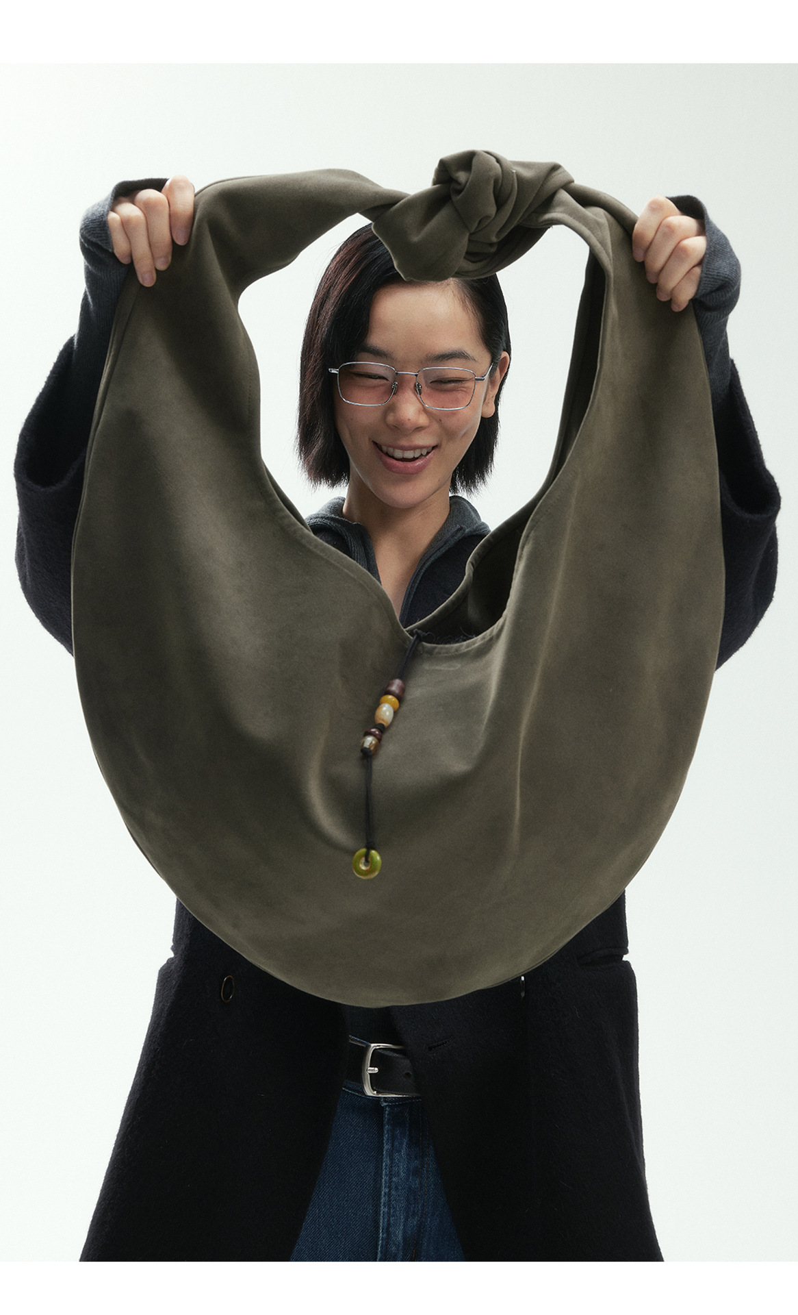 [시간] 뉴 스웨이드 매듭 디자인 레트로 옥비드 다크 브라운 크로스바디 대용량 토트 백 V7804