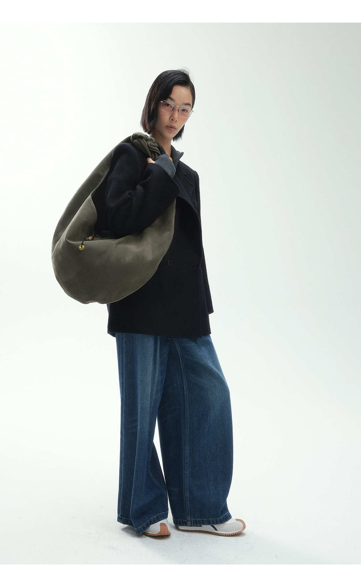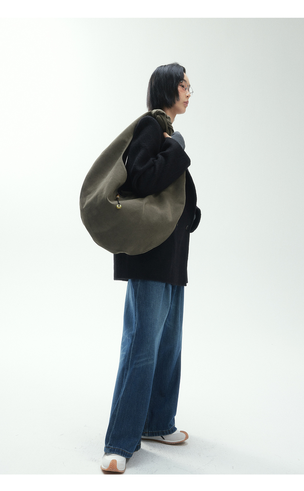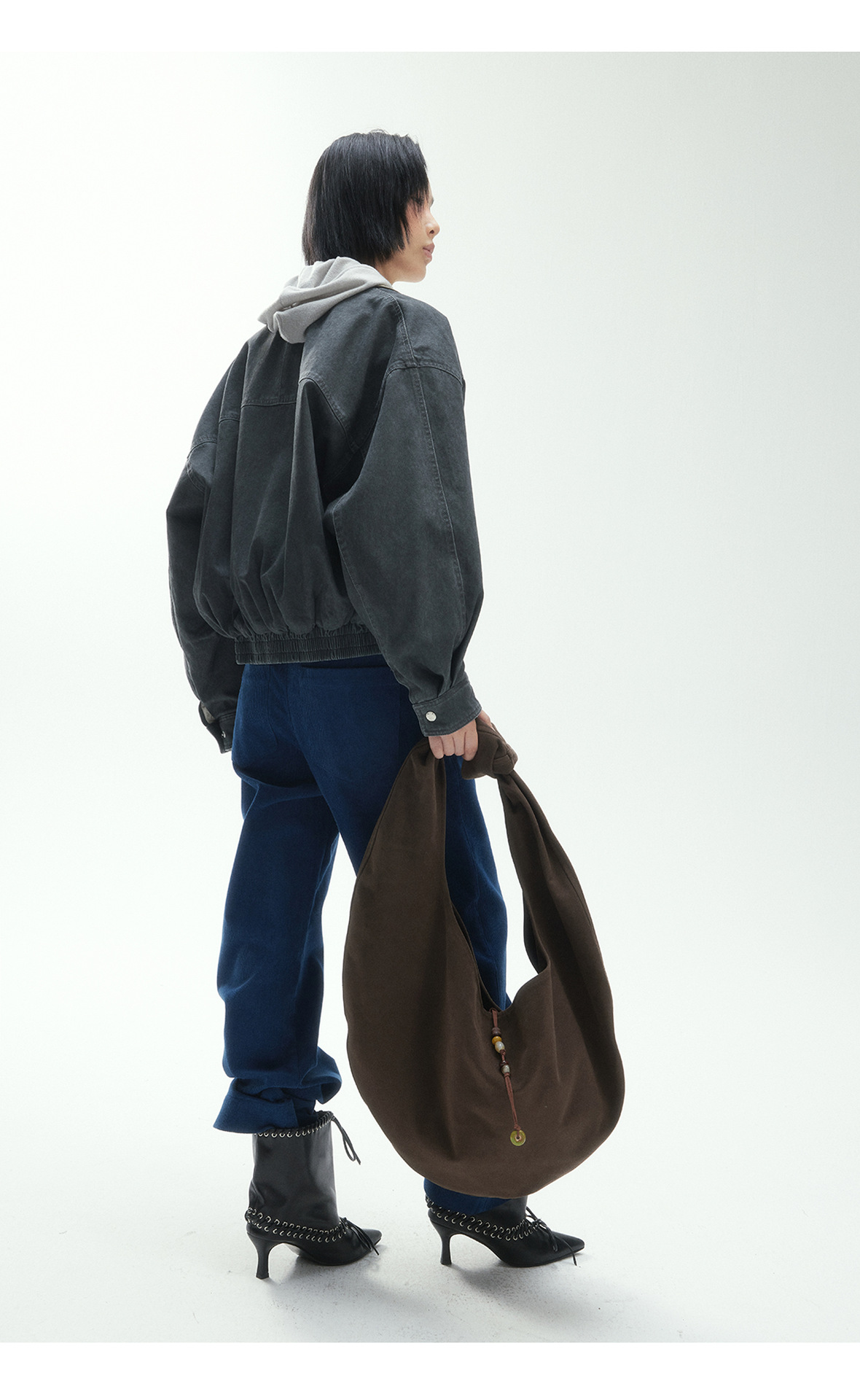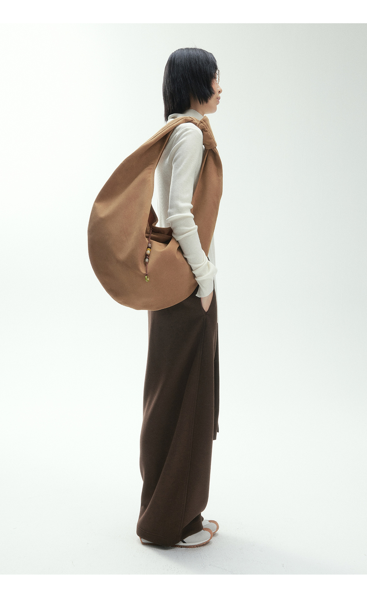 [시간] 뉴 스웨이드 매듭 디자인 레트로 옥비드 다크 브라운 크로스바디 대용량 토트 백 V7804