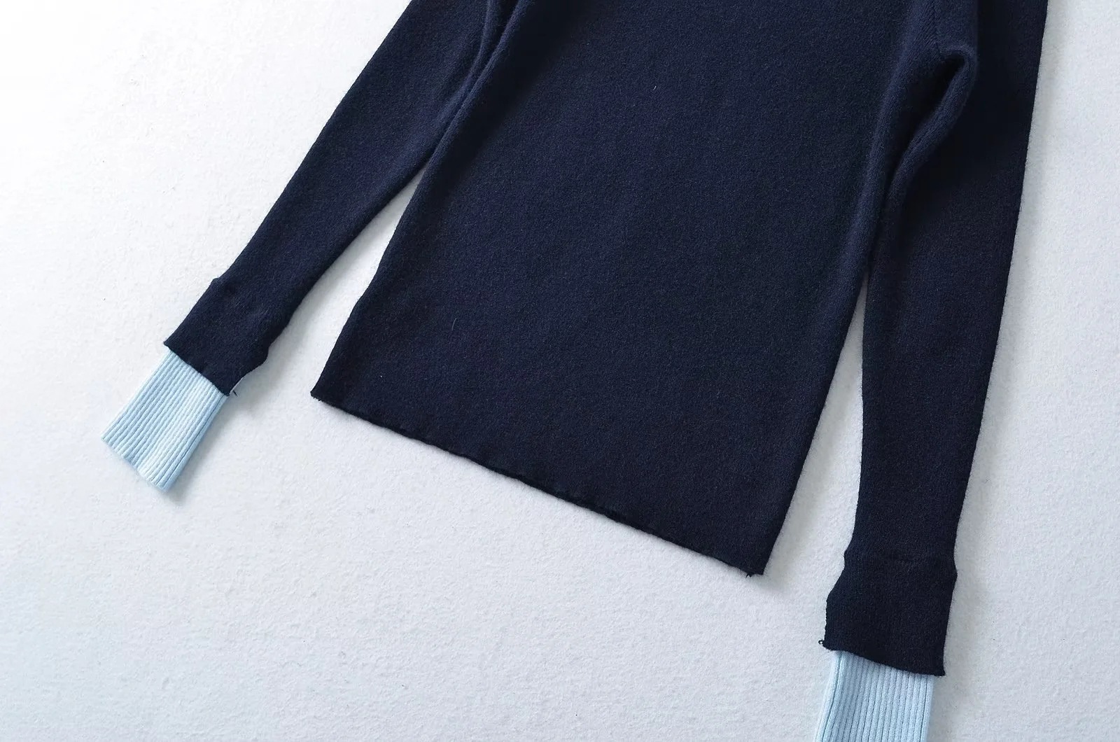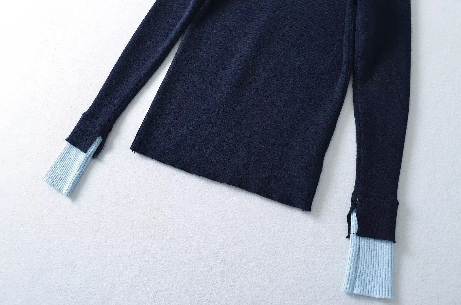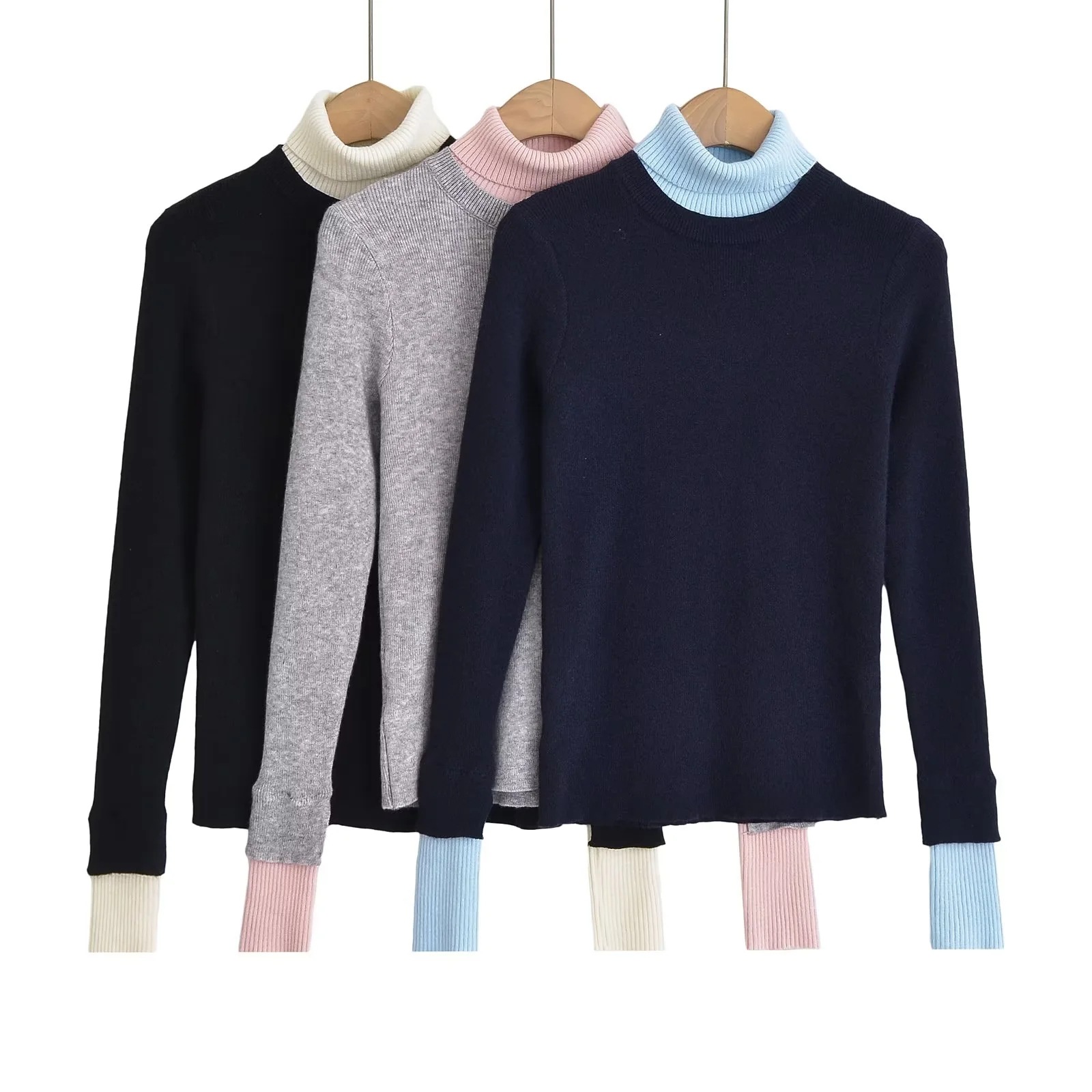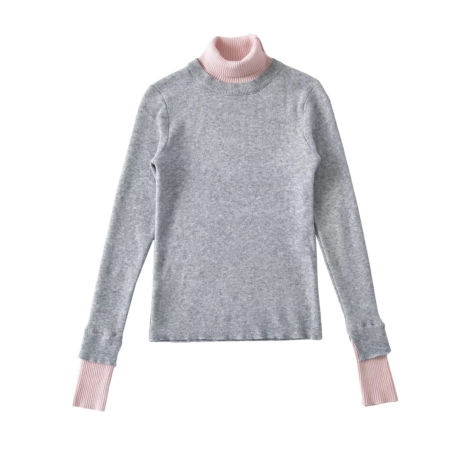 콘트라스트 컬러 가짜 투피스 터틀넥 디자인 베이직 니트 탑 여성 아메리칸 스타일 핫 걸 가을과 겨울 슬림 핏 베이스 스웨터
