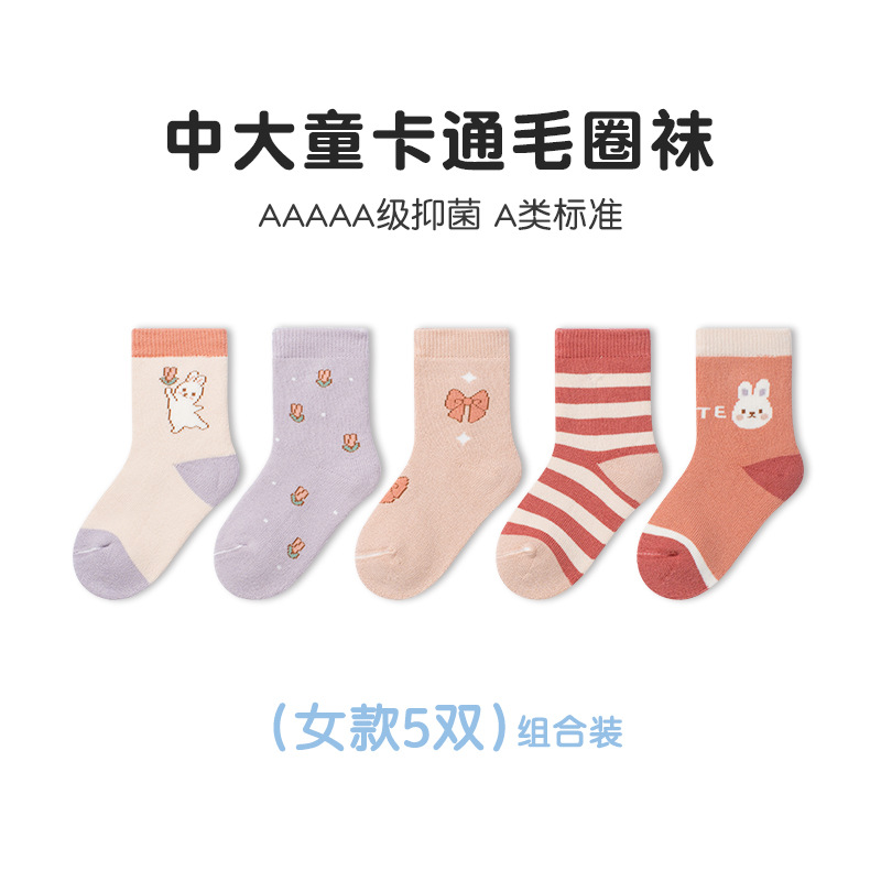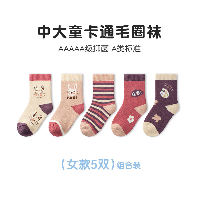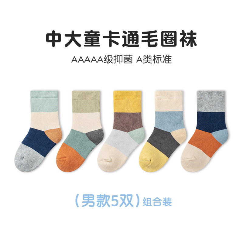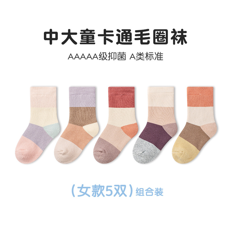Tangram 테리 양말 겨울 두꺼운 만화 튜브 양말 큰 어린이 기모 어린이 양말 차가운 소년 소녀 양말