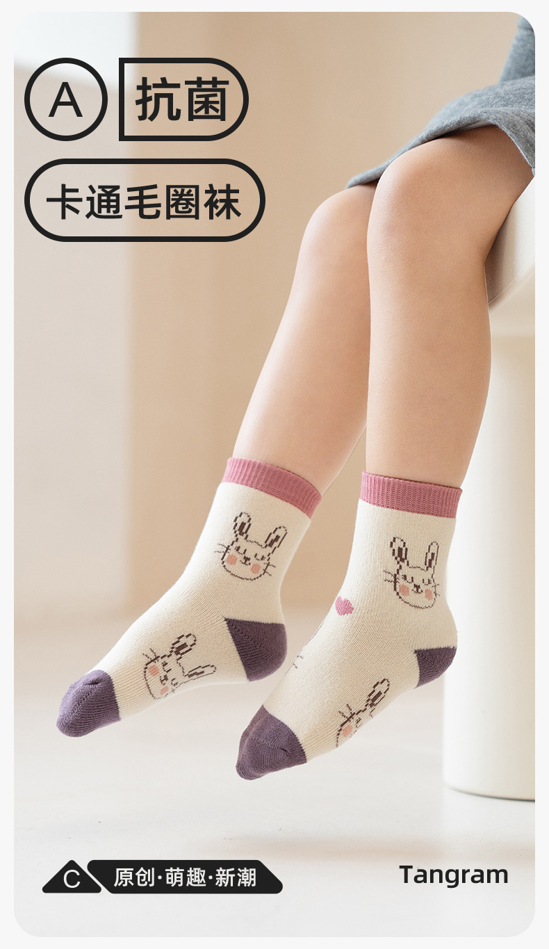 Tangram 테리 양말 겨울 두꺼운 만화 튜브 양말 큰 어린이 기모 어린이 양말 차가운 소년 소녀 양말스토어 가기
