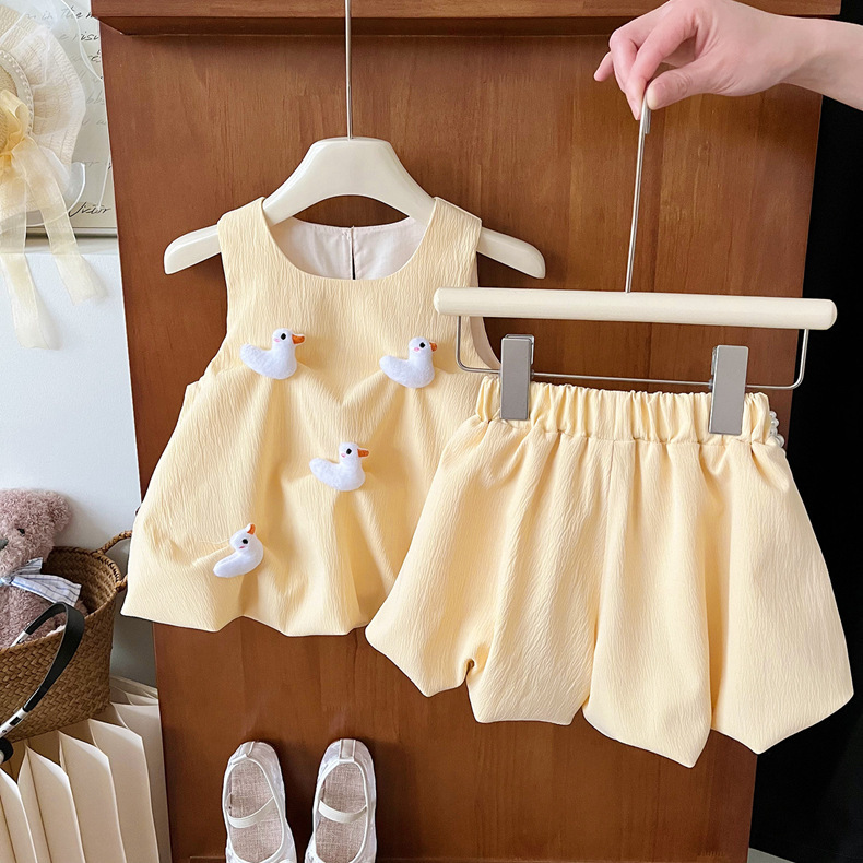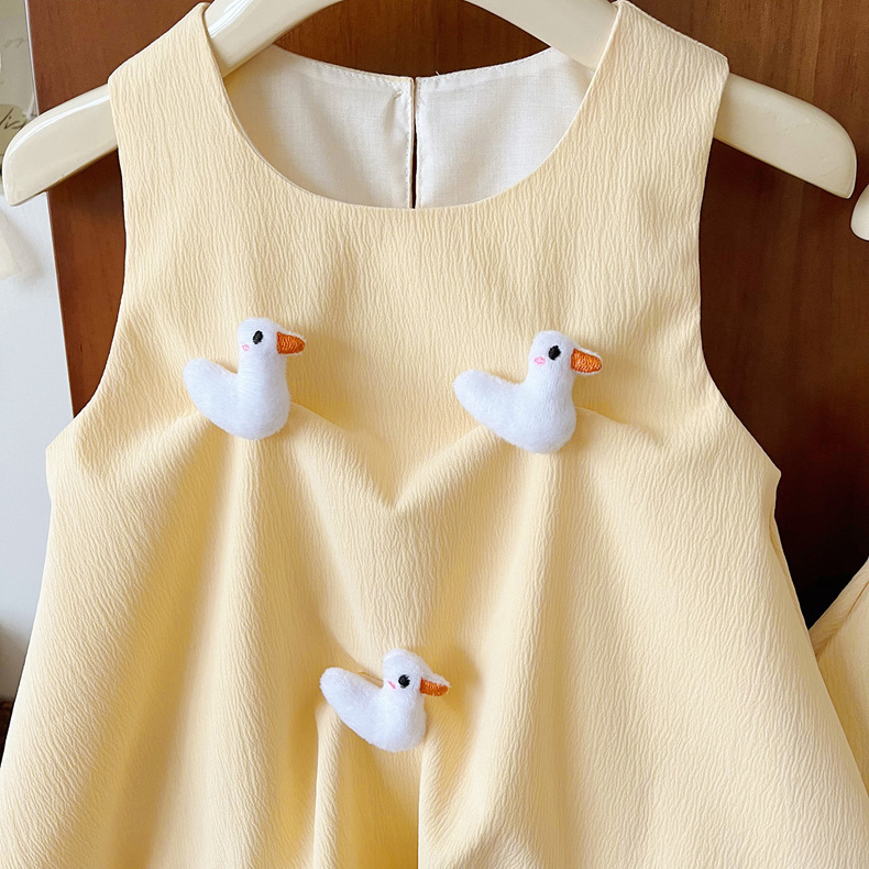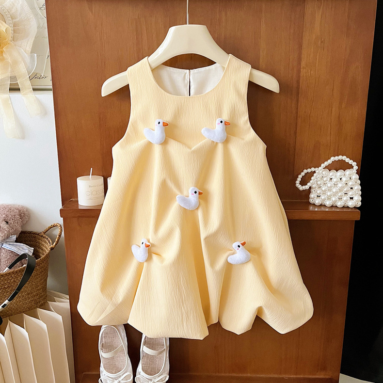 2025 아동복 여아 여름 새 스타일 다용도 민소매 양복 귀여운 오리 스타일 꽃무늬 드레스 유행