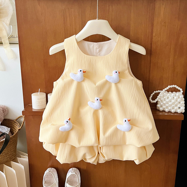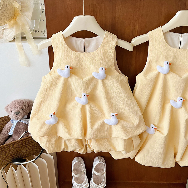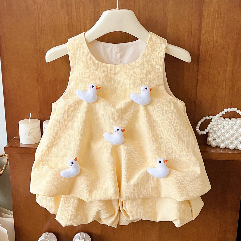 2025 아동복 여아 여름 새 스타일 다용도 민소매 양복 귀여운 오리 스타일 꽃무늬 드레스 유행스토어 가기