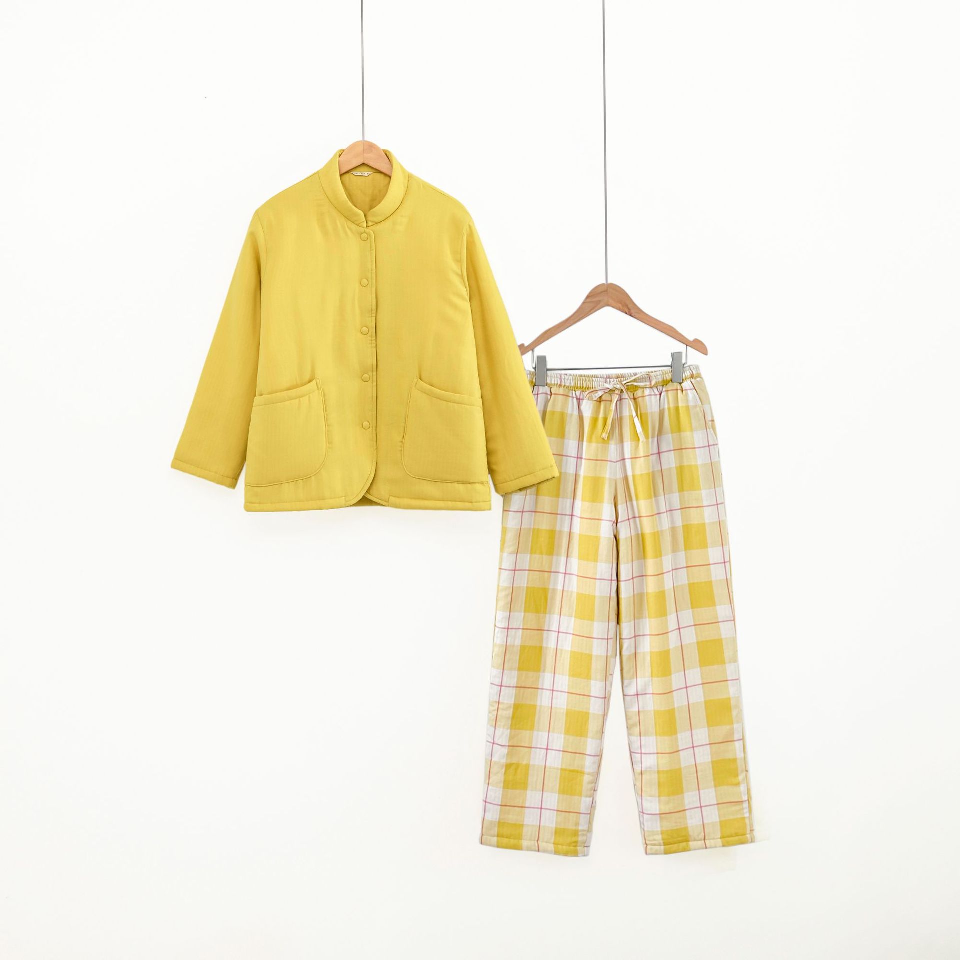 24 가을과 겨울 업그레이드 3 층 면화 추가 국가 조수 스탠드 칼라 두꺼운 따뜻한 바람에 강한 연인 홈 의류 세트