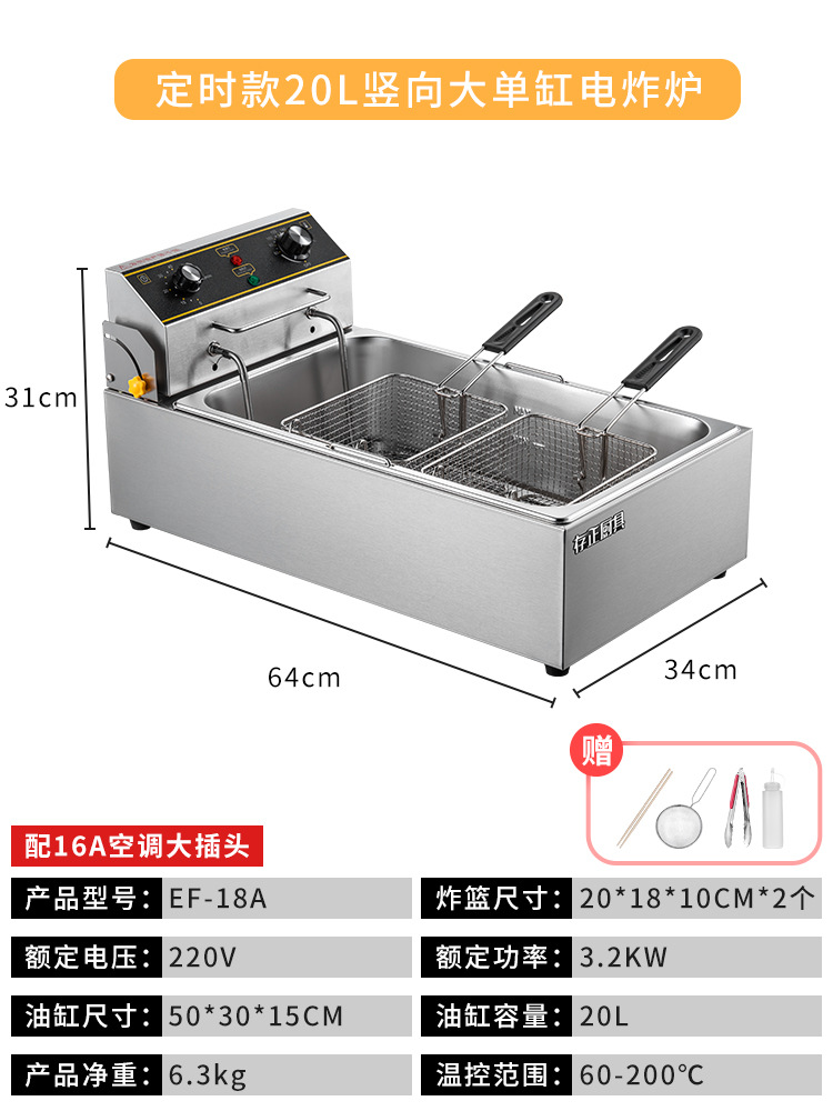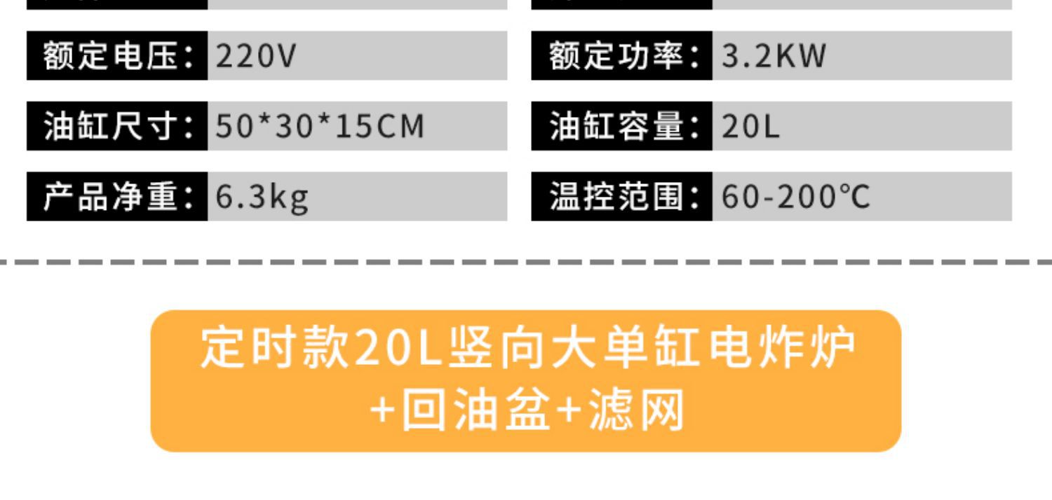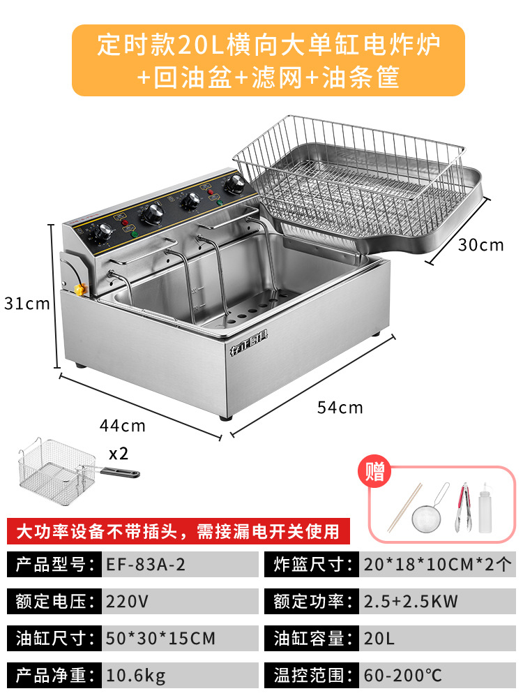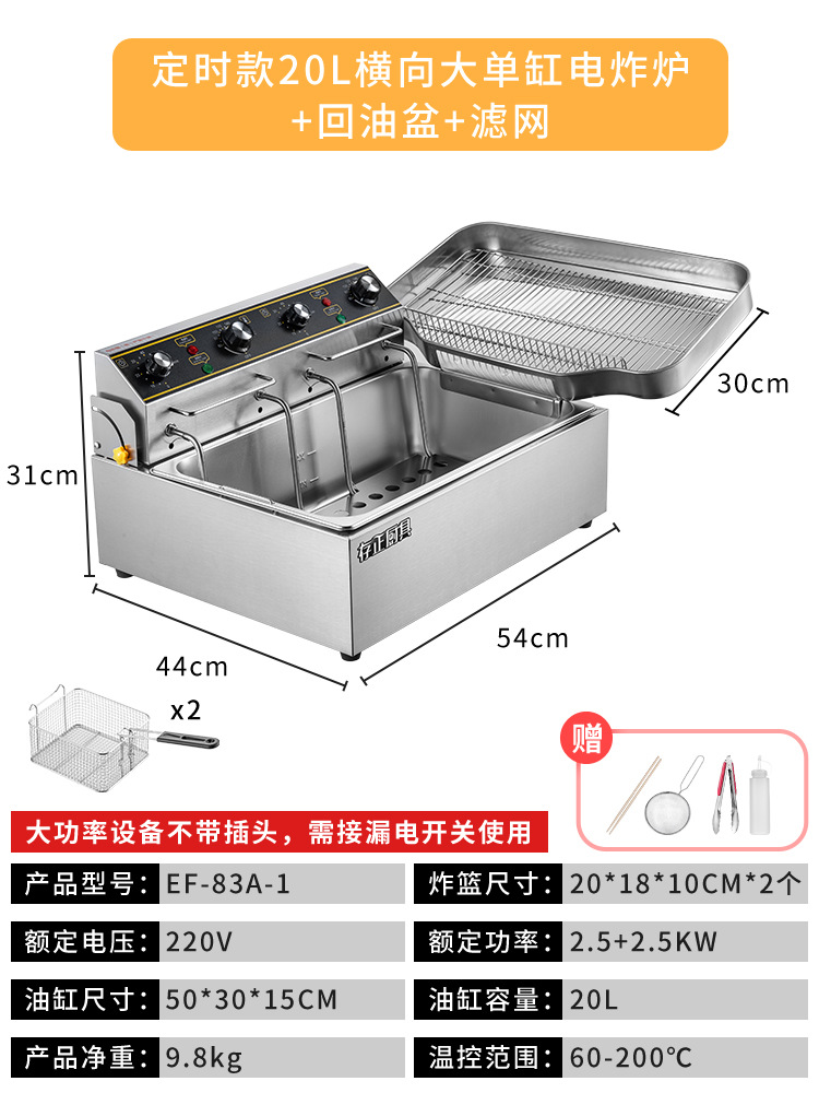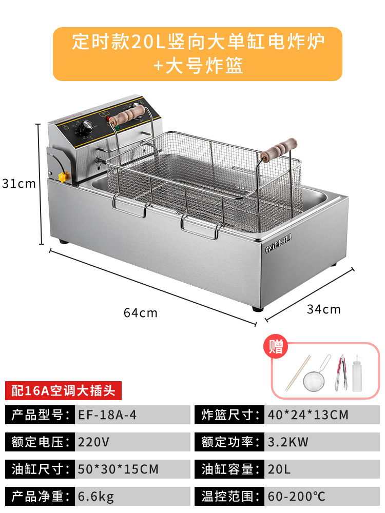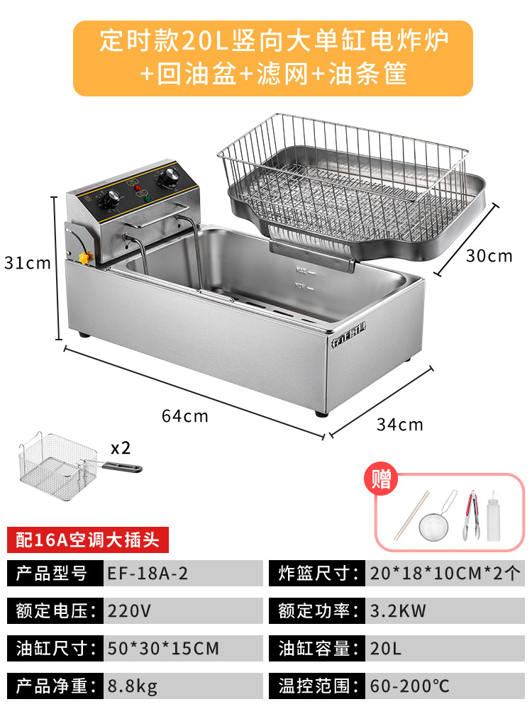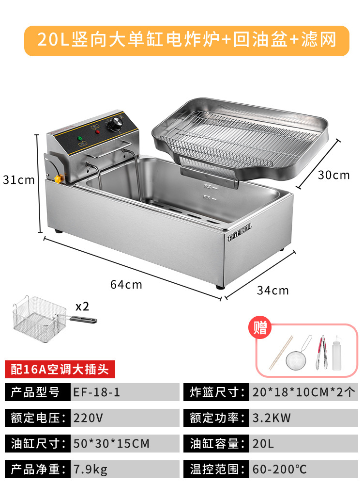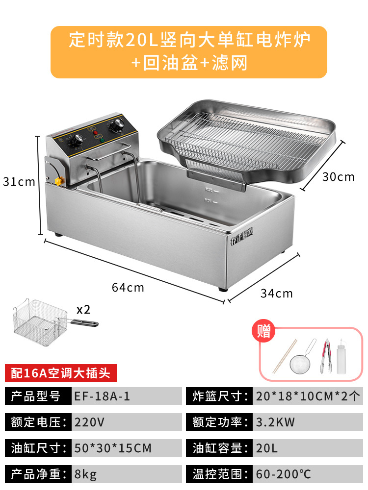 • 타이밍 - 20L 길이의 단일 실린더 - 후면 플립 머신 헤드 - 소형 튀김망 + 오일 리턴 트레이 3종 세트, 손잡이