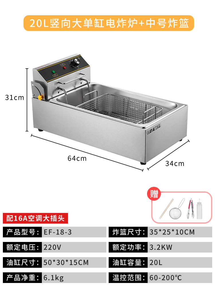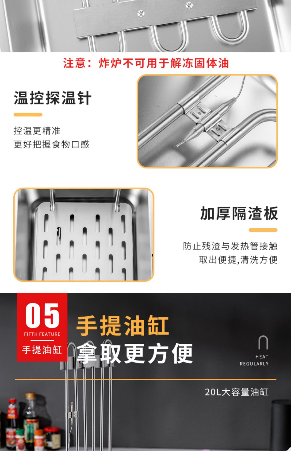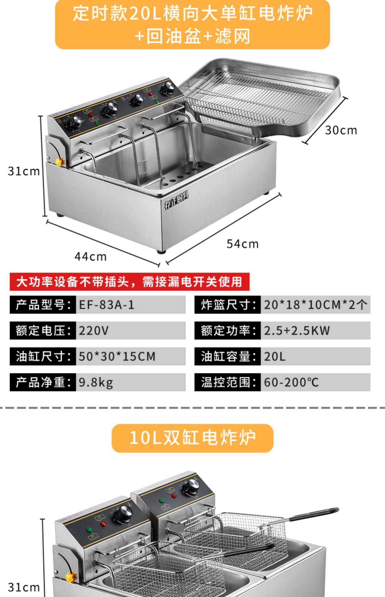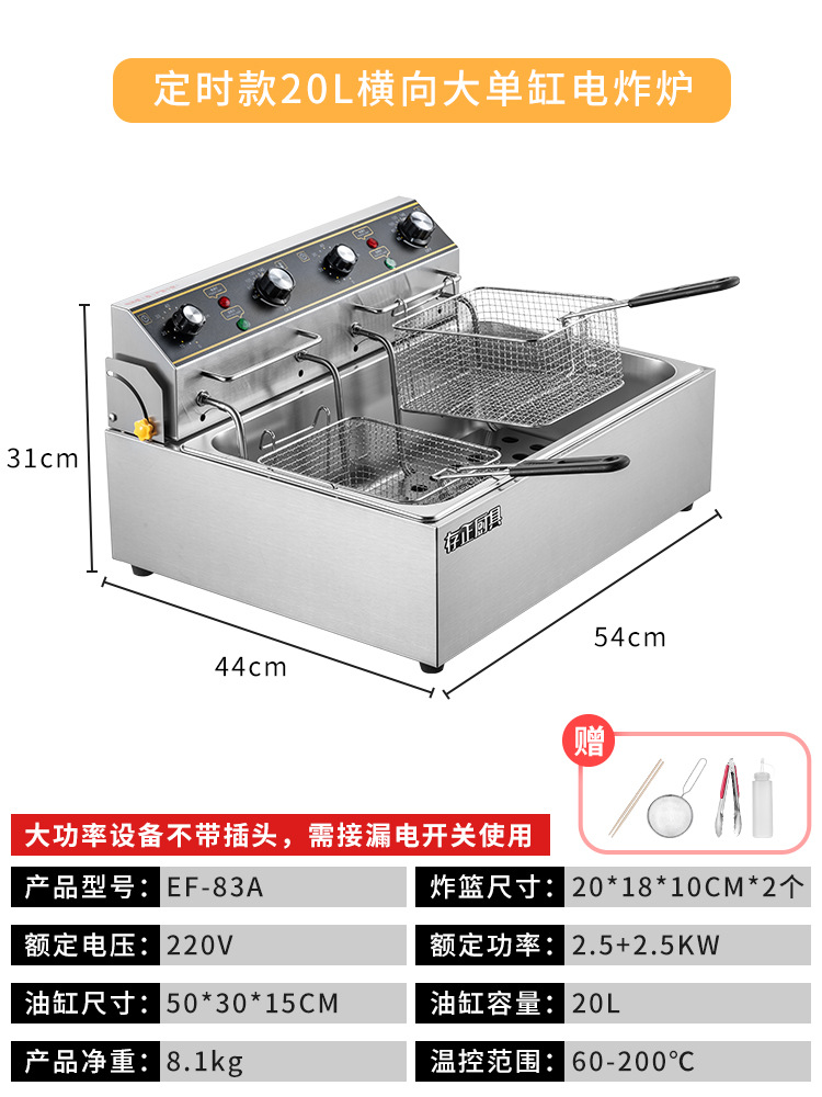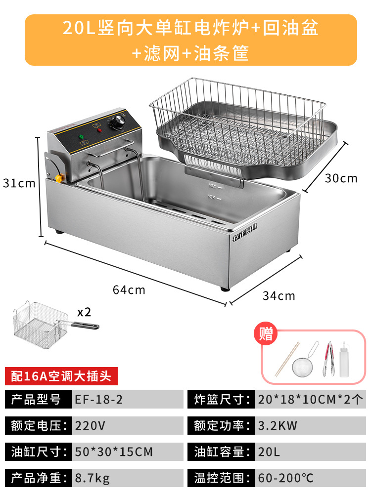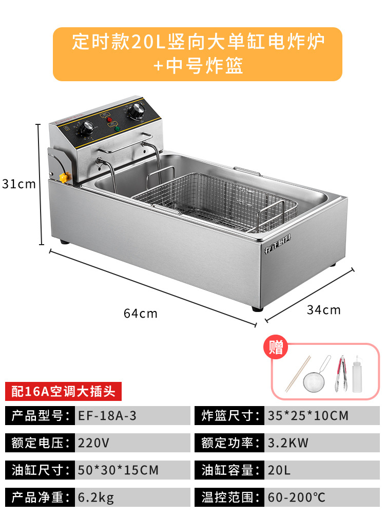 • 타이밍 - 20L 길이의 단일 실린더 - 후면 플립 머신 헤드 - 소형 튀김망 + 오일 리턴 트레이 3종 세트, 손잡이