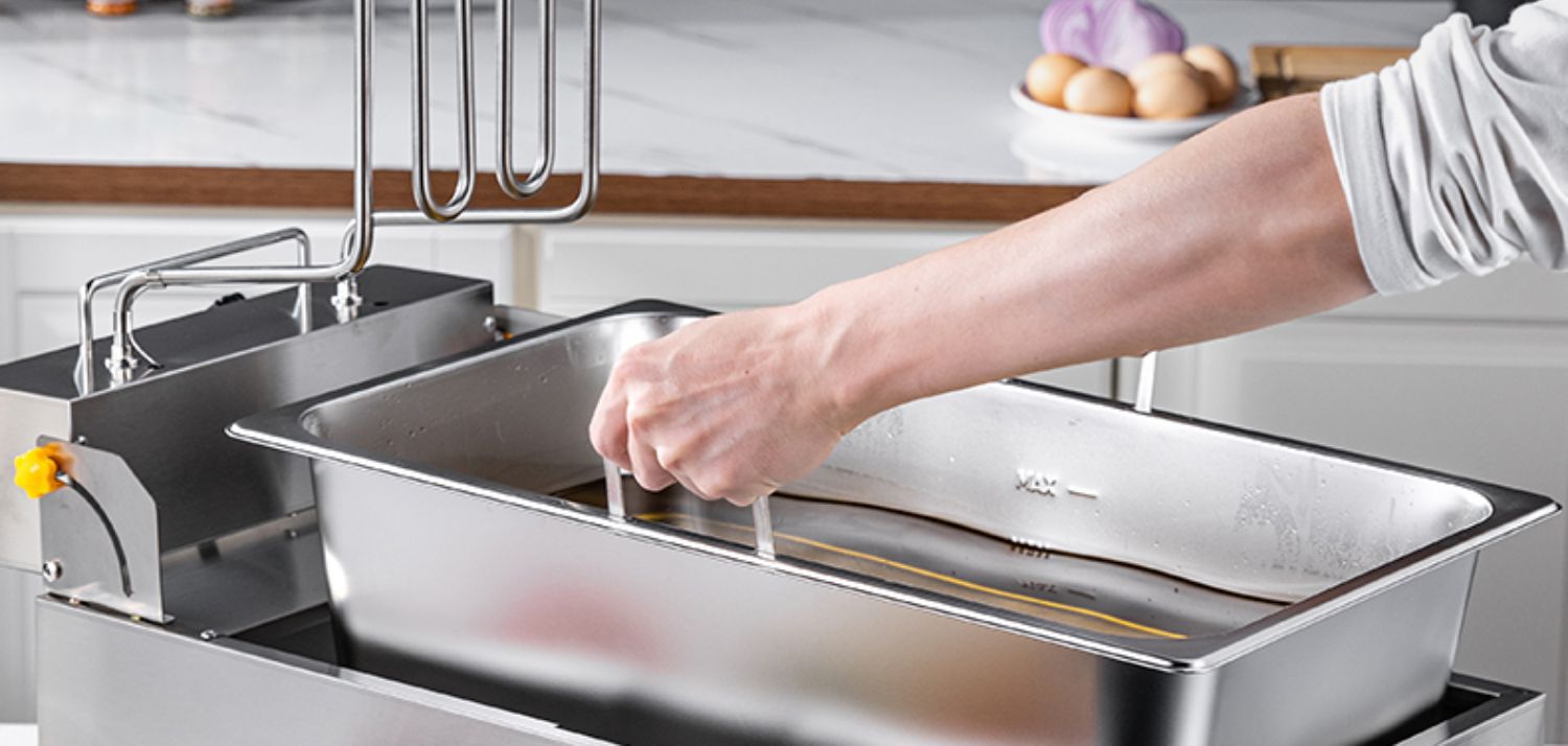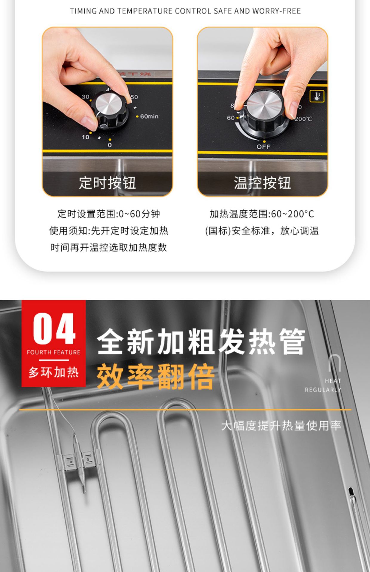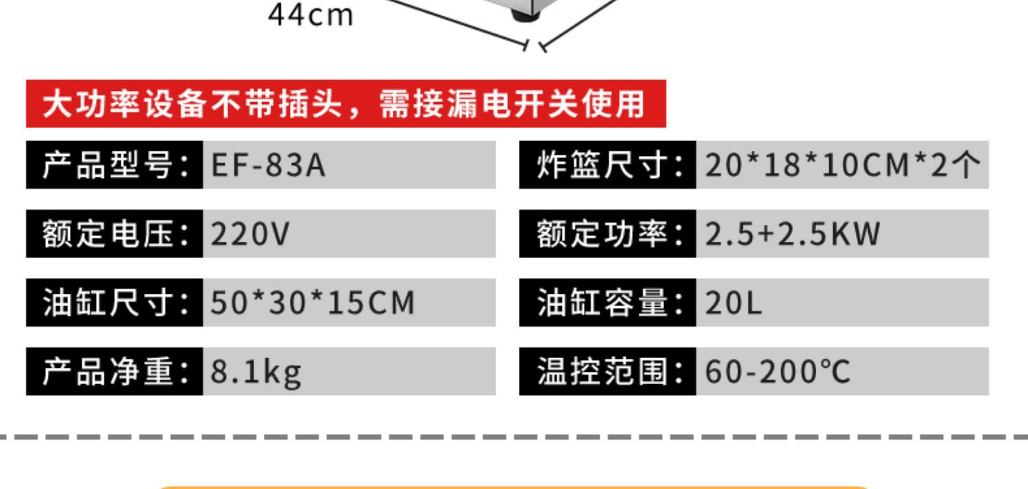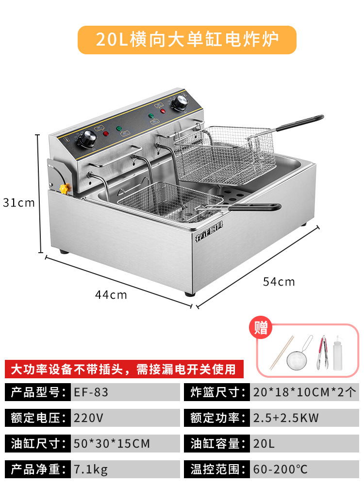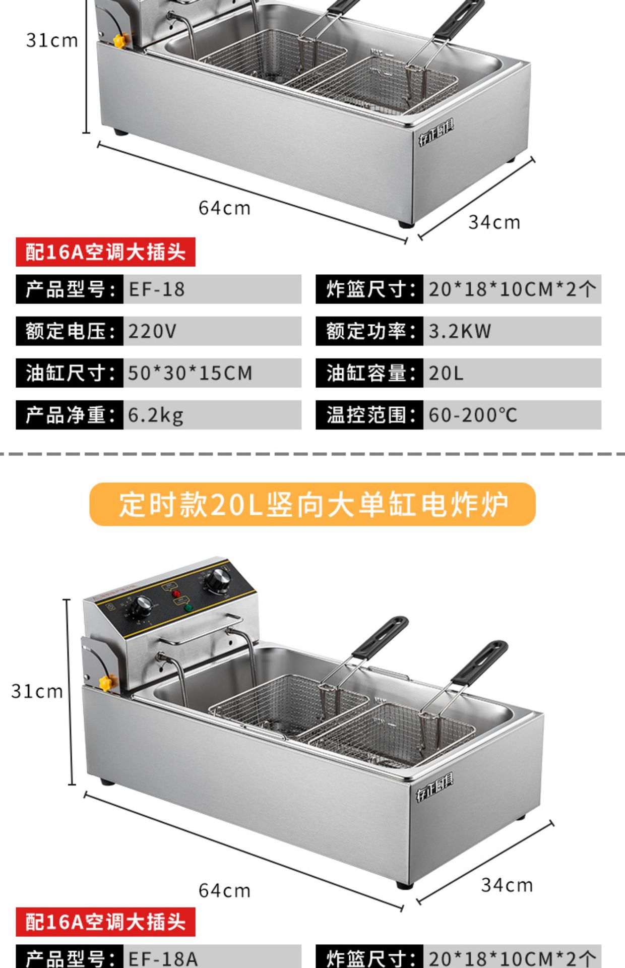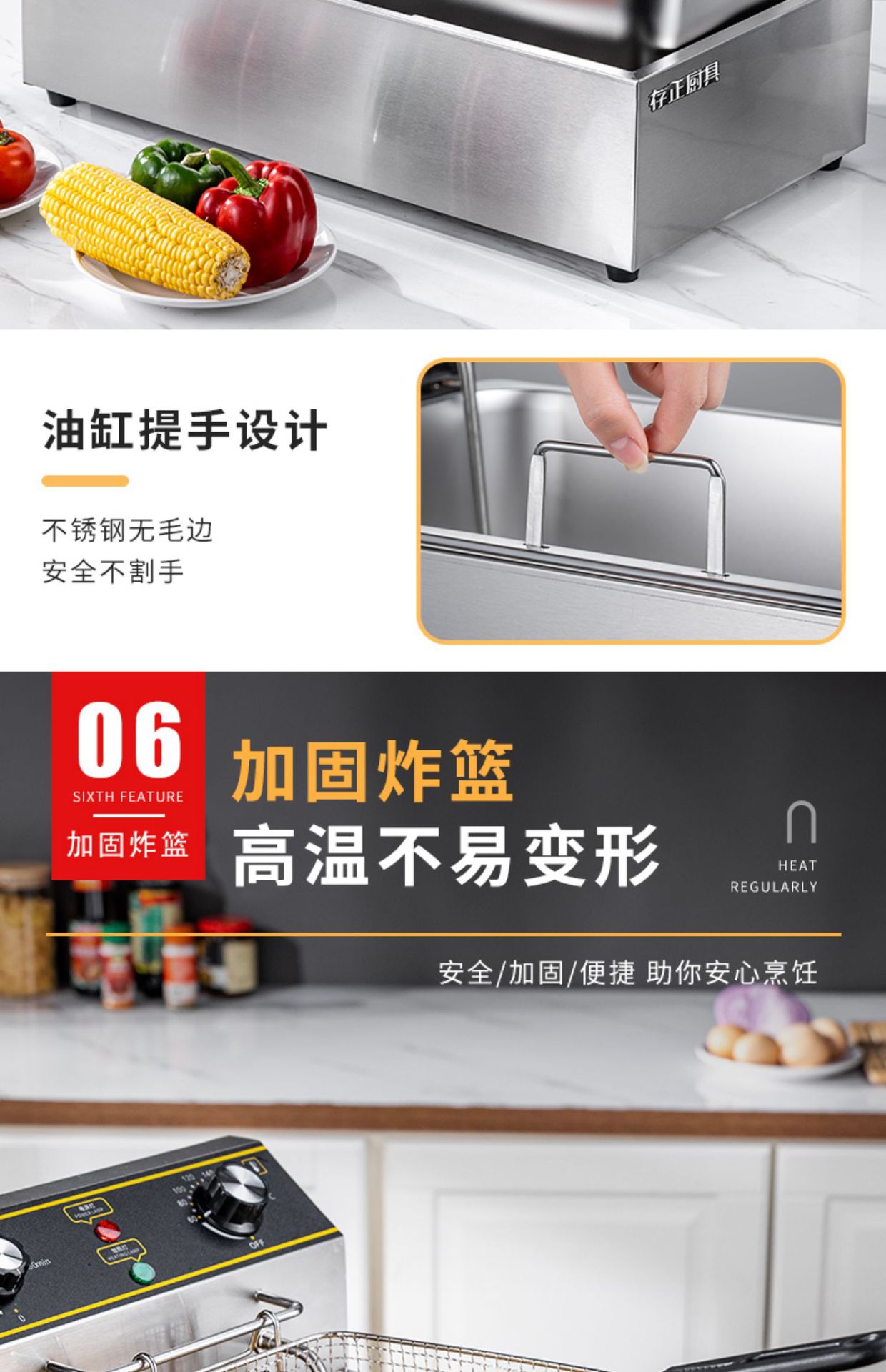 • 타이밍 - 20L 길이의 단일 실린더 - 후면 플립 머신 헤드 - 소형 튀김망 + 오일 리턴 트레이 3종 세트, 손잡이