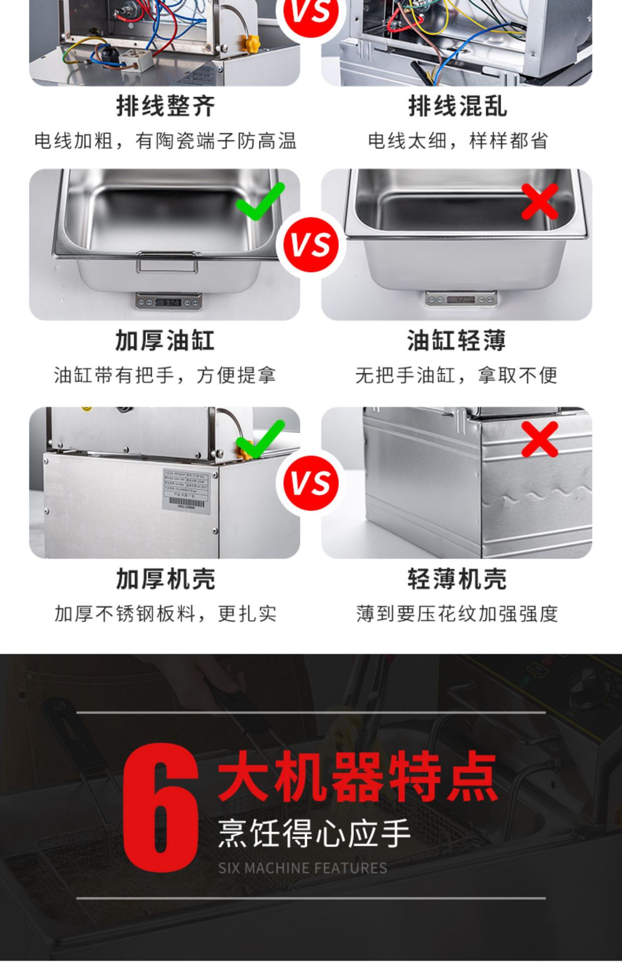 • 타이밍 - 20L 길이의 단일 실린더 - 백 플립 머신 헤드 - 소형 튀김망 + 오일 리턴 박스 조합, 손잡이 조각