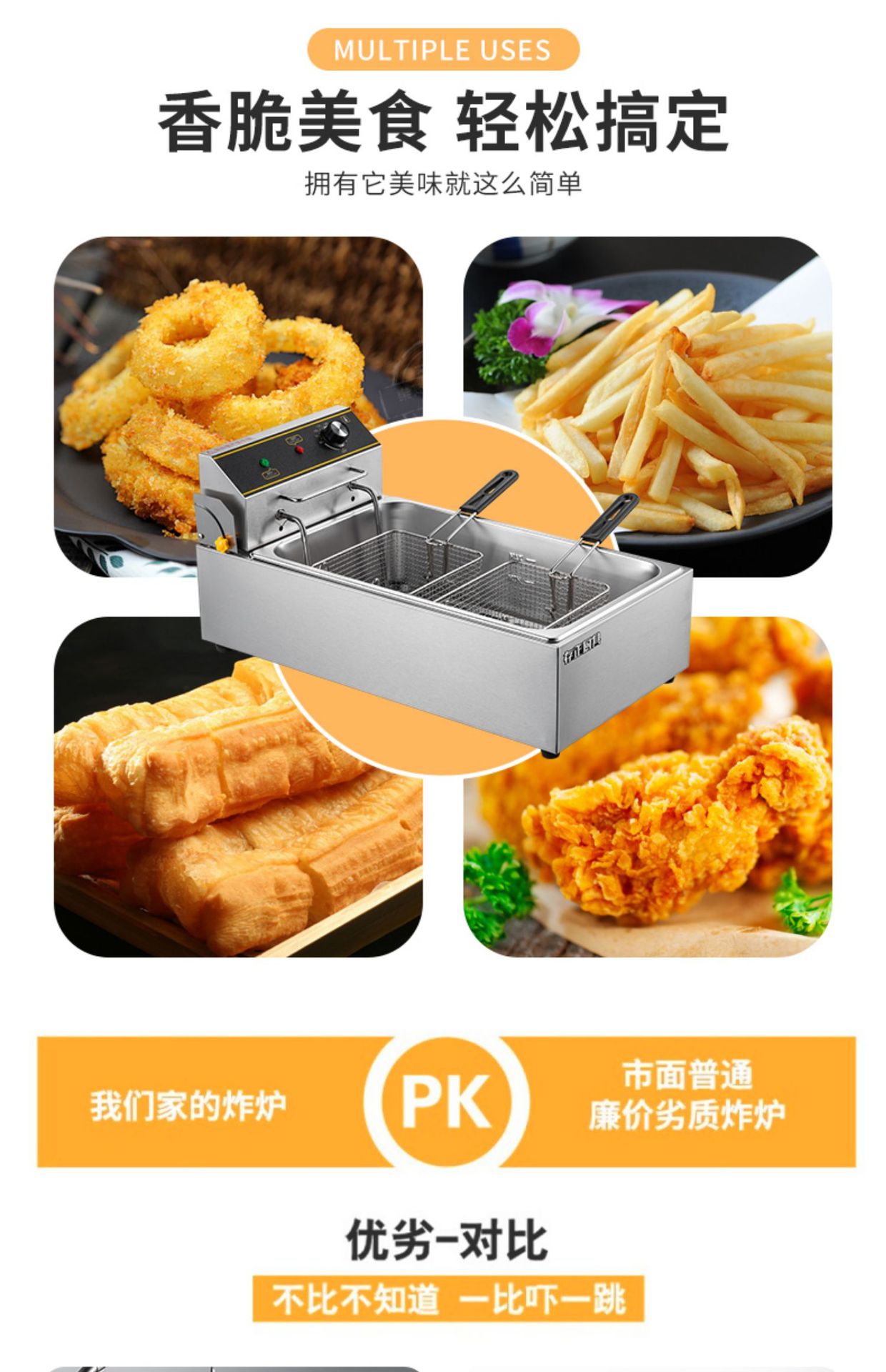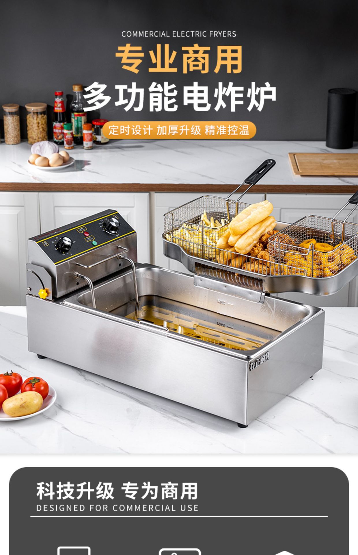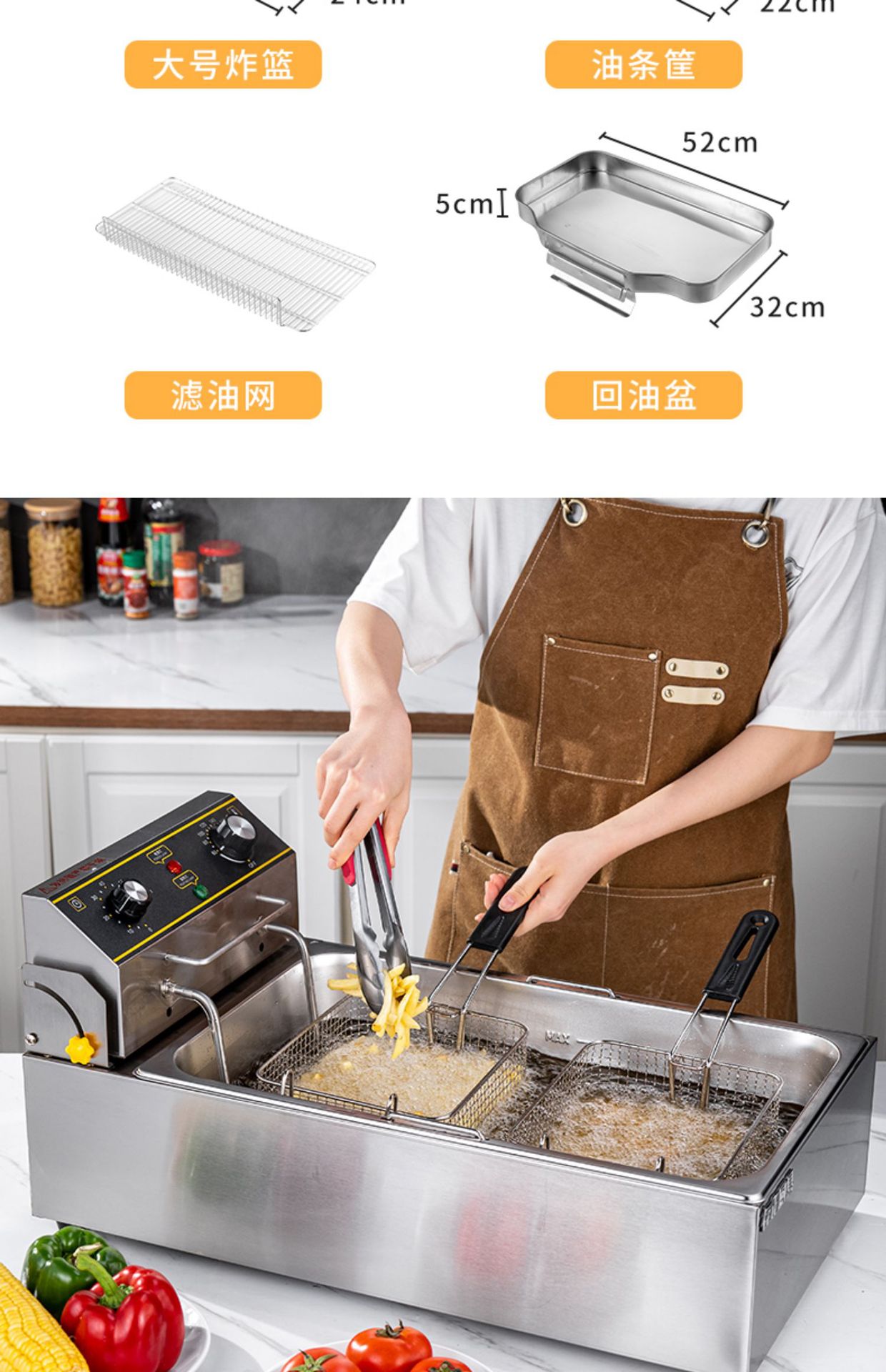 일정한 온도 프라이어 상업용 더블 실린더 전기 프라이어 대용량 단일 실린더 오일 바 기계 스톨 튀긴 스트링 오일 팬 프렌치 프라이 콩 거품스토어 가기