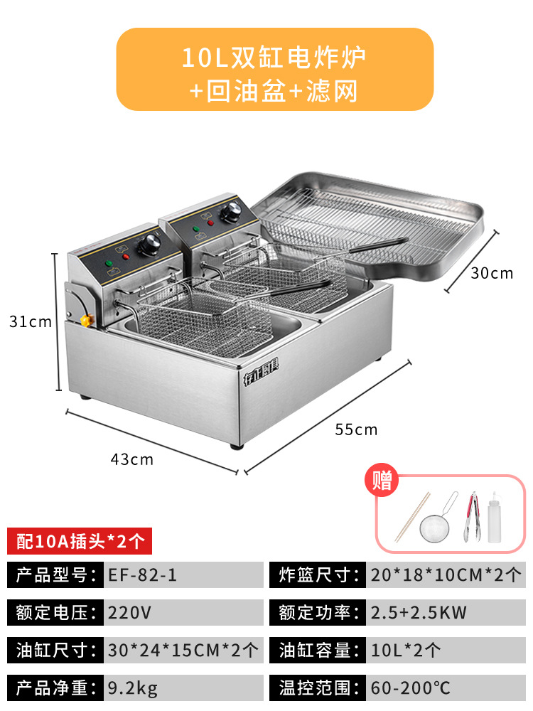 • 10L 더블 실린더 - 백 플립 머신 헤드 - 소형 튀김망 + 오일 리턴 플레이트 조합 스케일 실린더 - 무료 선물