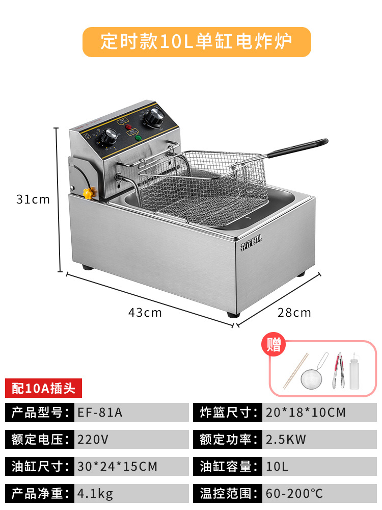 • 타이밍-10L 단일 실린더-백 플립 머신 헤드-소형 튀김 메쉬 핸들 스케일 실린더-무료 선물