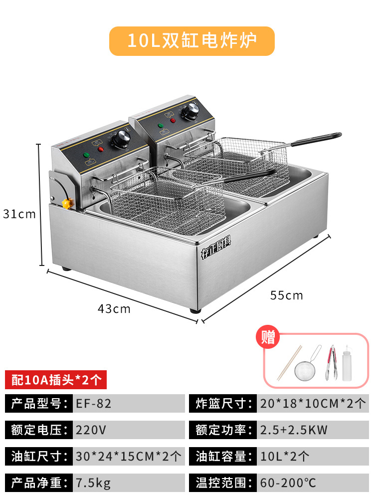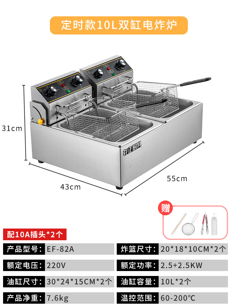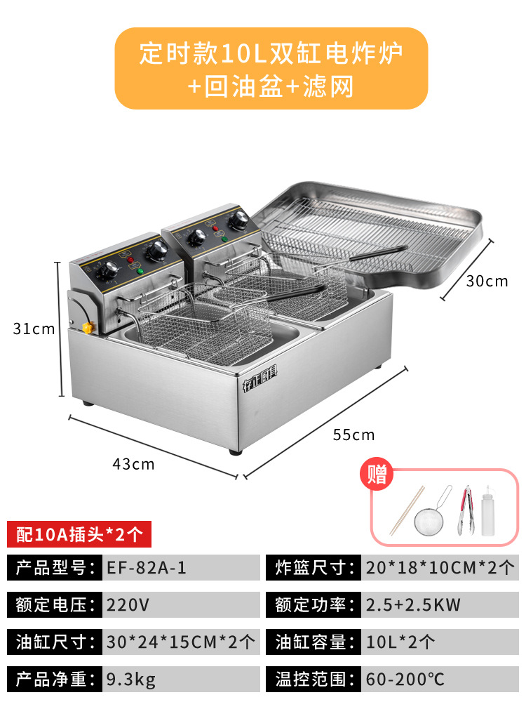• 타이밍-10L 이중 실린더-백 플립 머신 헤드-소형 튀김 메쉬 핸들 스케일 실린더-무료 선물