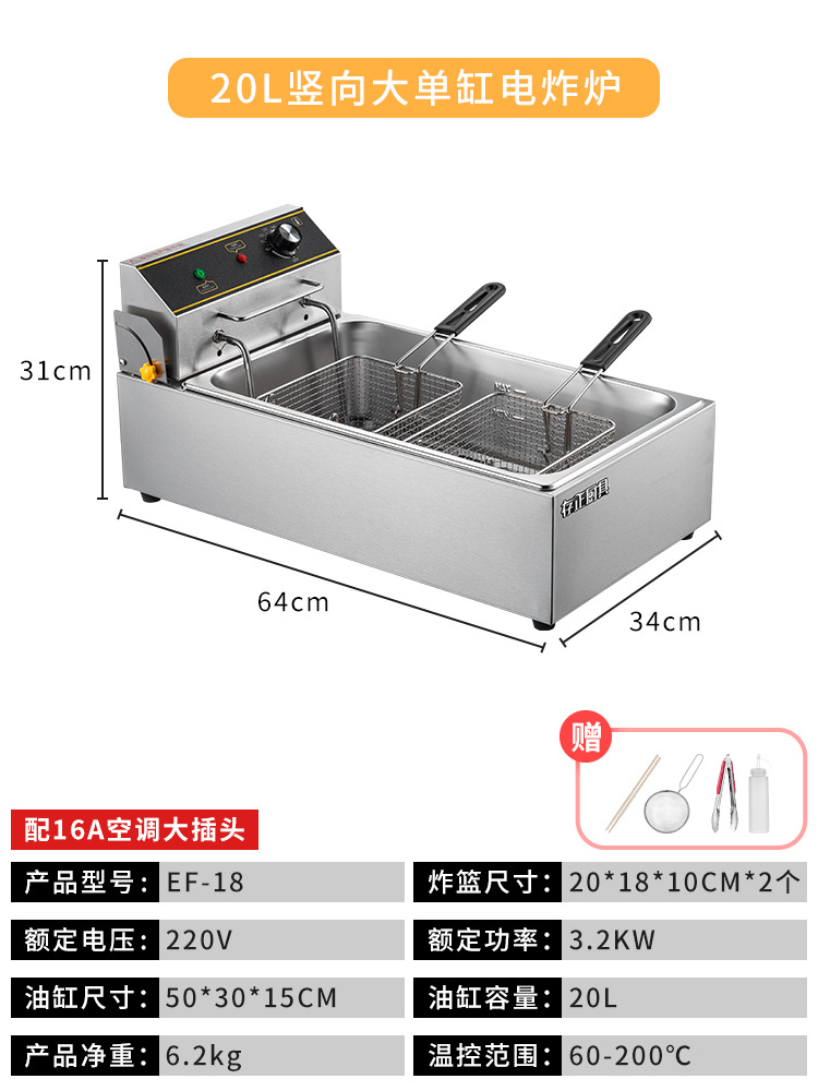 • 타이밍 - 20L 대형 단일 실린더 - 백 플립 머신 헤드 - 소형 튀김 메쉬 핸들 스케일 실린더 - 무료 선물