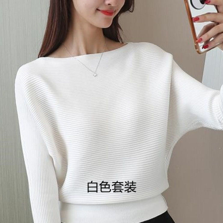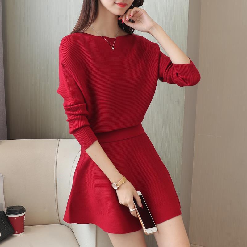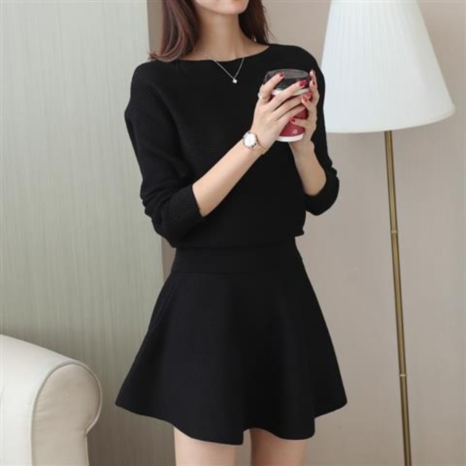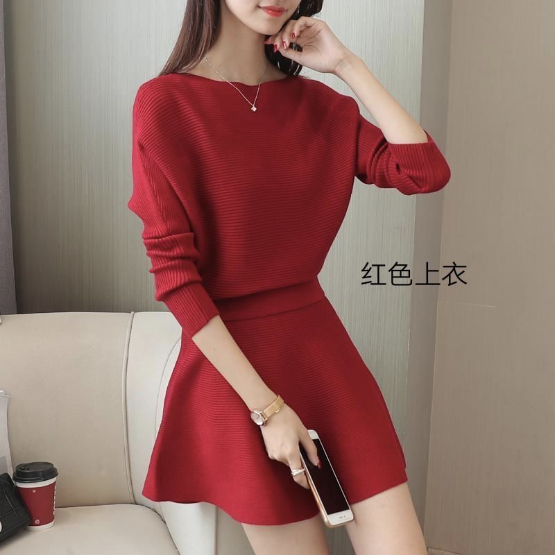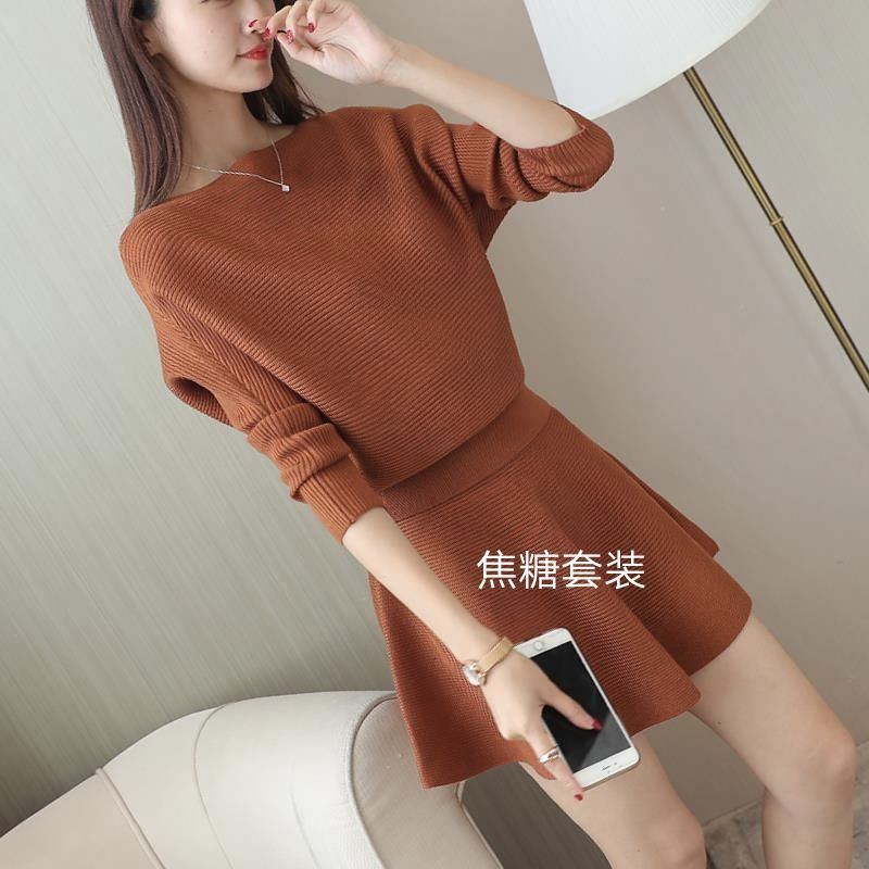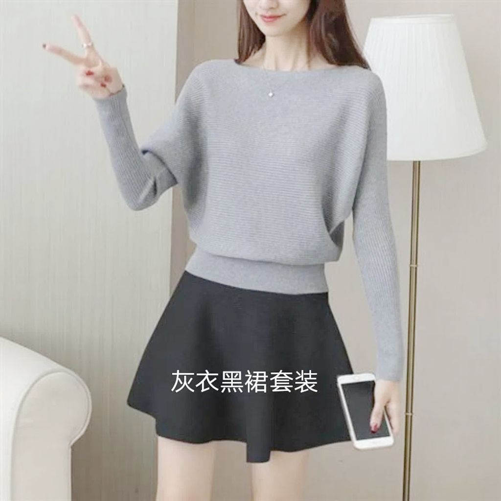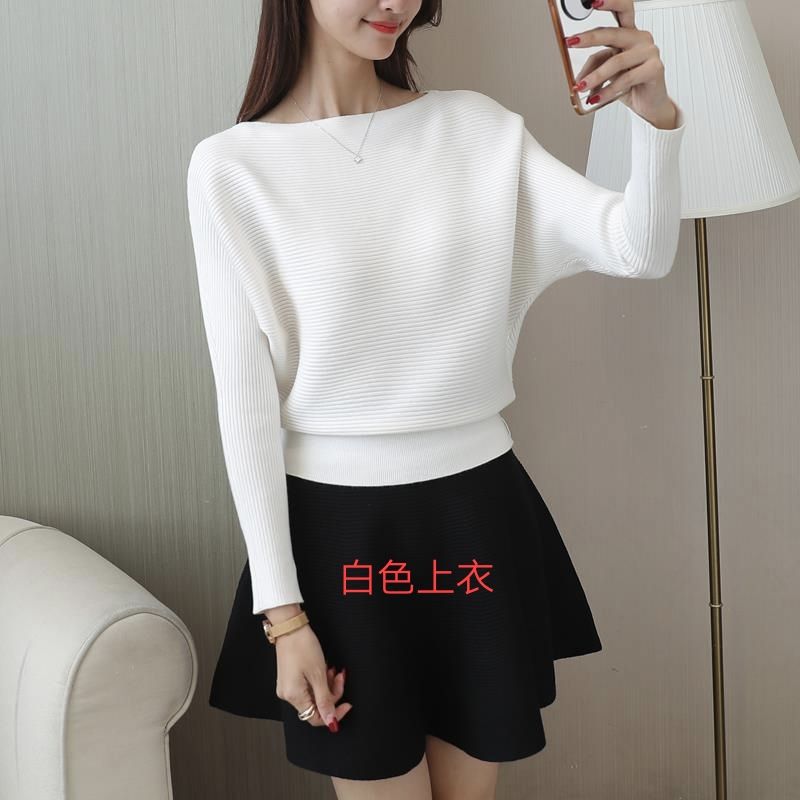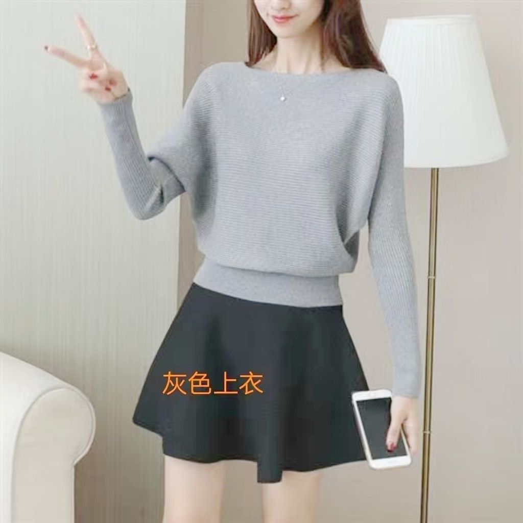 2024 봄과 가을 스커트 오프 숄더 니트 캐주얼 올 매치 스웨터 스커트 A 라인 스커트 하이 허리 패션 세트