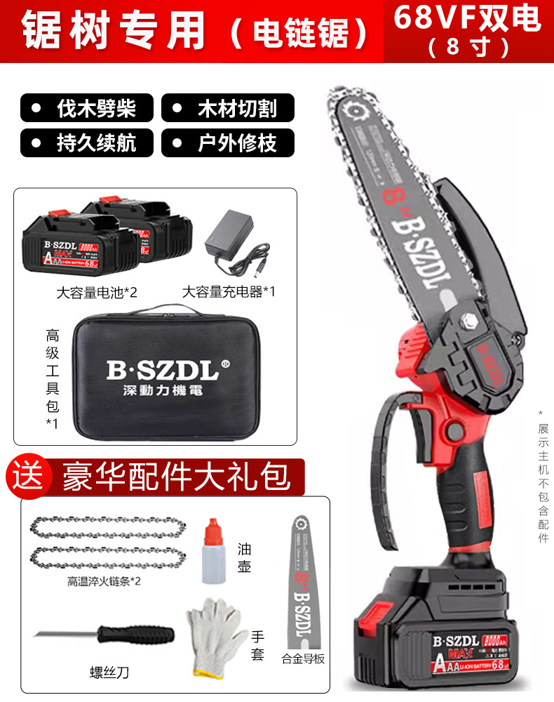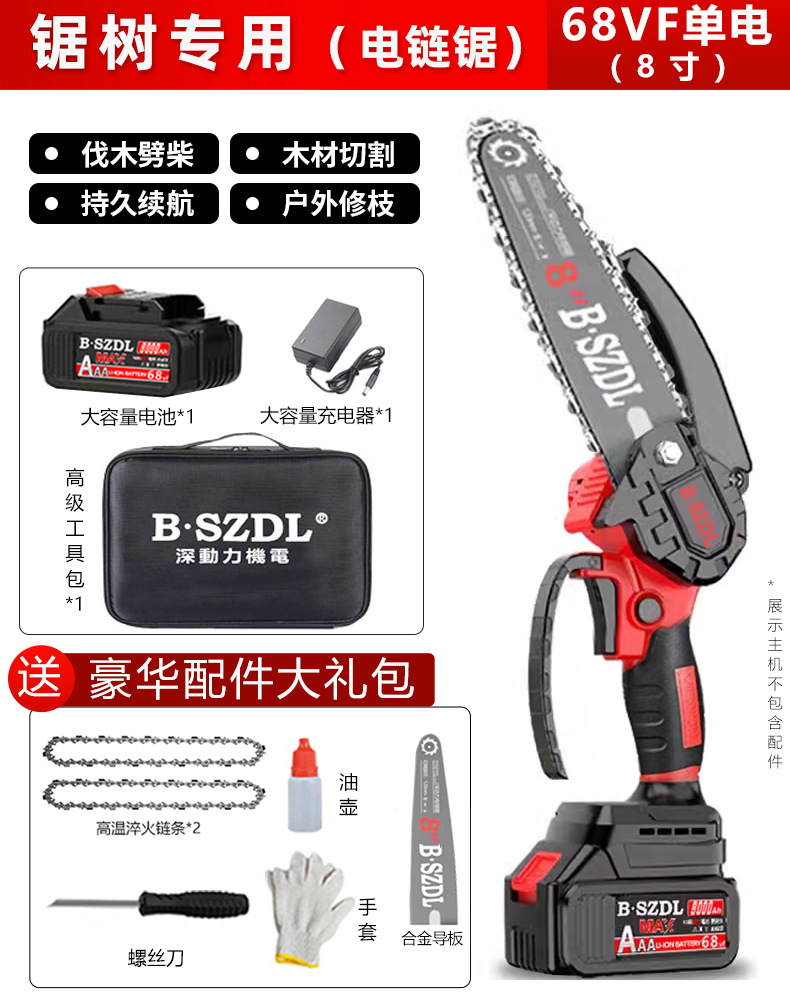 • 8inch 브러시리스 플래그십 모델(나무 톱용 특수) 전기 체인톱 68VF 단일 배터리(선물 패키지)