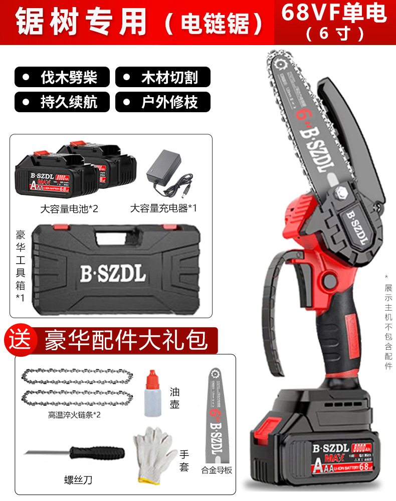 • 6inch 브러시리스 플래그십 모델(나무 톱용 특수) 전기 체인톱 68VF 단일 배터리(선물 패키지)