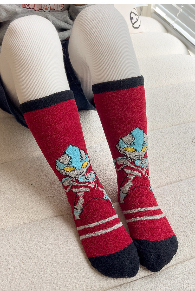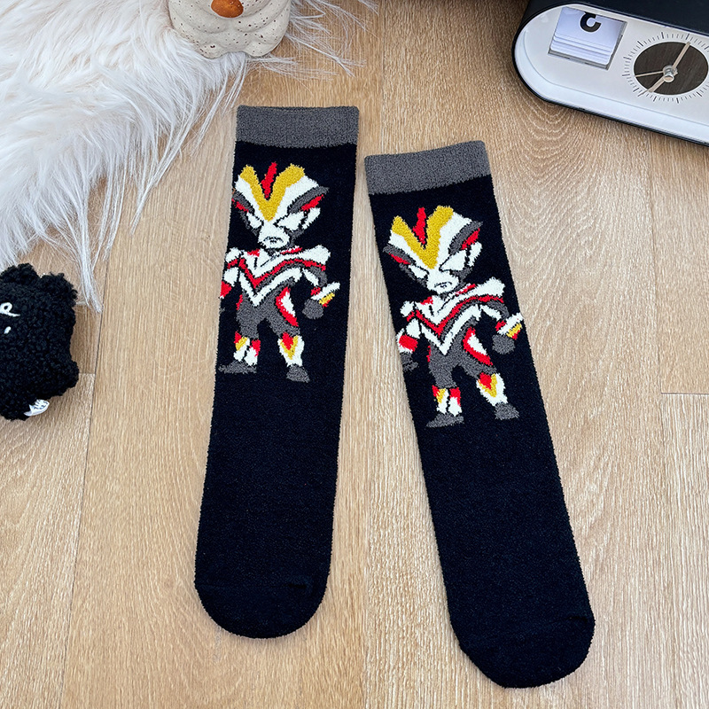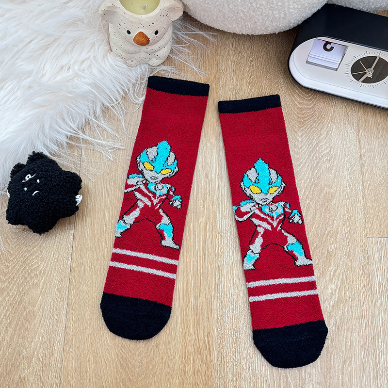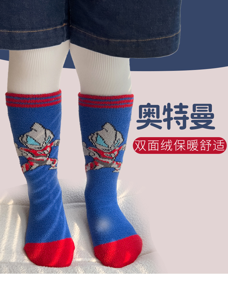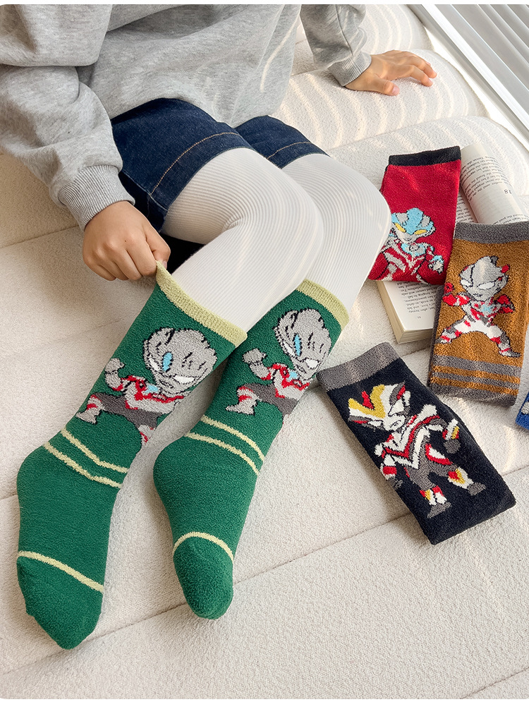 가을과 겨울 어린이 새 기모 두꺼운 Altman 중형 롱 튜브 따뜻한 송아지 양말 남성과 소녀 패션 하이 탑 양말