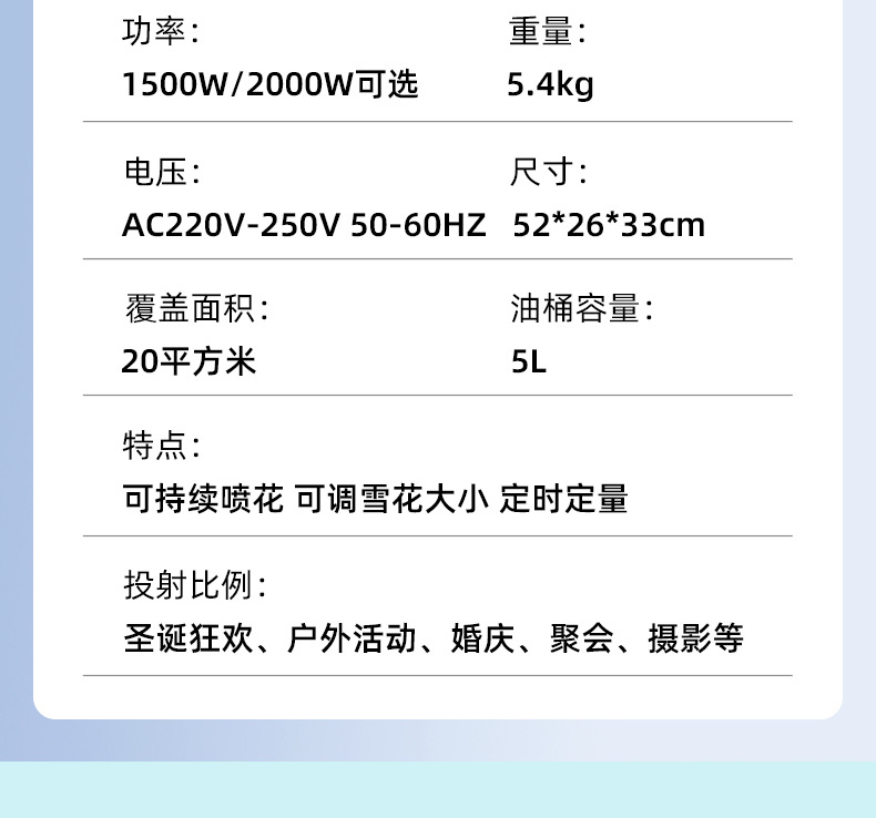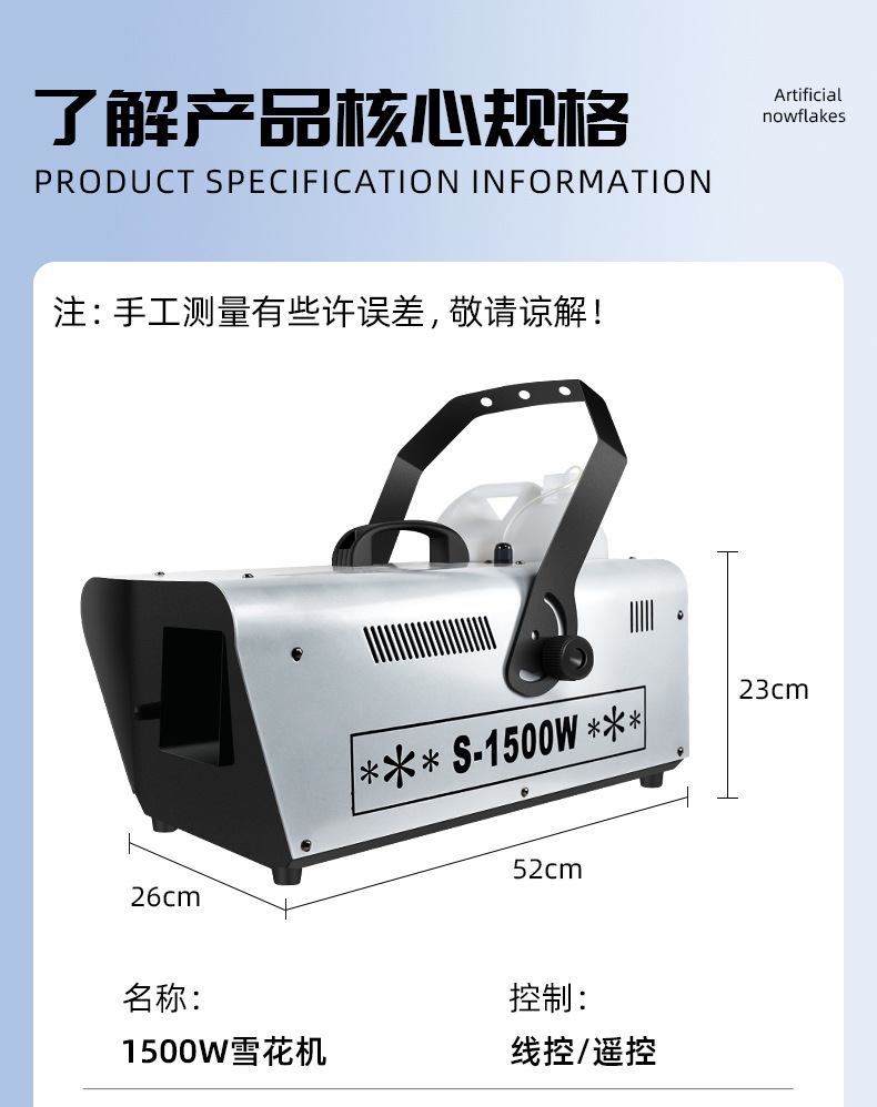 • (이중 제어) 1500w 눈송이 기계 + 크기 조절이 가능한 눈송이 에센스 2병