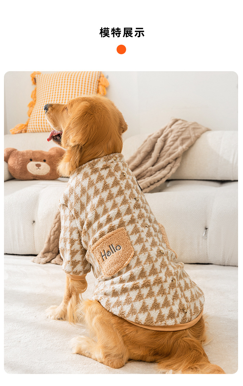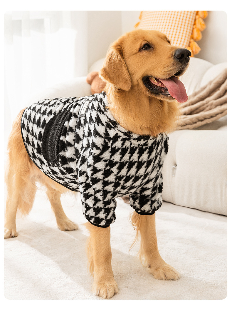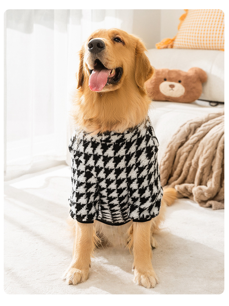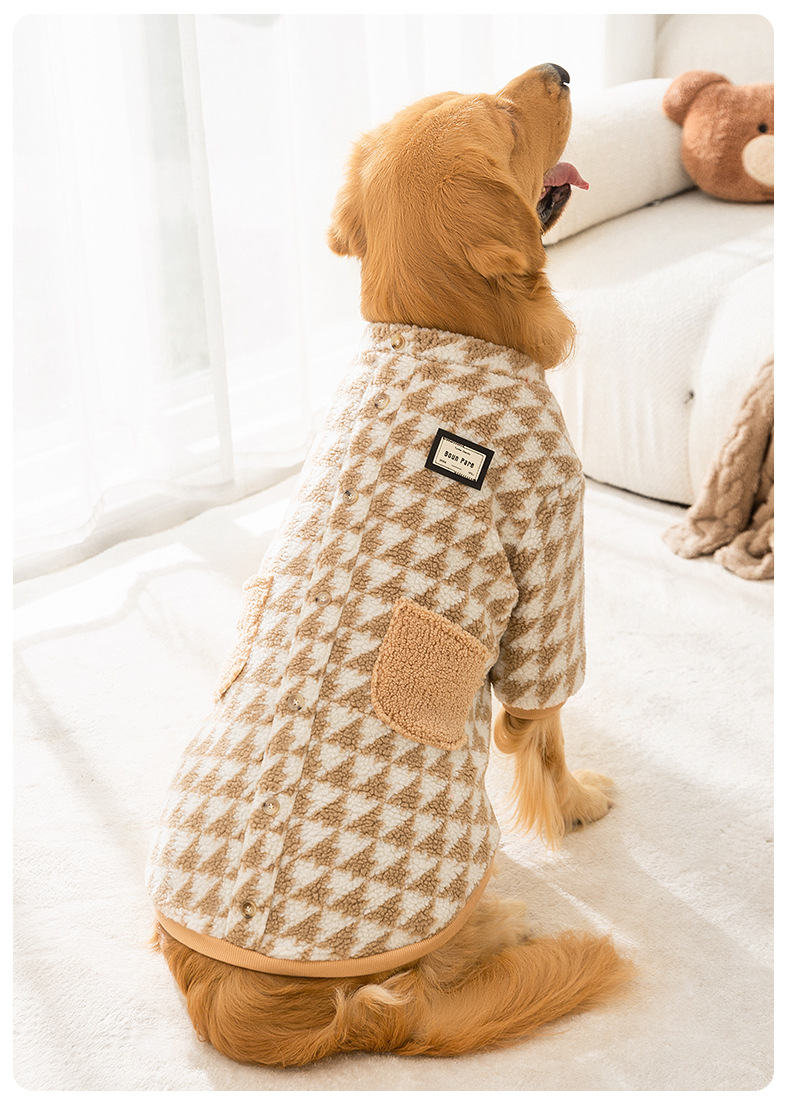 가을과 겨울 클래식 Houndstooth 포켓 큰 개 벨벳 황금 래브라도 코기 큰 개 애완 동물 옷스토어 가기