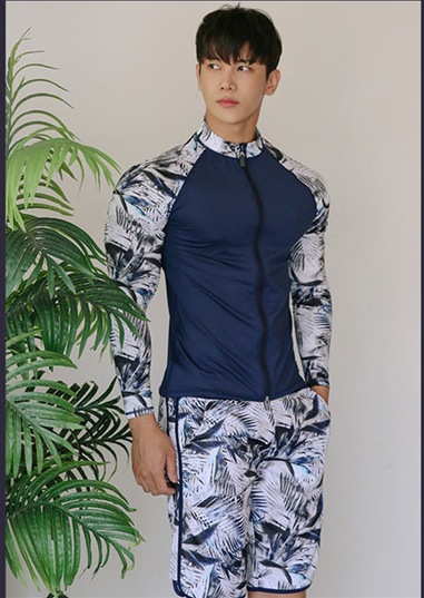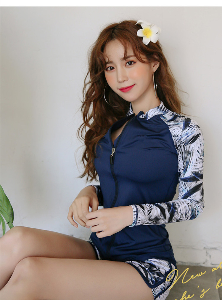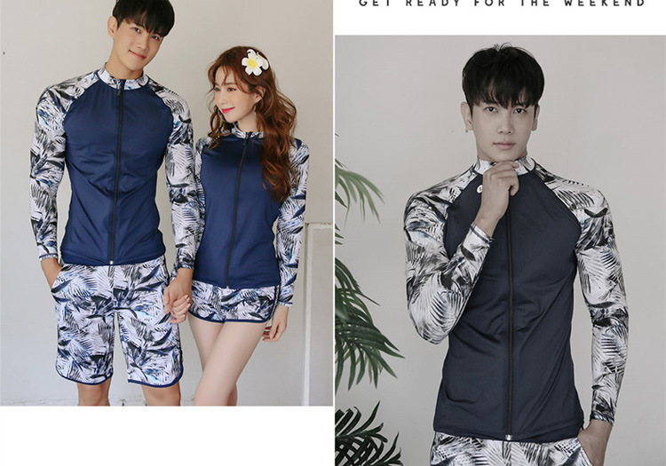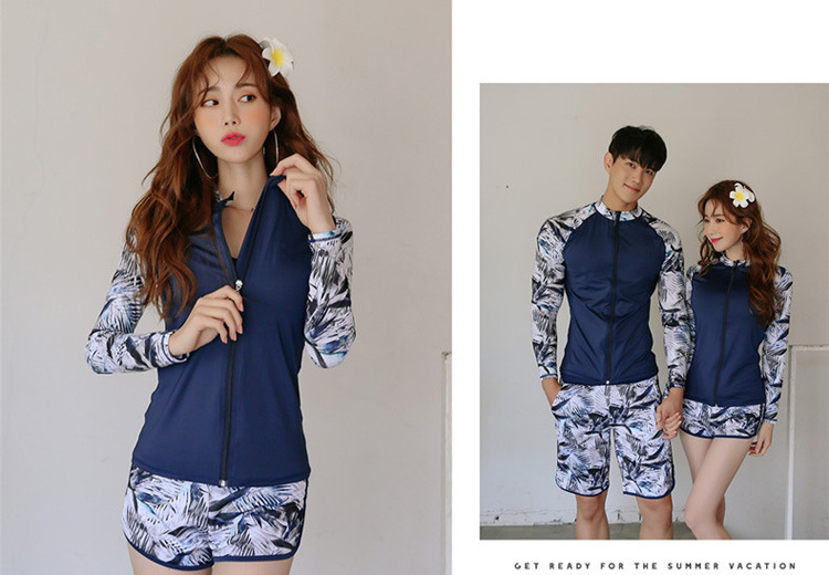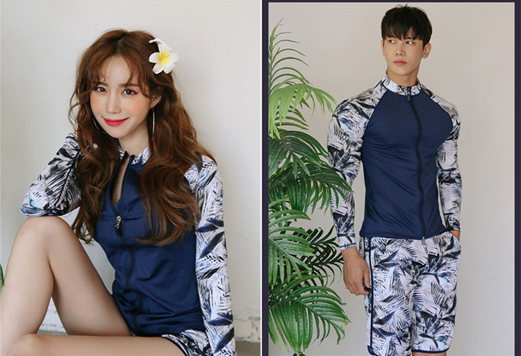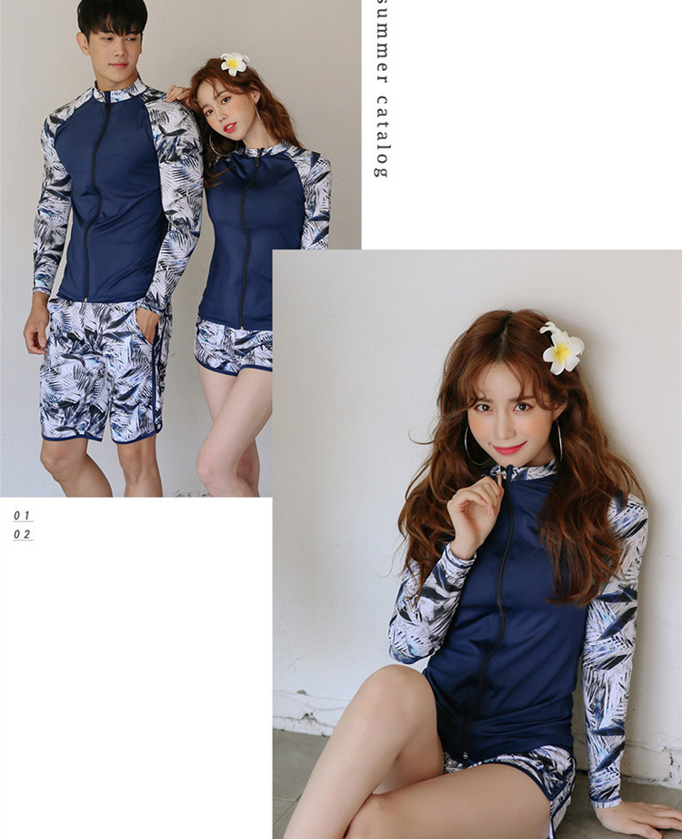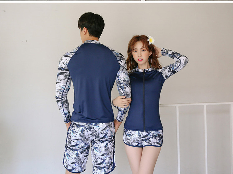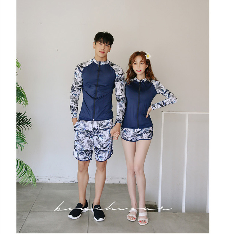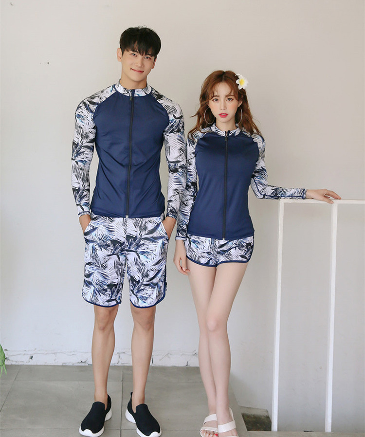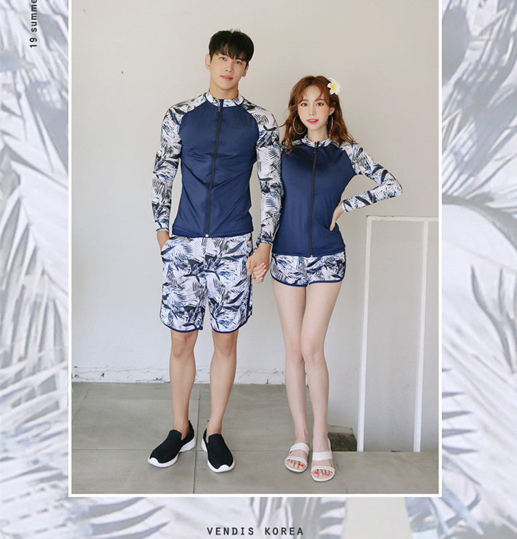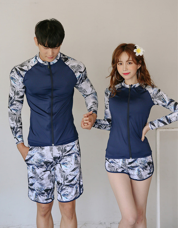 2024 새로운 한국 슬림 핏 컬러 분할 긴팔 보수적 인 태양 보호 수영복 여성 커플 남성용 비치 다이빙 세트스토어 가기