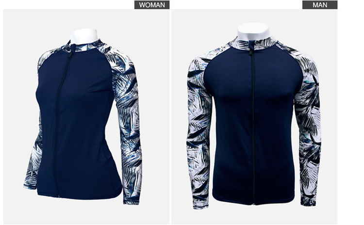 2024 새로운 한국 슬림 핏 컬러 분할 긴팔 보수적 인 태양 보호 수영복 여성 커플 남성용 비치 다이빙 세트