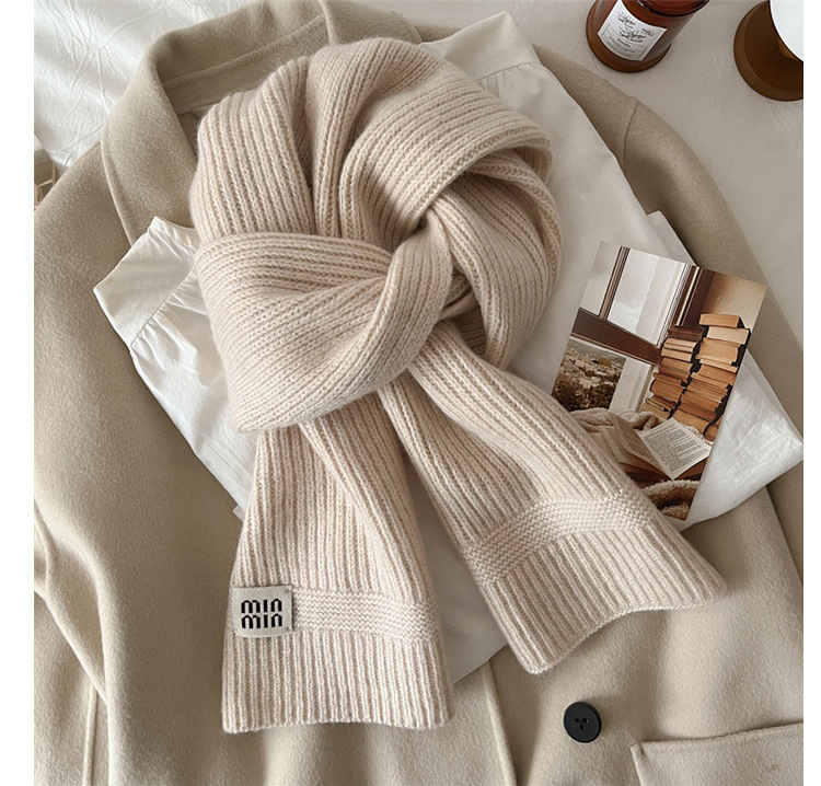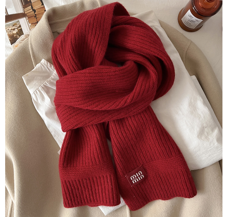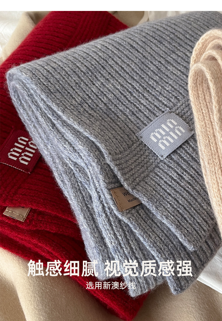 한국식 라이스 레드 그레이 100 여성용 순수 울 니트 스카프 커플 겨울 남성용 올 매치 솔리드 컬러 스카프스토어 가기