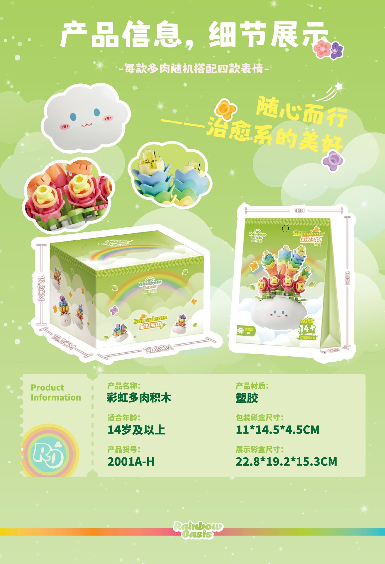 무지개 오아시스 미세 입자 조립 건물 블록 장난감 CH2001A-H 무지개 다육 식물 화분 시리즈 생성스토어 가기