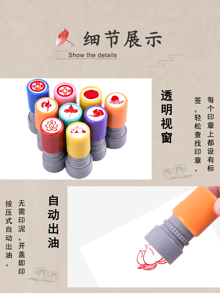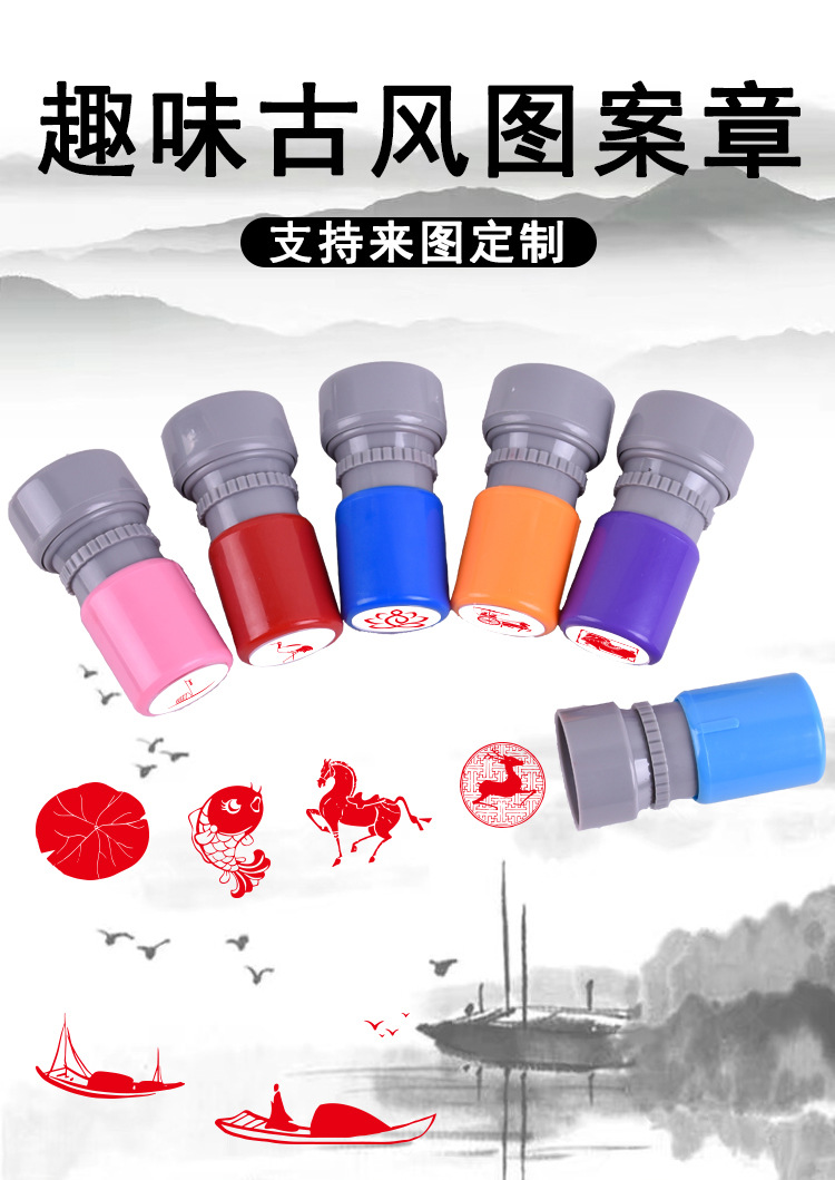 재미있는 만화 패턴 인감 손 계정 유휴 장 서예 및 중국 연꽃 길조 구름 스타일 고대 스타일 서예 장 완성스토어 가기