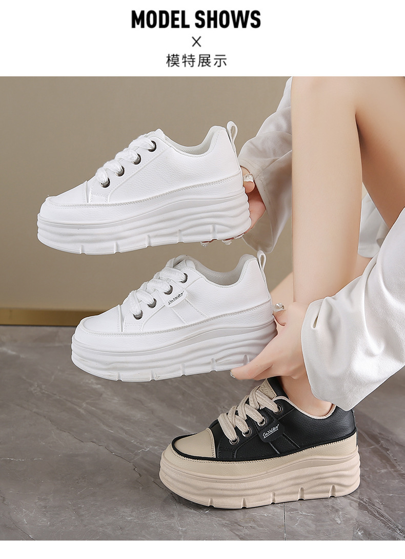 W3616 새로운 보드 신발 단색 2024 가을 조수 작은 흰색 신발 두꺼운 발바닥 증가 내마모성 캐주얼 신발 학생 신발스토어 가기
