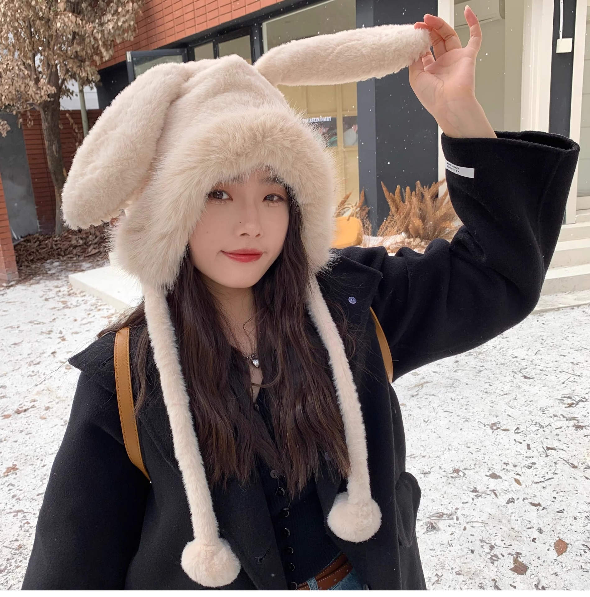 부드러운 귀여운 긴 귀 토끼 따뜻한 모자 어린이 겨울 달콤한 귀여운 봉제 Lei Feng 캡 토끼 귀 모자 두껍게스토어 가기