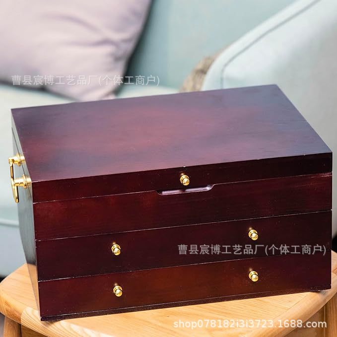 나무 실버 웨어 상자 가정용 식기 저장 상자 나무 실버 웨어 저장 상자 3 층 서랍 유형 저장 상자스토어 가기