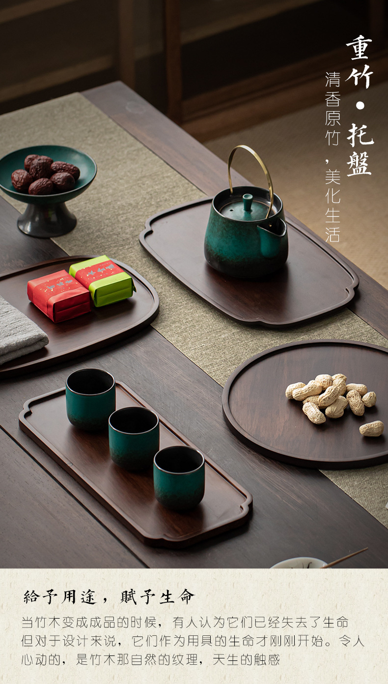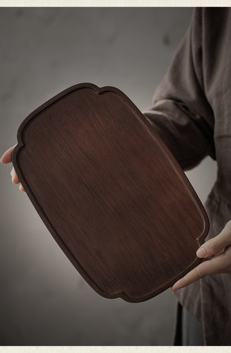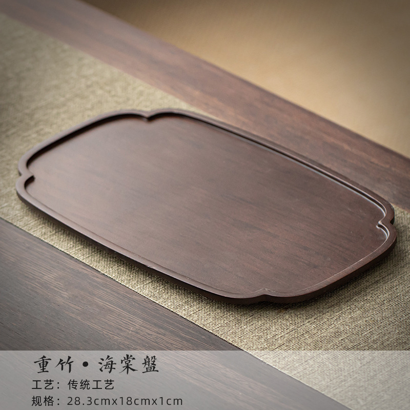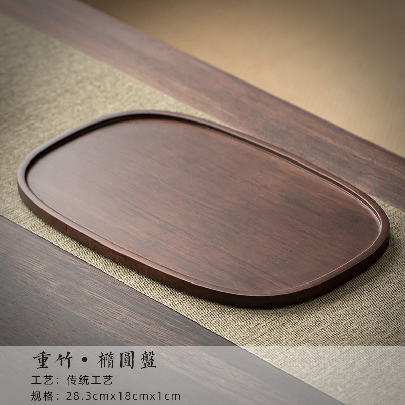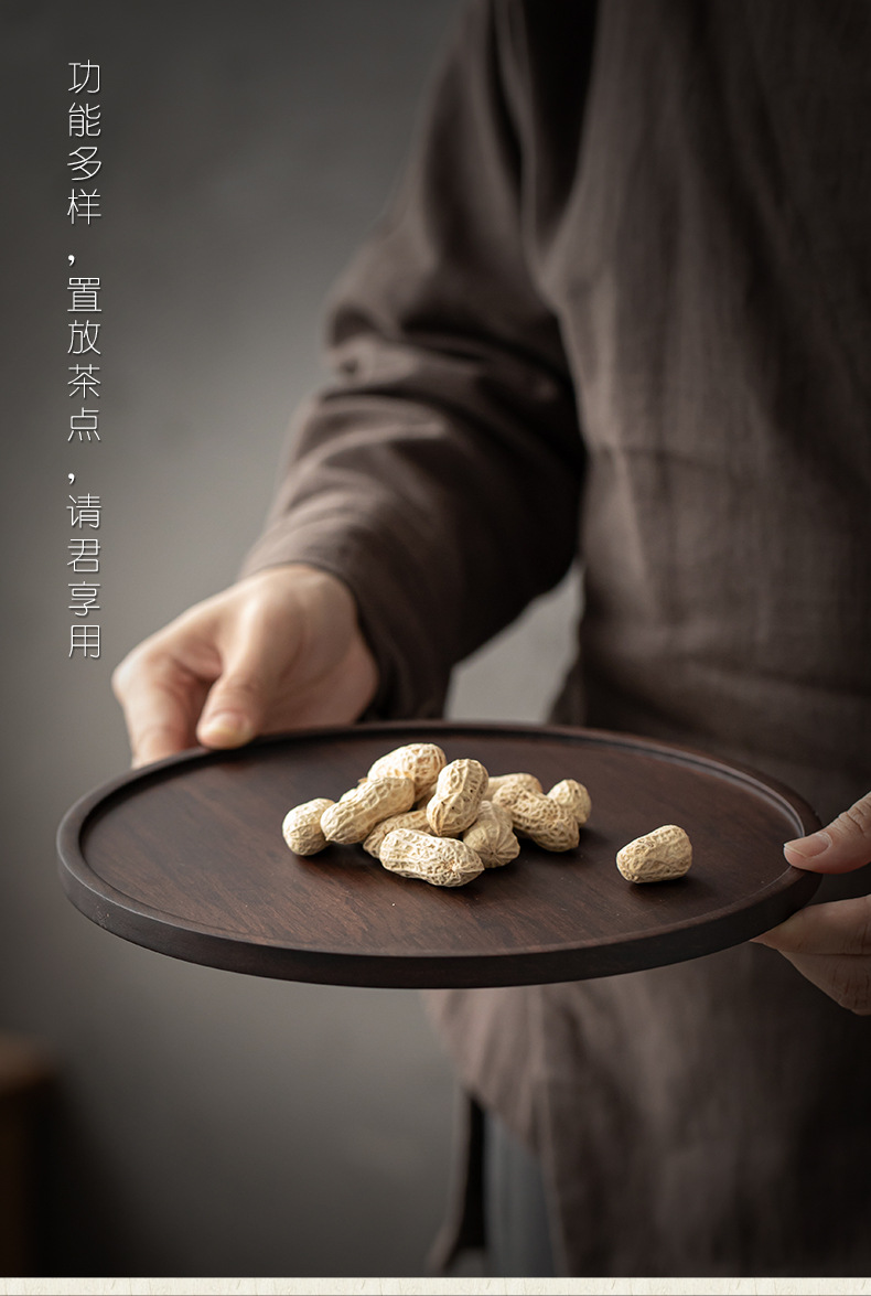 무거운 대나무 트레이 일본 스타일 드라이 브루 티 트레이 가정용 호두 컬러 우드 플레이트 솔리드 우드 플레이트 라운드 북유럽 케이크 레스토랑 플레이트스토어 가기