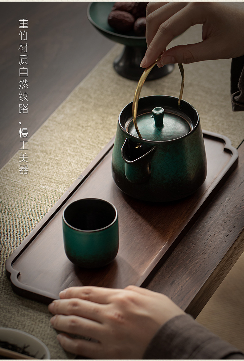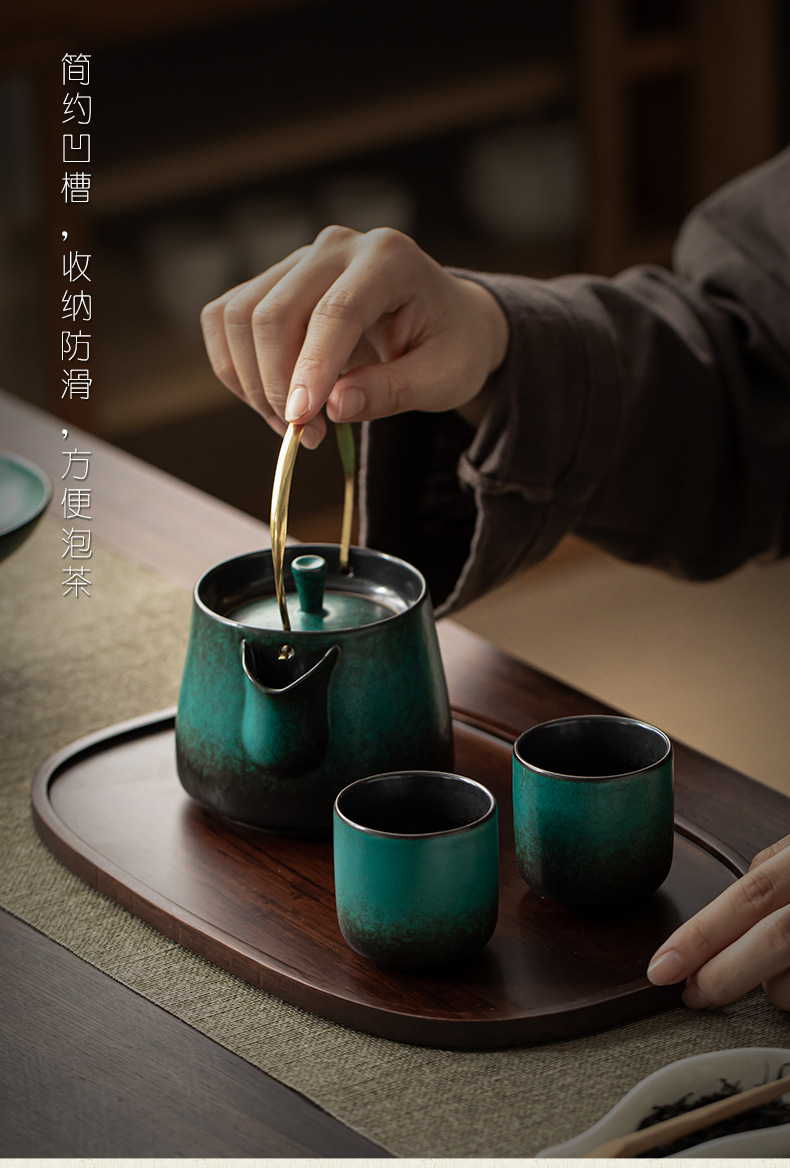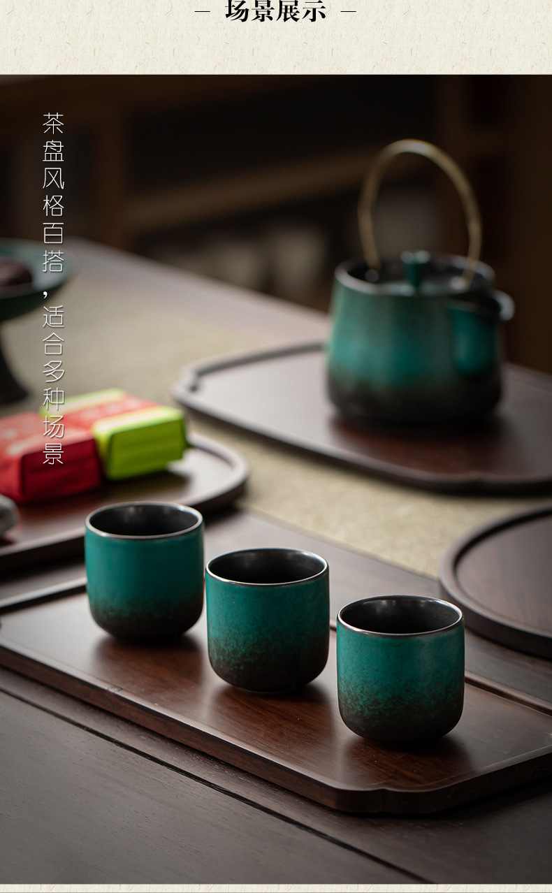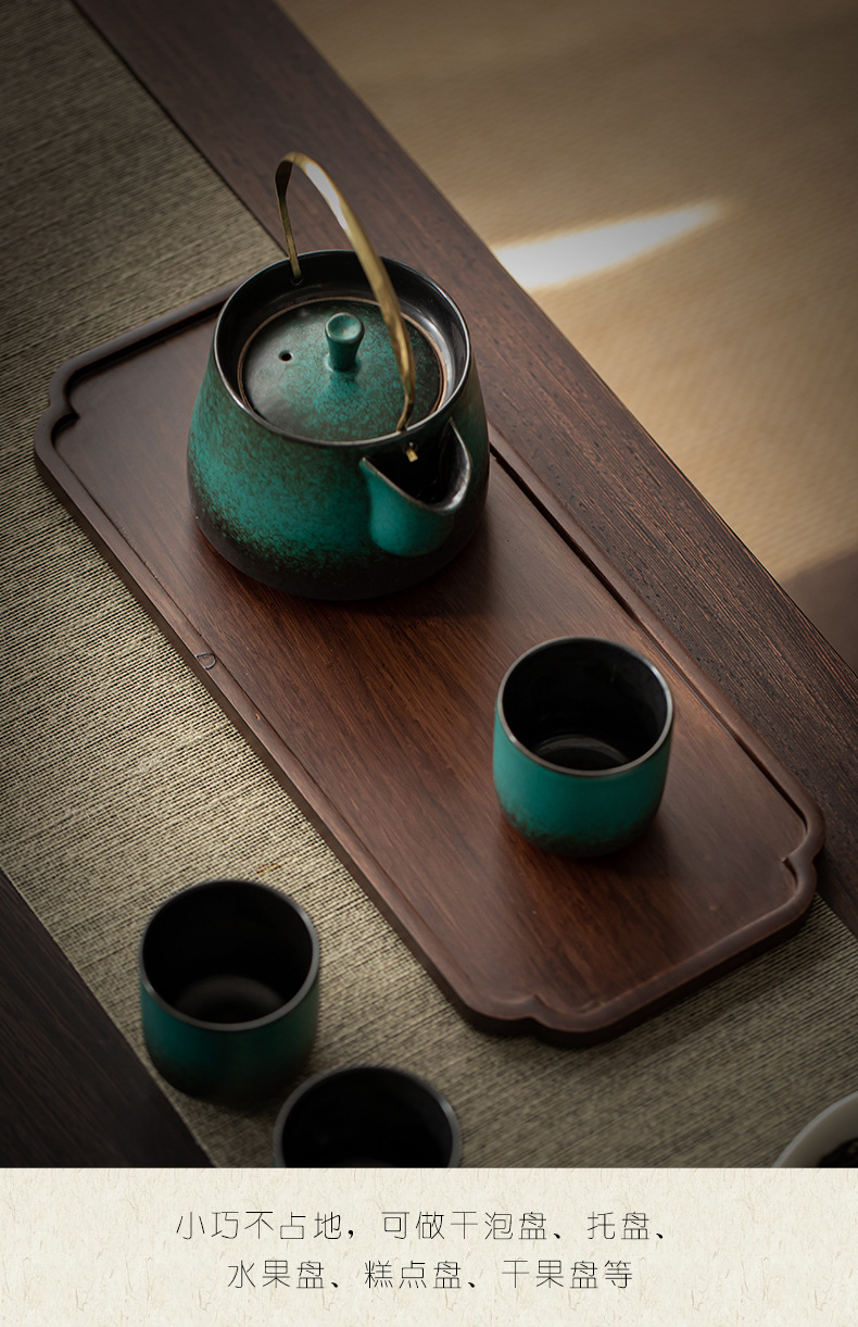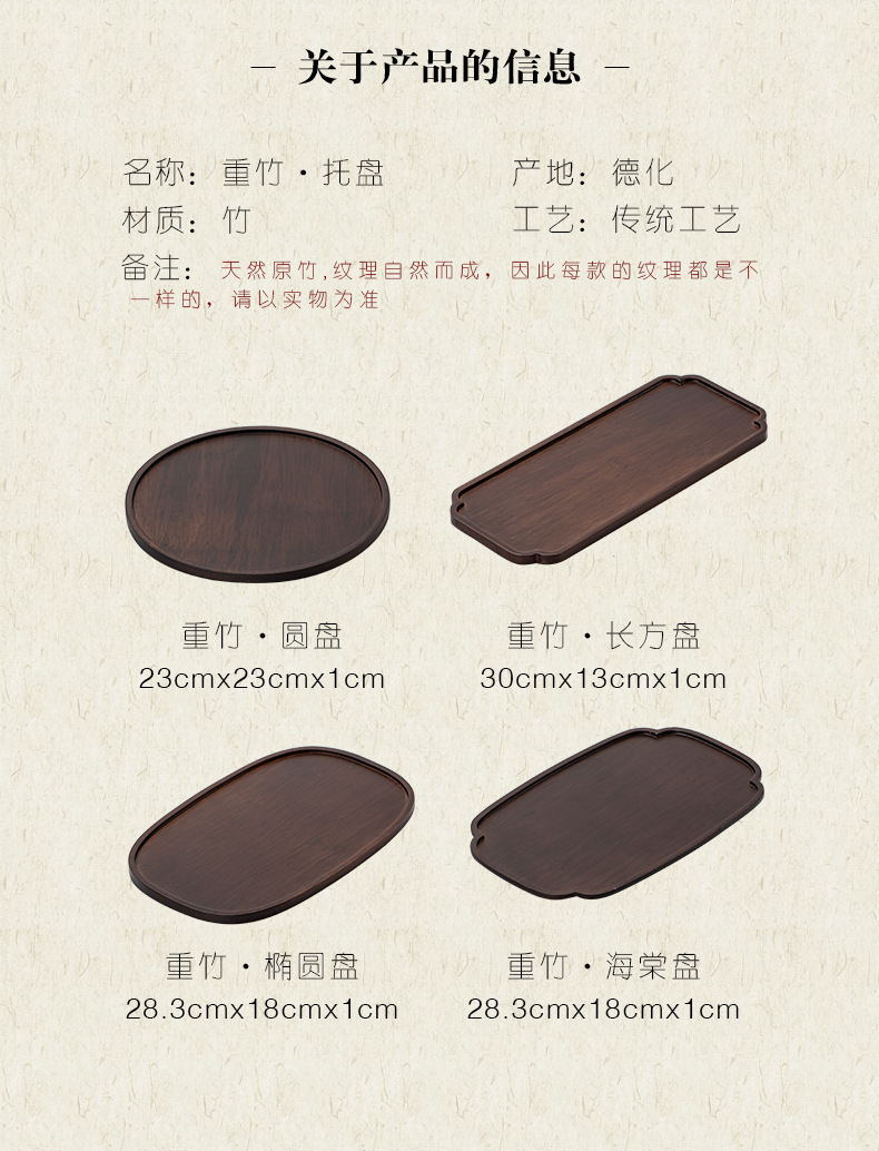 무거운 대나무 트레이 일본 스타일 드라이 브루 티 트레이 가정용 호두 컬러 우드 플레이트 솔리드 우드 플레이트 라운드 북유럽 케이크 레스토랑 플레이트스토어 가기