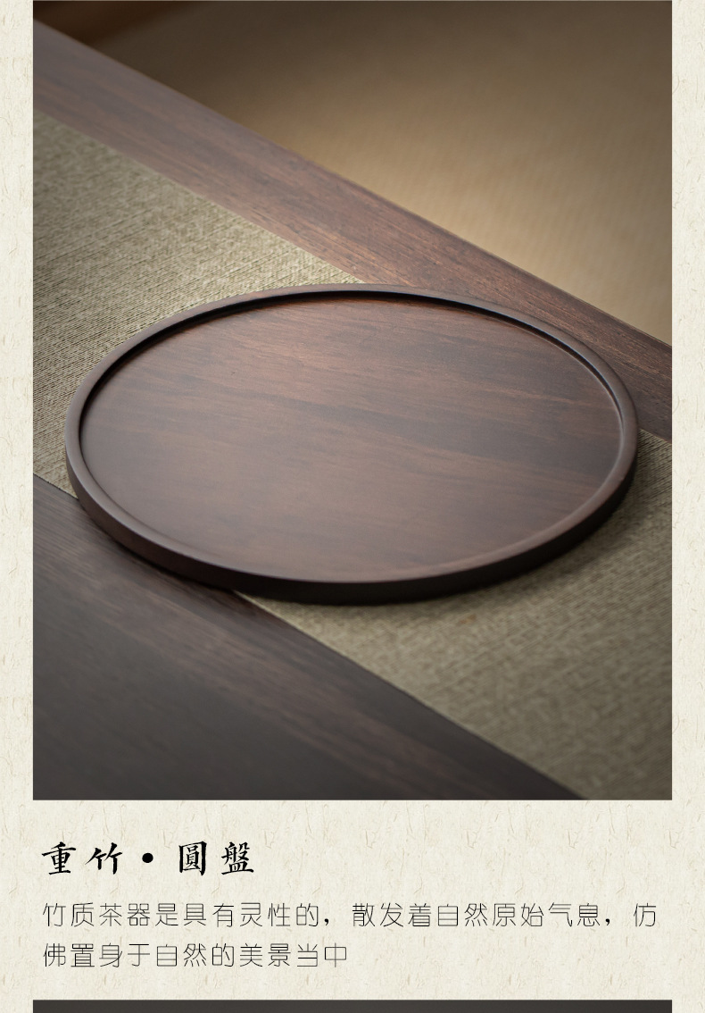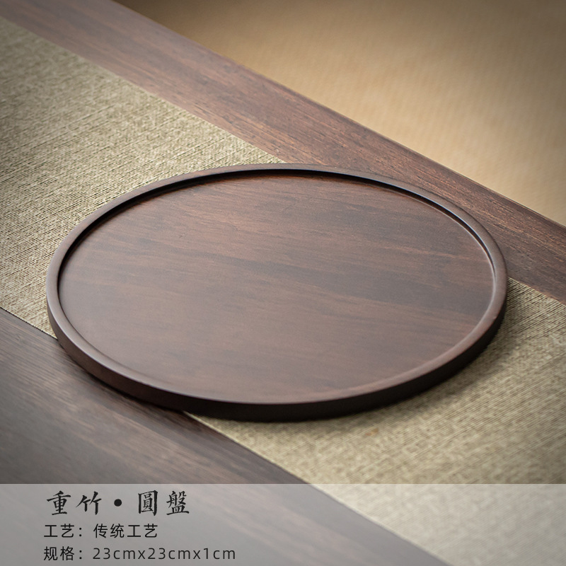 무거운 대나무 트레이 일본 스타일 드라이 브루 티 트레이 가정용 호두 컬러 우드 플레이트 솔리드 우드 플레이트 라운드 북유럽 케이크 레스토랑 플레이트