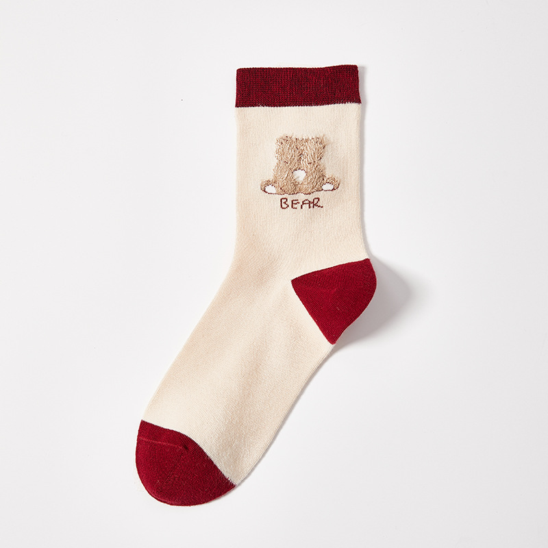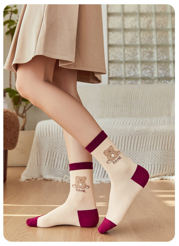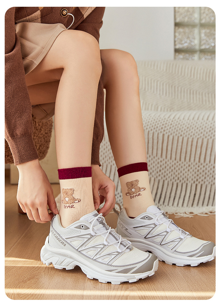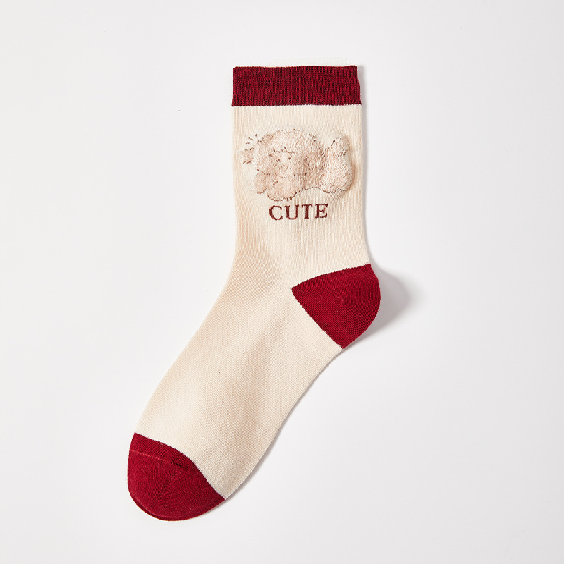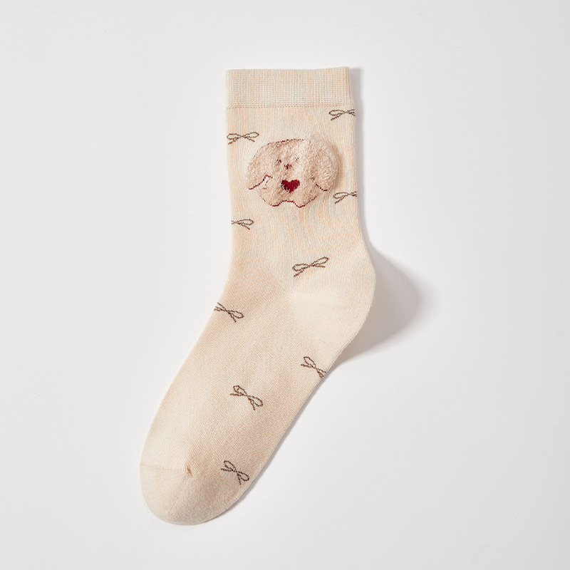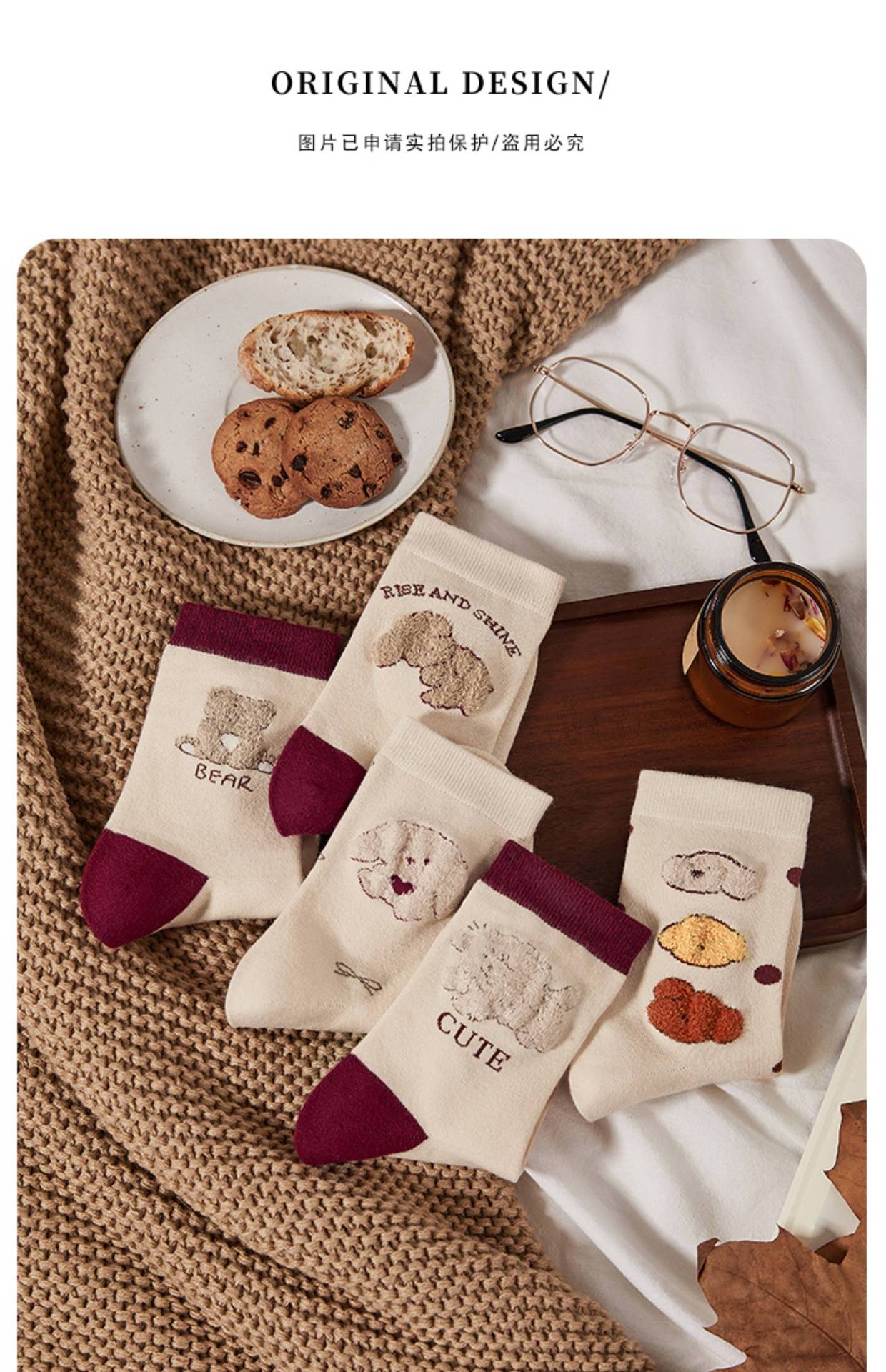 한국 동대문 잠금 만화 강아지 중간 길이 양말 여성 가을 및 겨울 Ins 유행 일본식 버켄스톡 신발 긴 양말스토어 가기