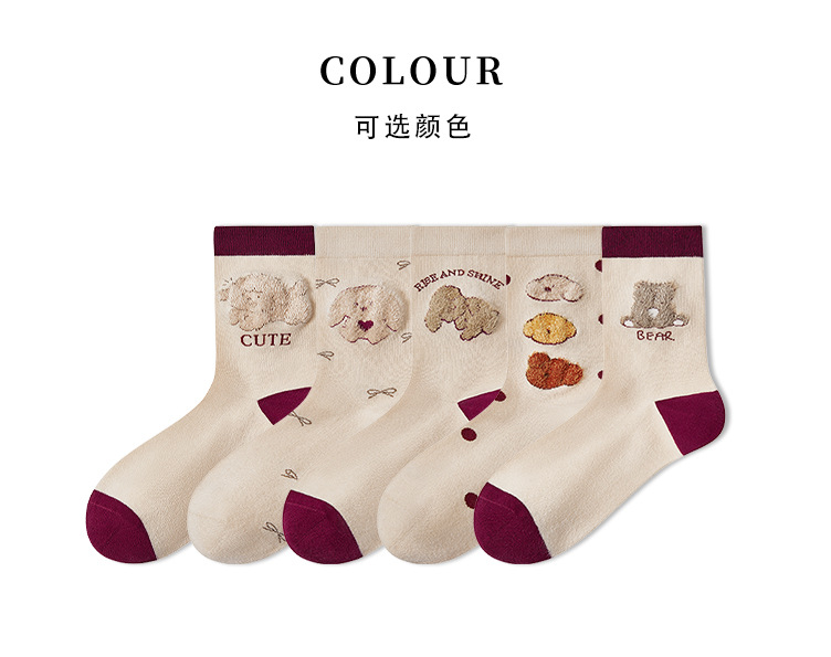 한국 동대문 잠금 만화 강아지 중간 길이 양말 여성 가을 및 겨울 Ins 유행 일본식 버켄스톡 신발 긴 양말
