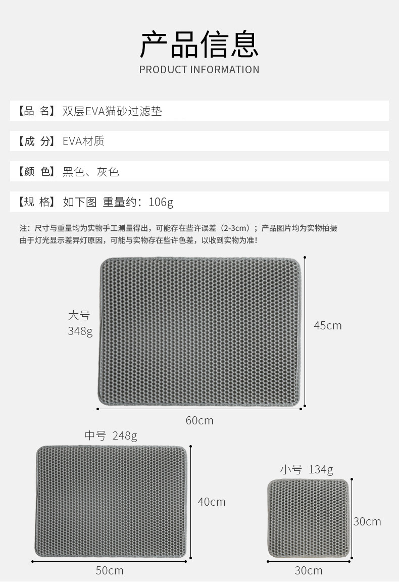 고양이 쓰레기 매트 안티 테이크 아웃 고양이 쓰레기 필터 안티 스플래시 고양이 쓰레기 분지 고양이 화장실 더블 레이어 에바 누출 매트 고양이와 개 매트