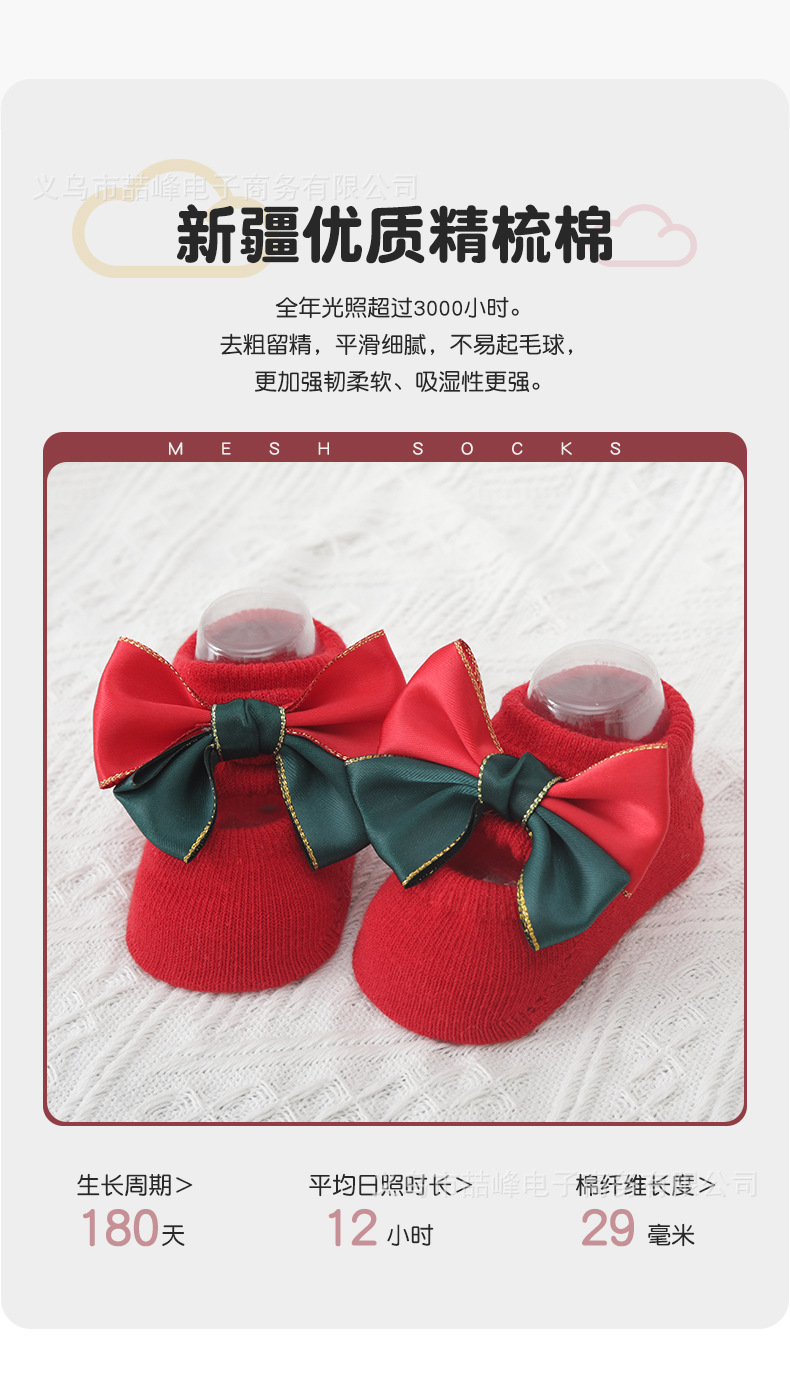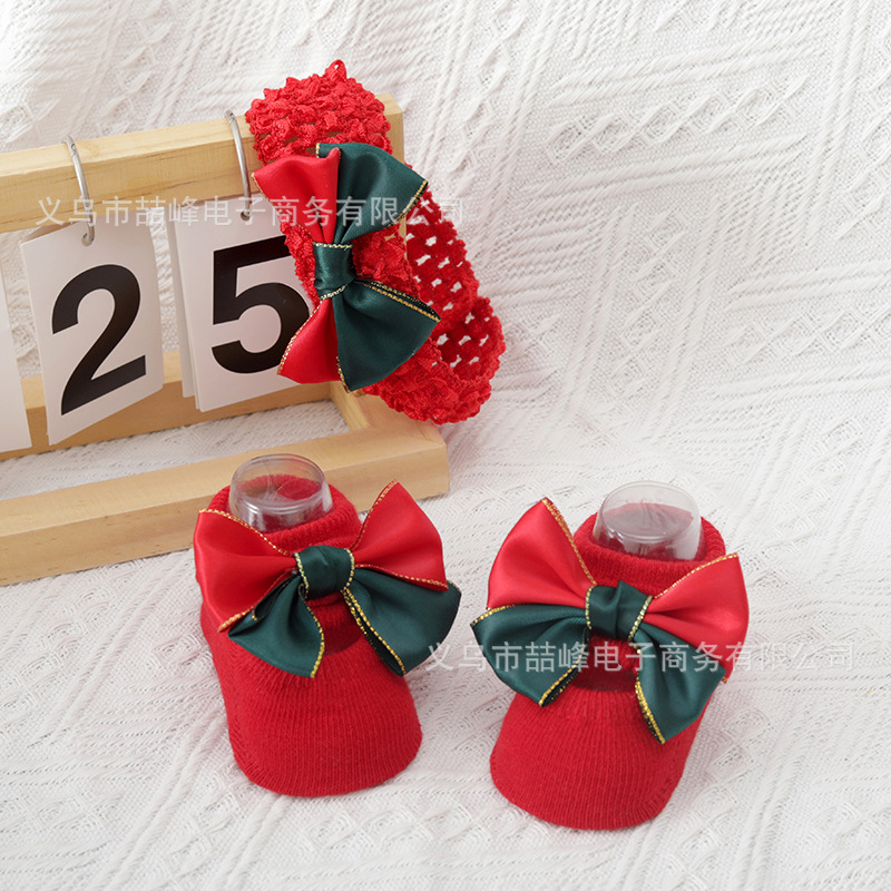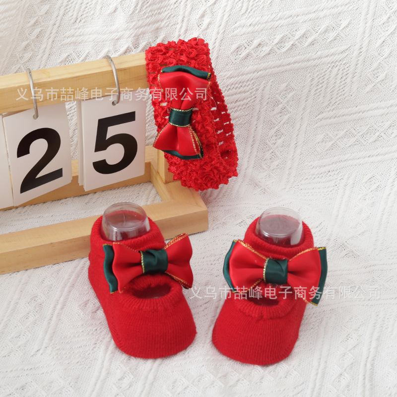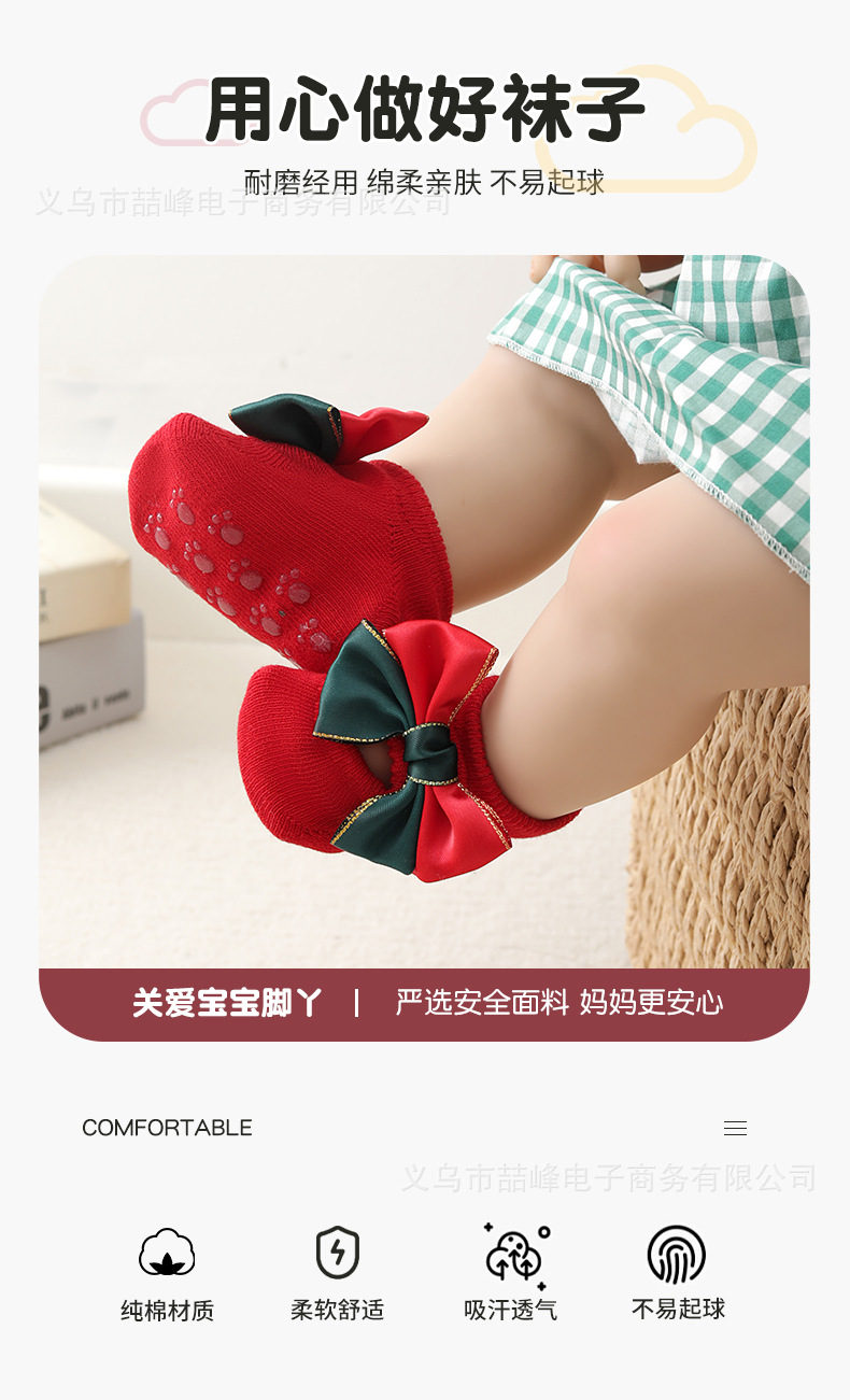 새로운 활 양말 빨간 양말 아기 양말 아기 유아 양말 0-1 세 아기 양말 공장 직접 도매스토어 가기