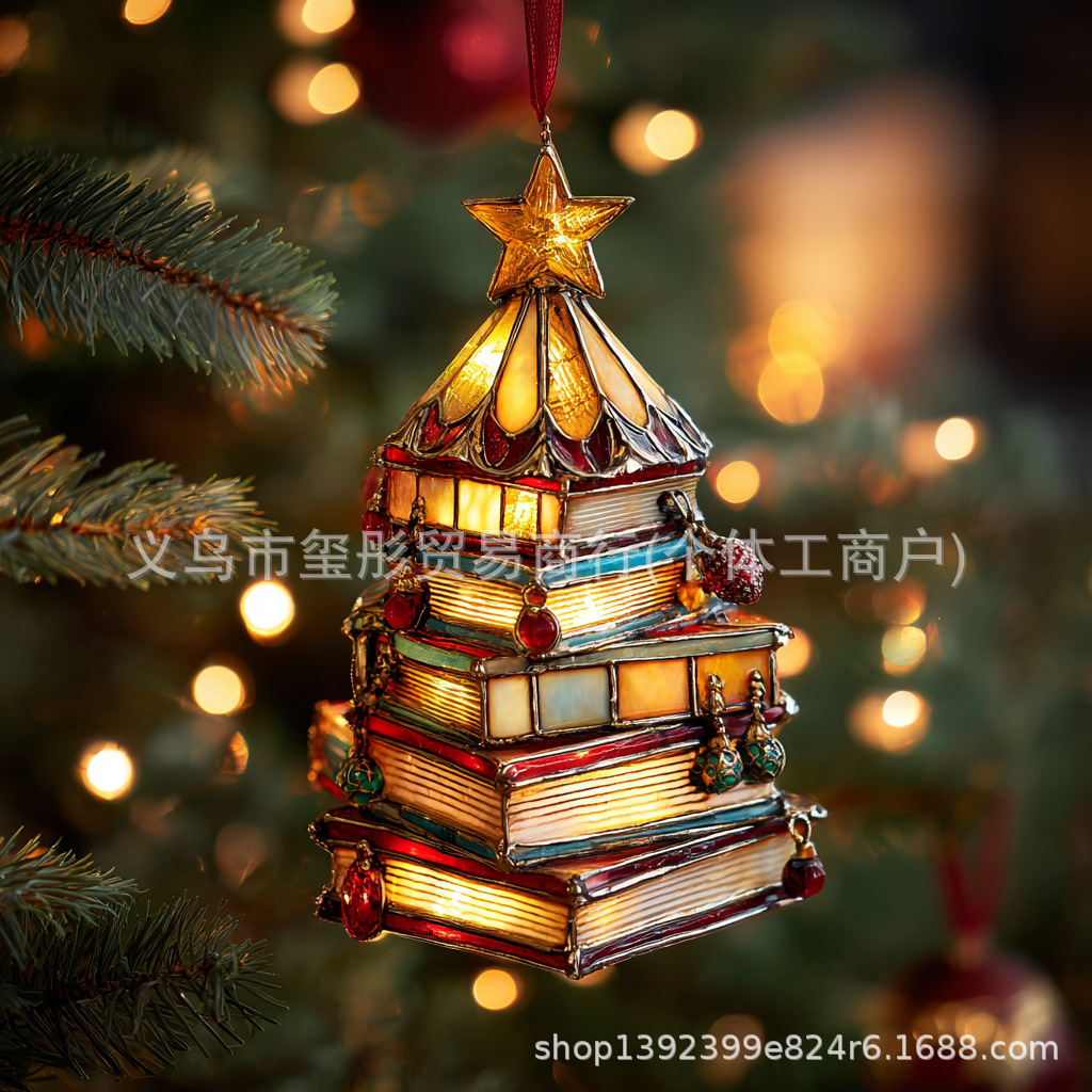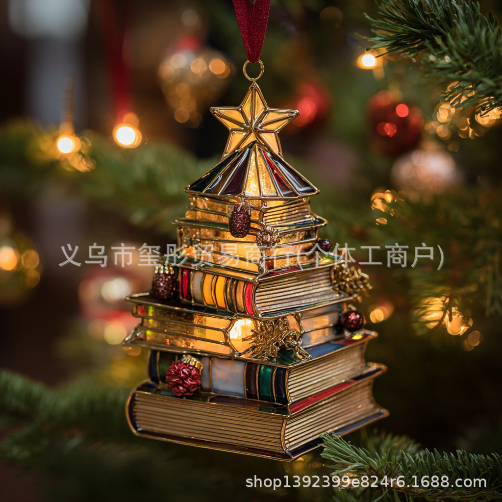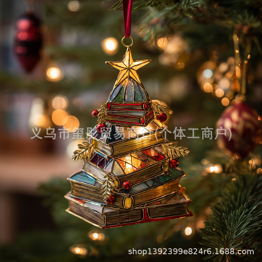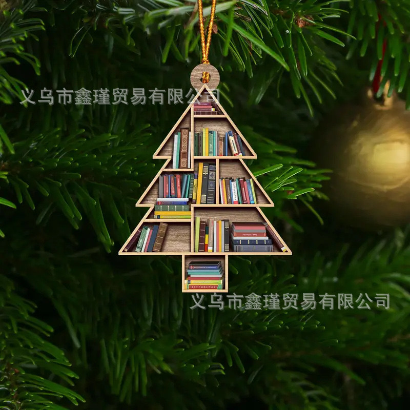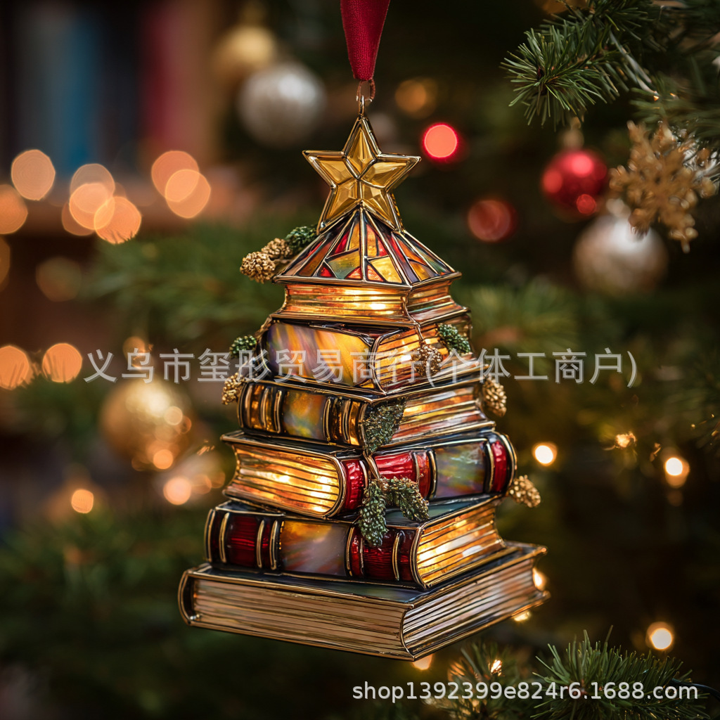 국경 새로운 창조적 인 책 크리스마스 트리 자동차 펜던트 크리스마스 아크릴 장식 휴일 홈 장식스토어 가기