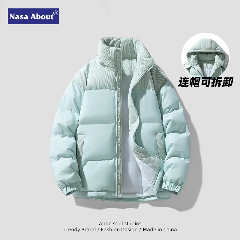 NASA 코듀로이 다운 코튼 코트 남자 겨울 2024 두꺼운 코튼 코트 미국 스타일 트렌디 브랜드 따뜻한 빵 코트스토어 가기