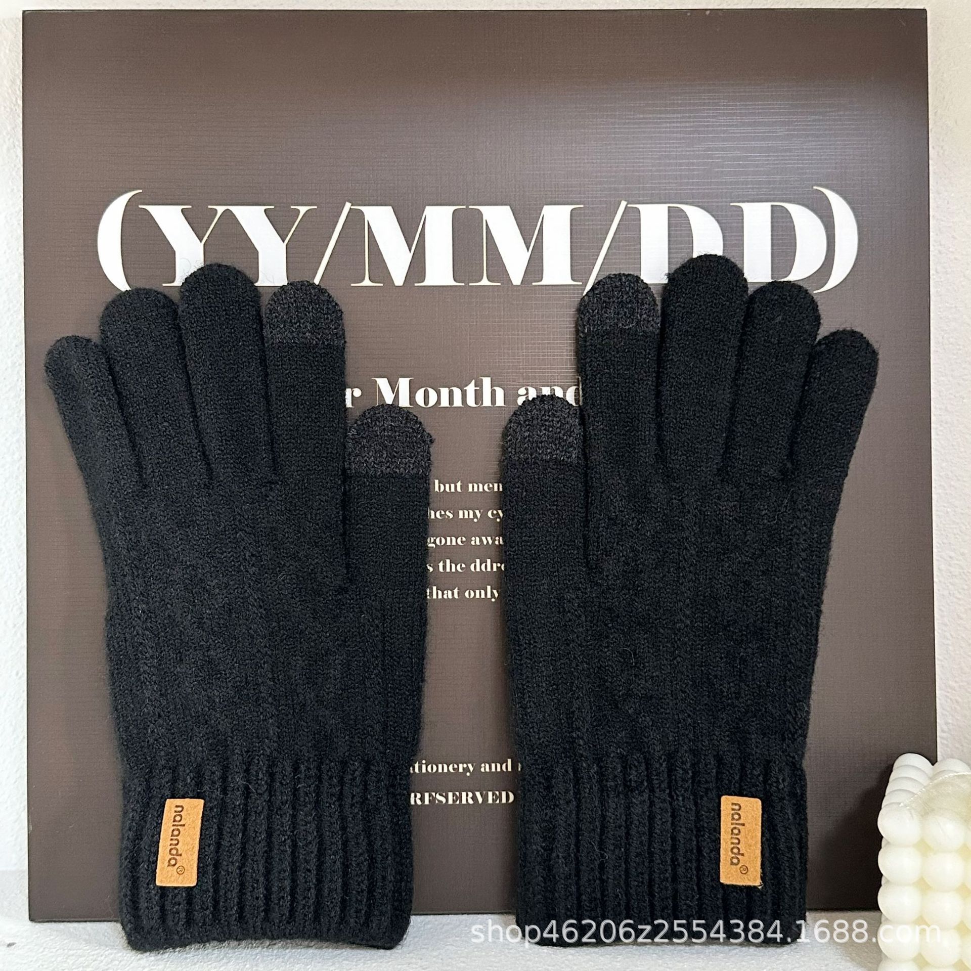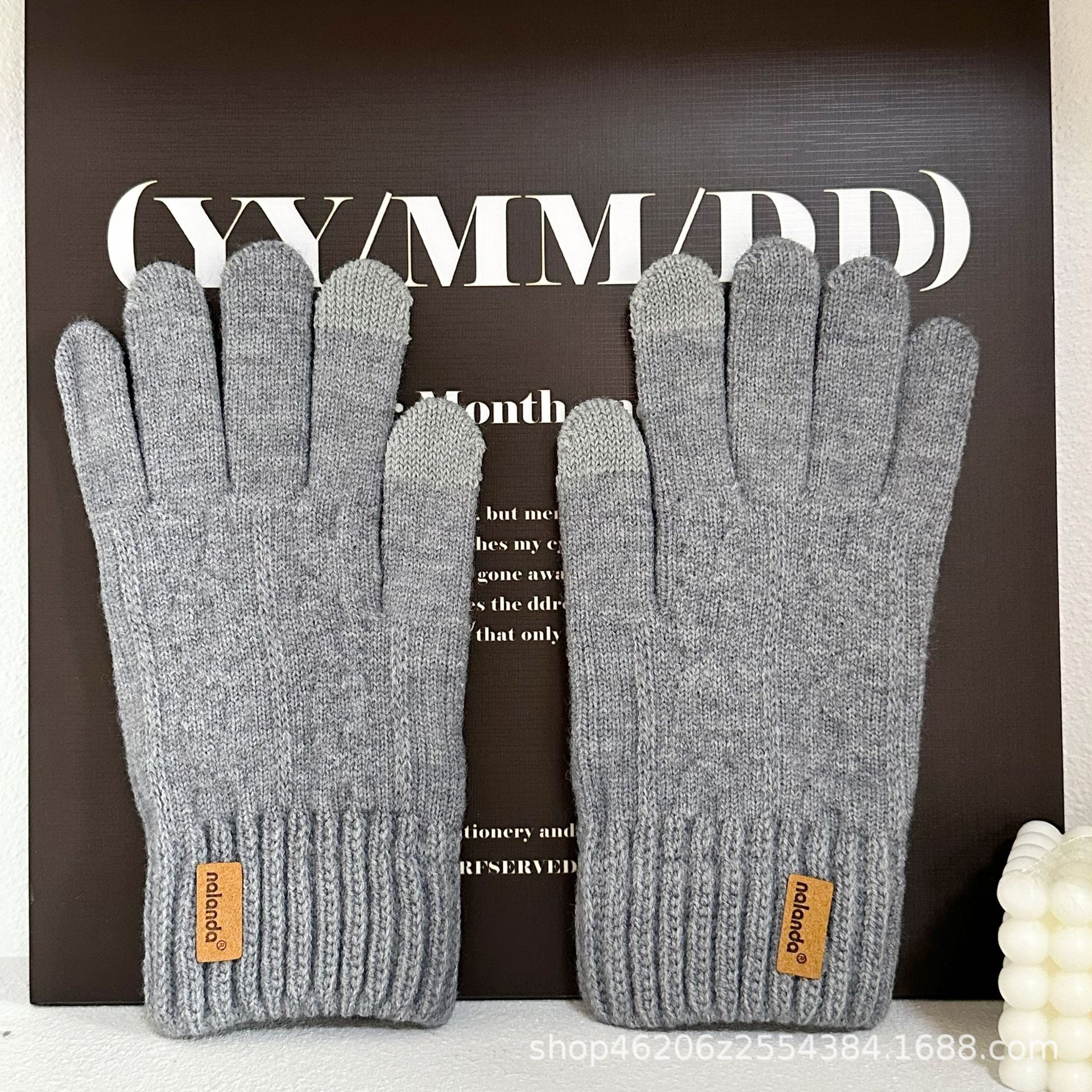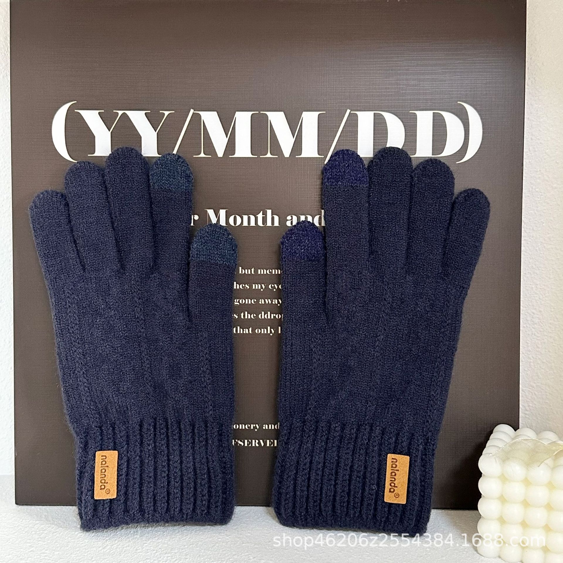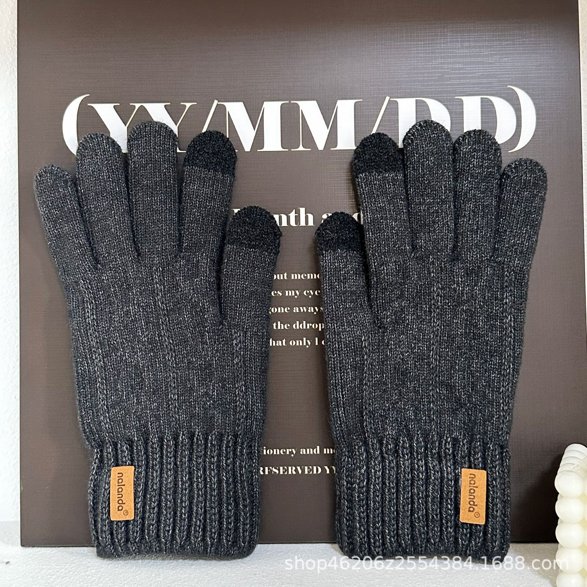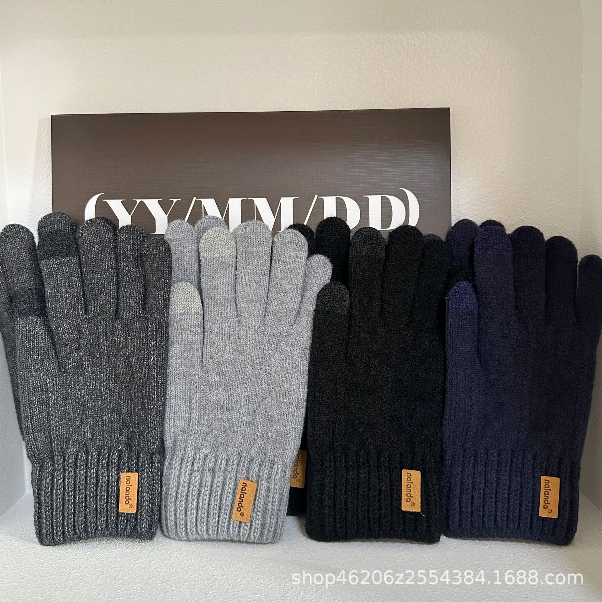 새로운 남성 따뜻한 장갑 겨울 기모 두꺼운 니트 5 손가락 양모 야외 승마 방첩 터치 스크린 장갑
