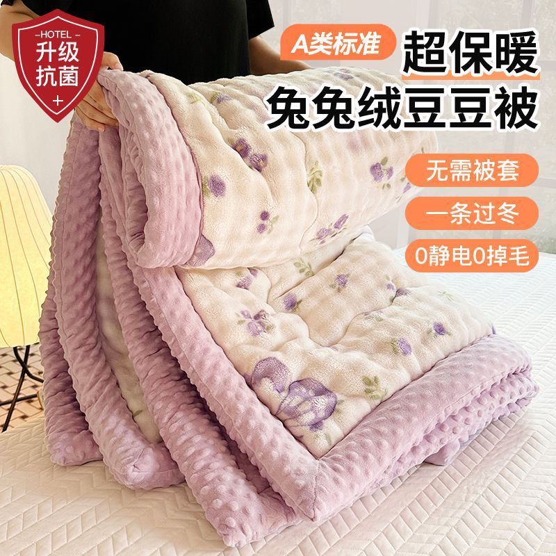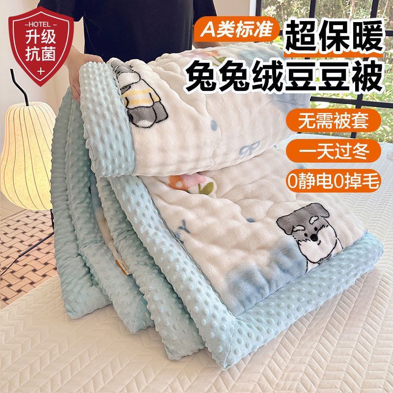 가을과 겨울 토끼 토끼 벨벳 완두콩 퀼트 겨울 퀼트 코튼 패딩 두꺼운 겨울 퀼트 양면 벨벳 코어 학생 기숙사 담요