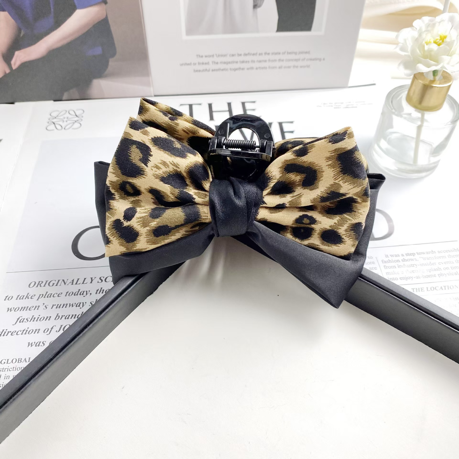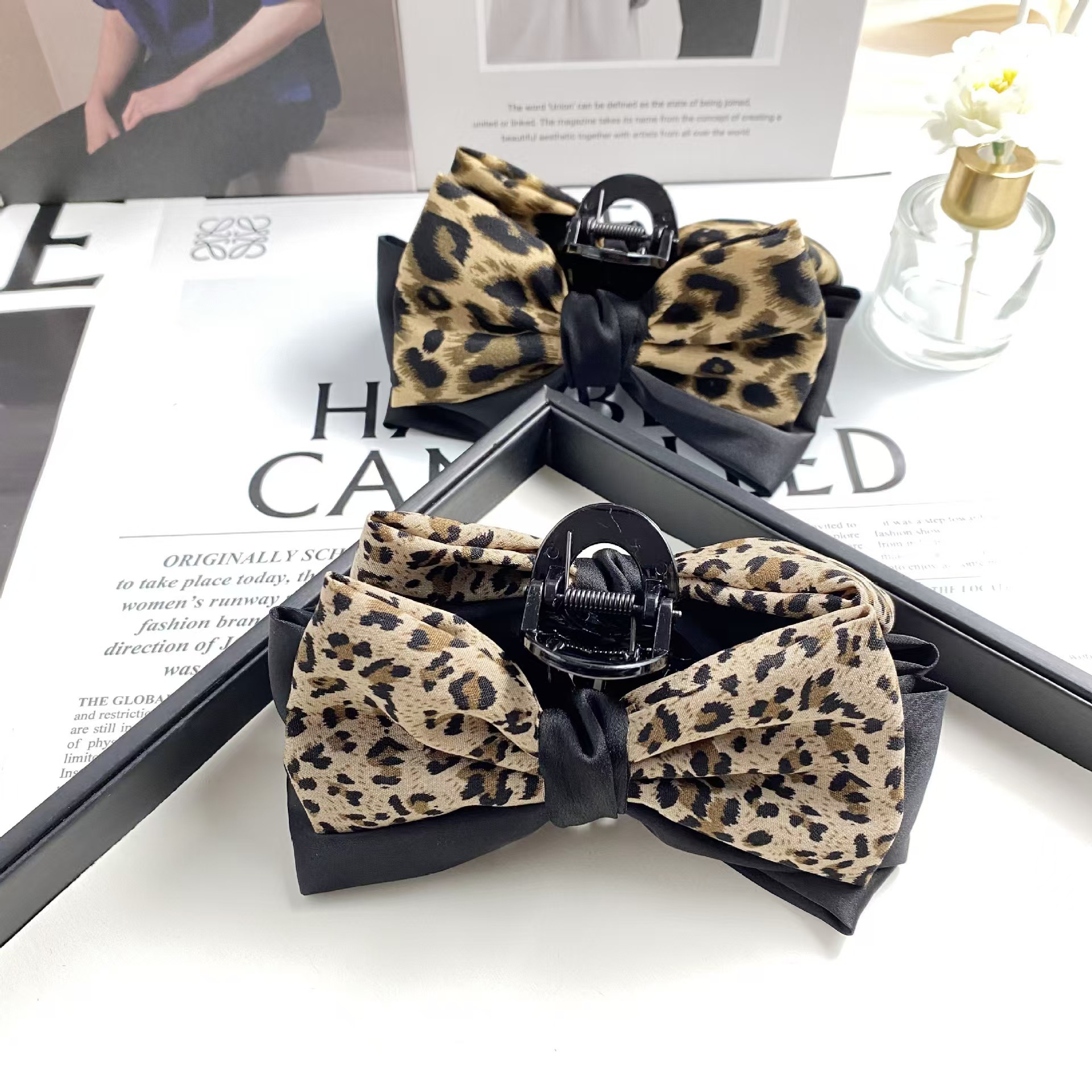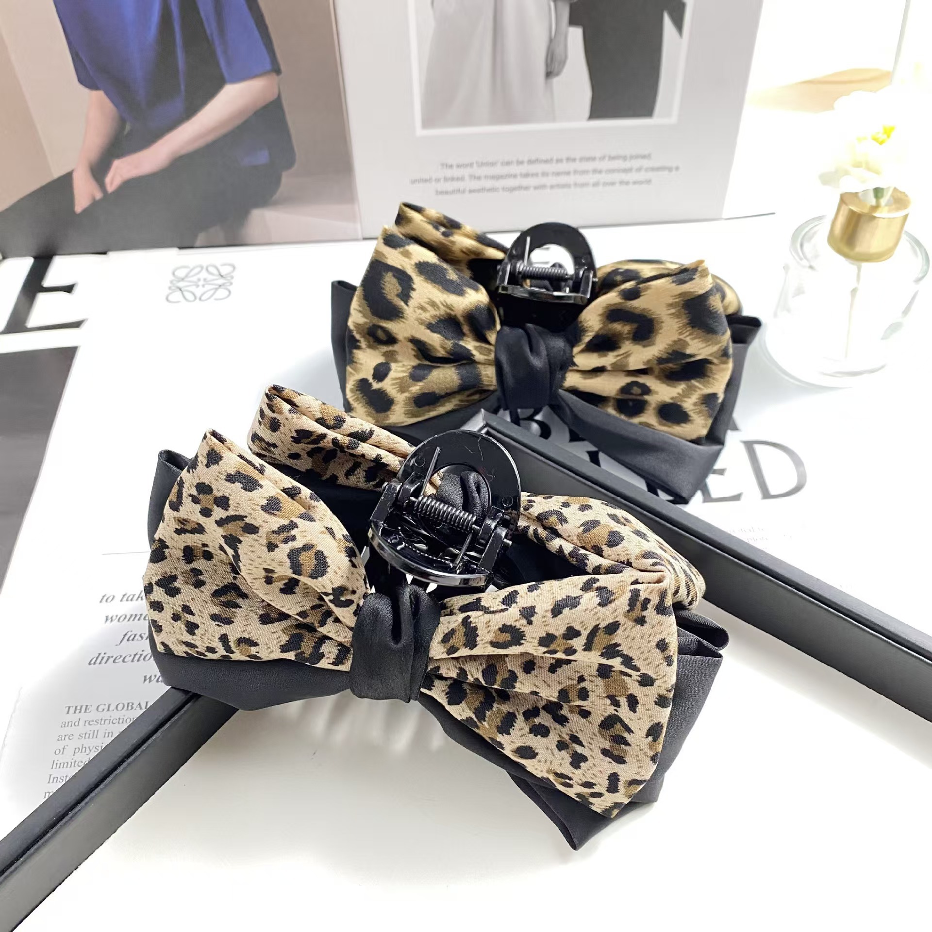 한국 동대문 대형 레오파드 무늬 보우 그랩 클립 헤드웨어 신식 우아한 머리 상어 클립