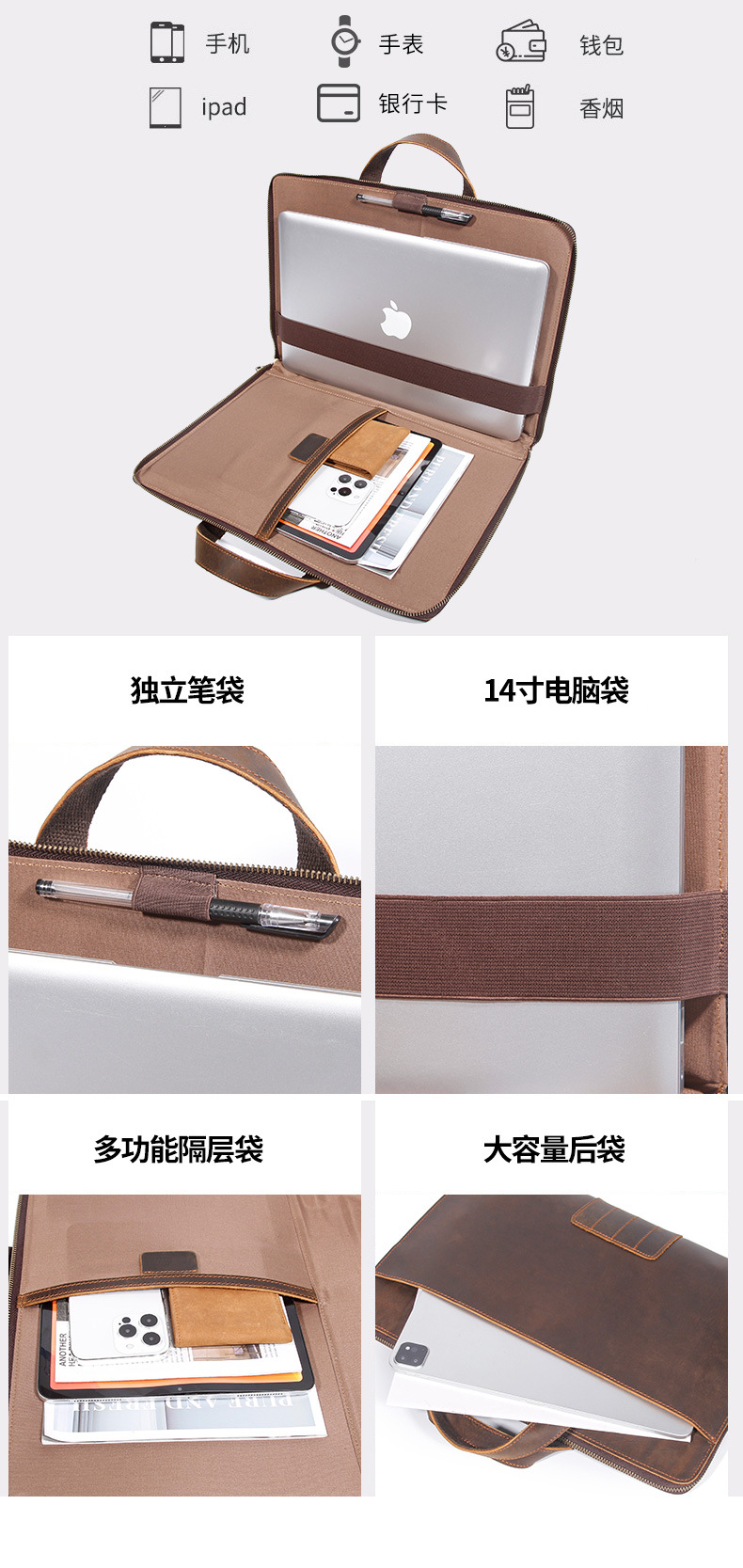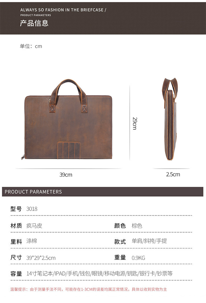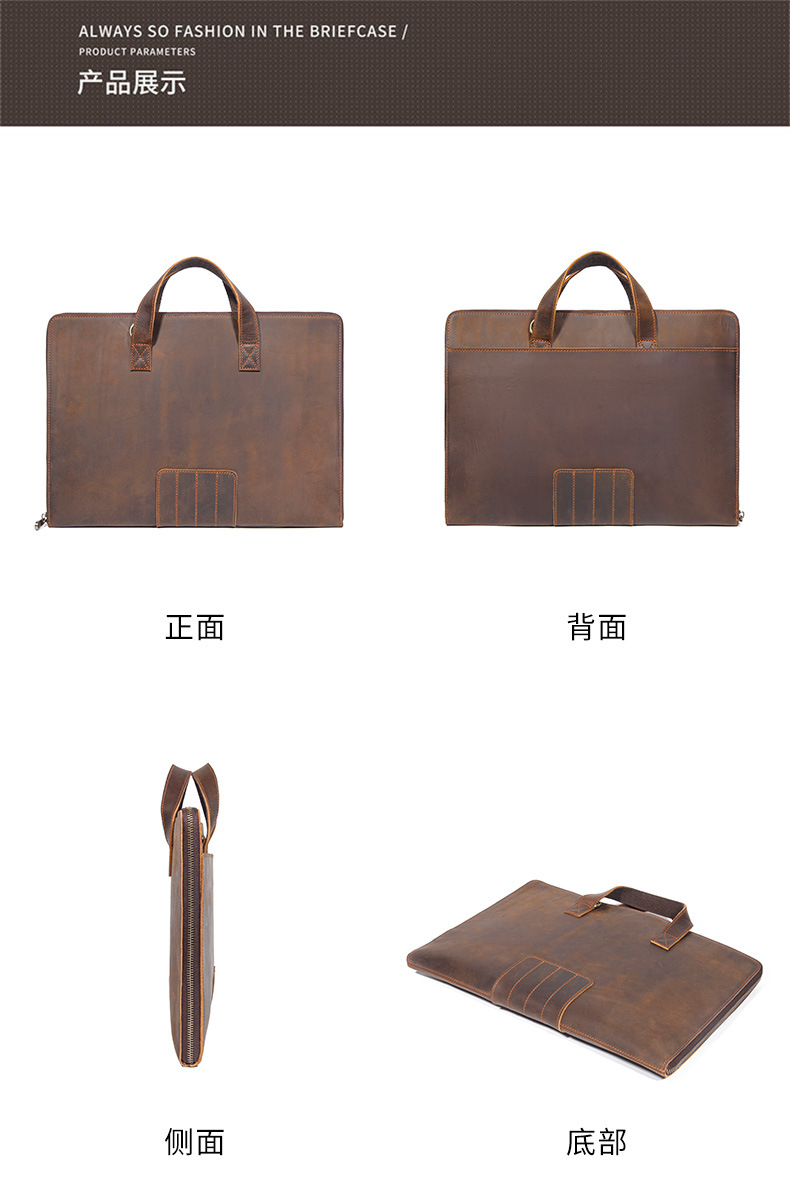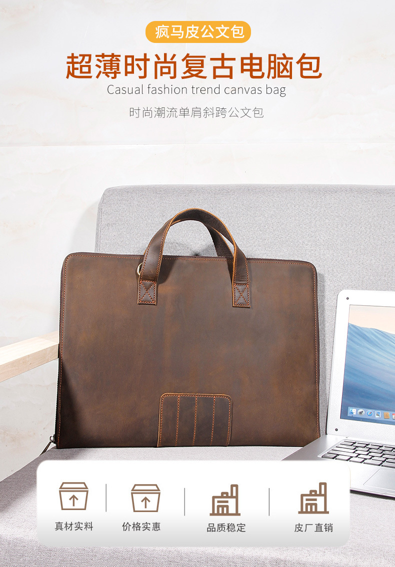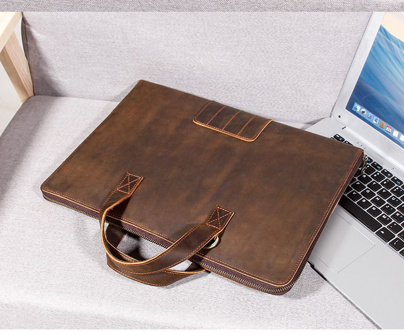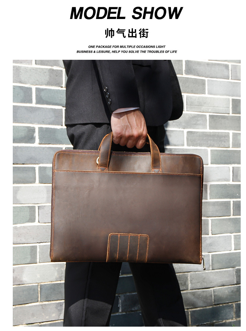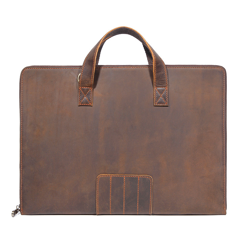 빈티지 정품 가죽 미친 말 가죽 남성 파일 가방 비즈니스 서류 가방 14 인치 노트북 가방 도매