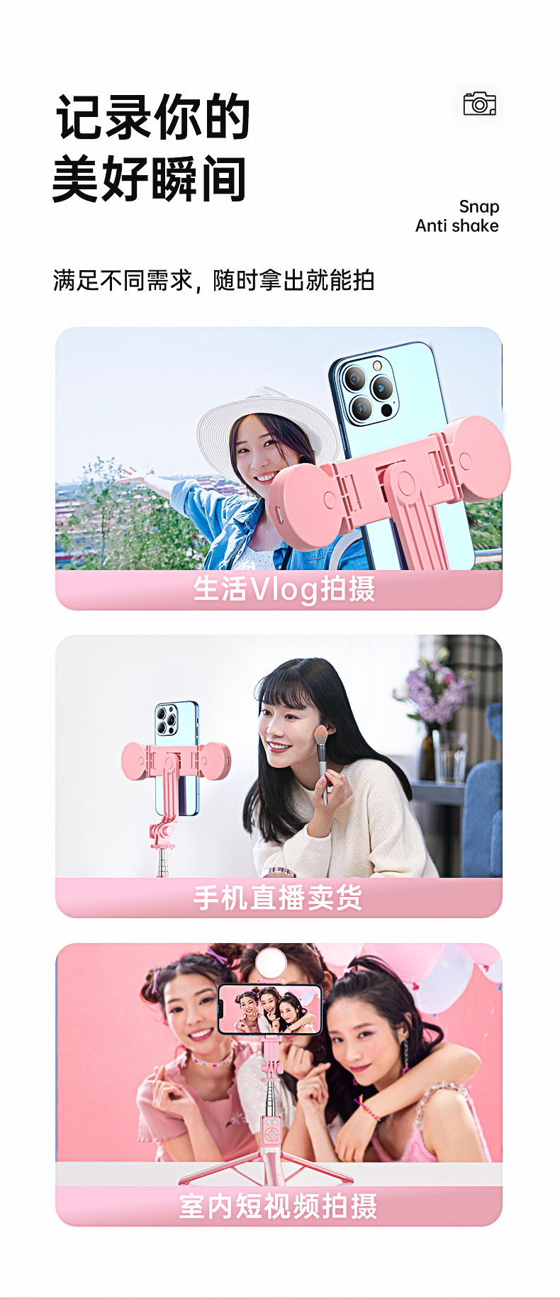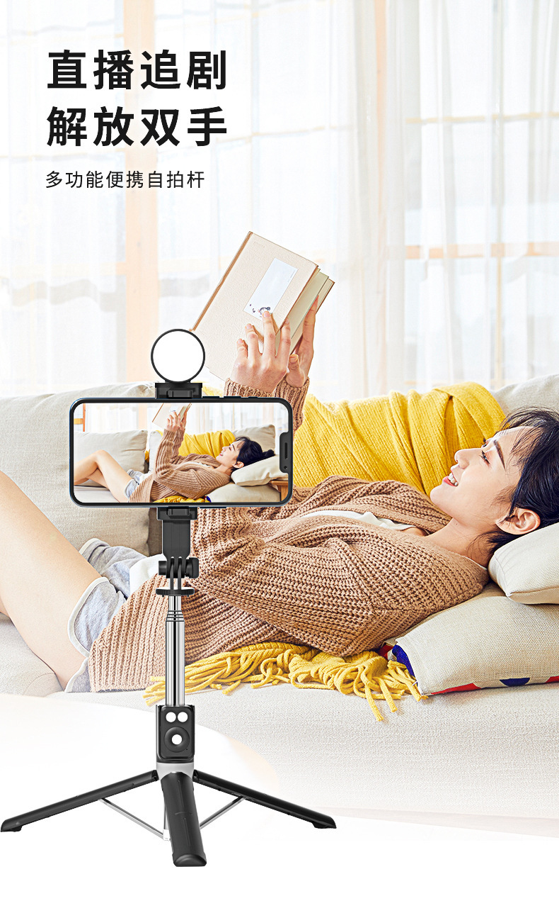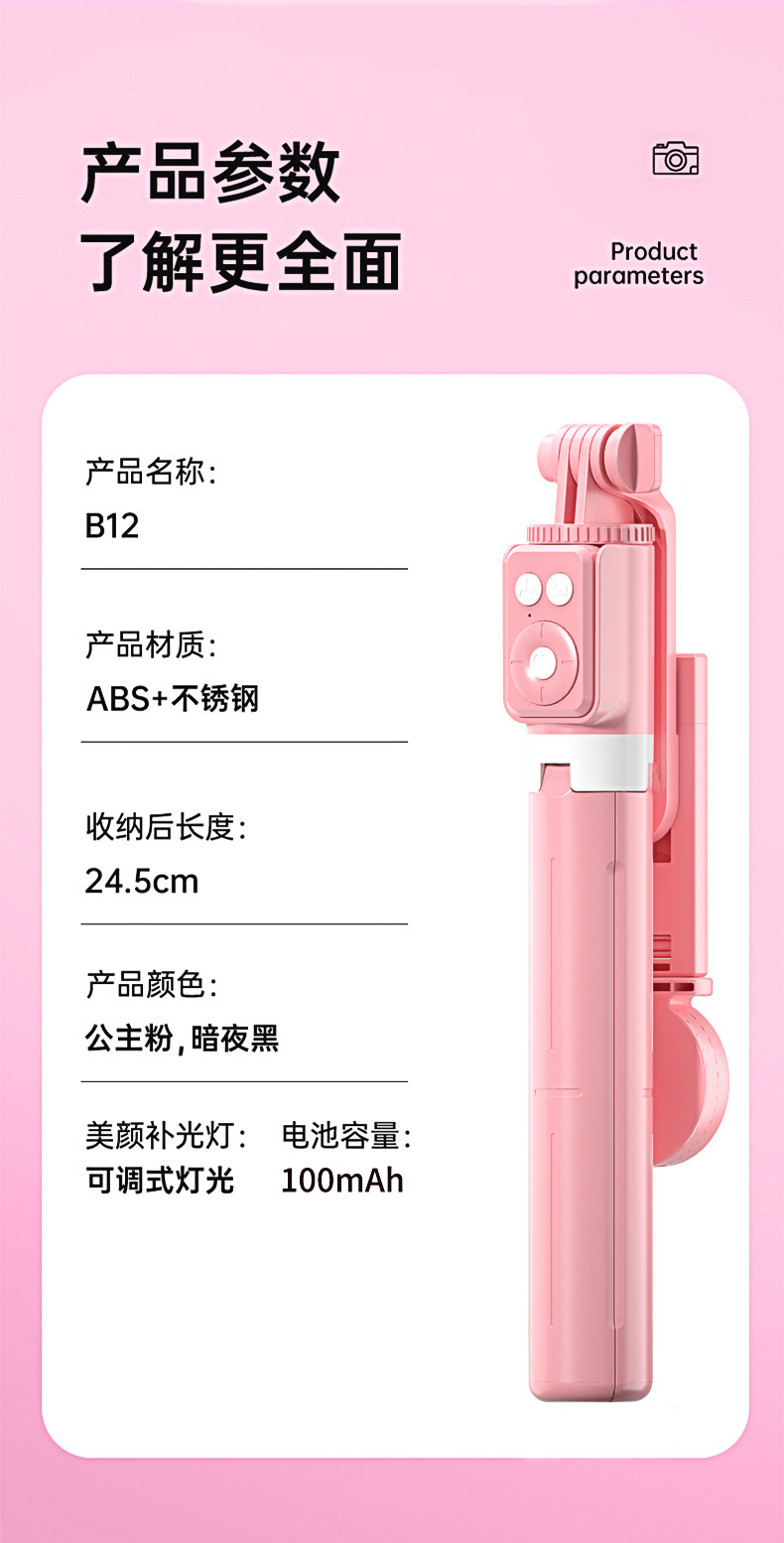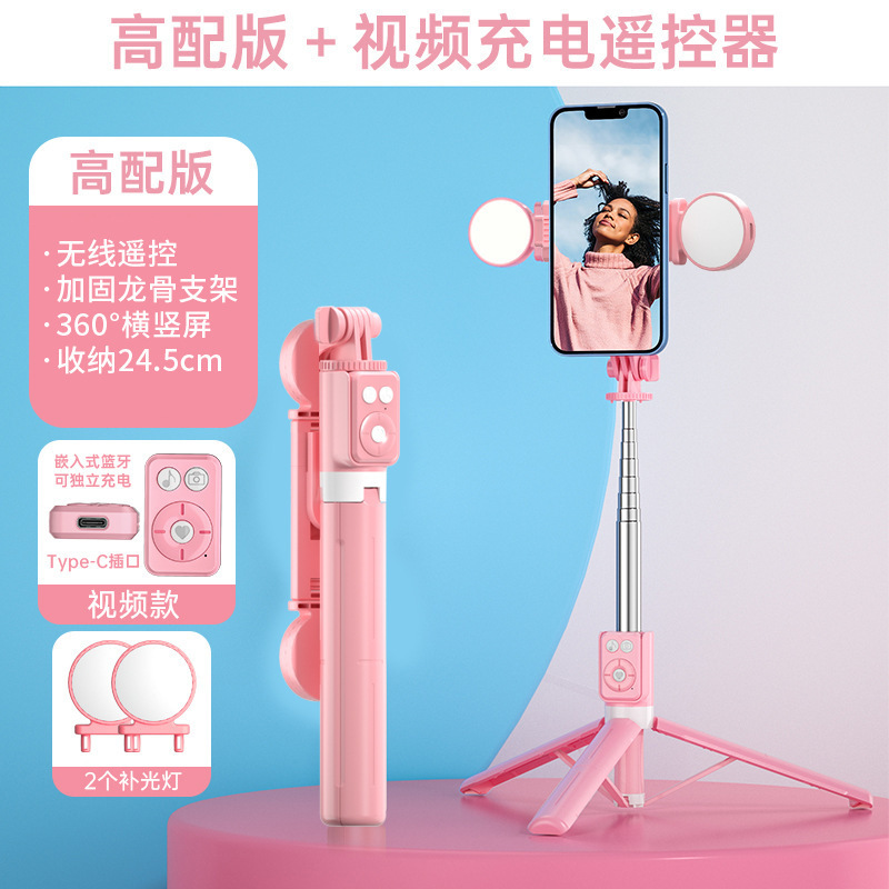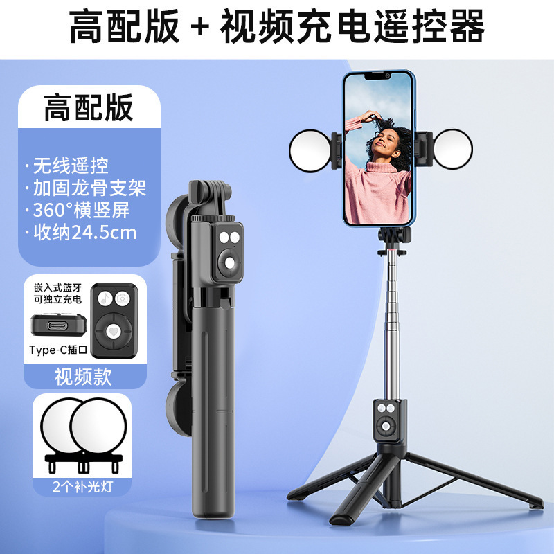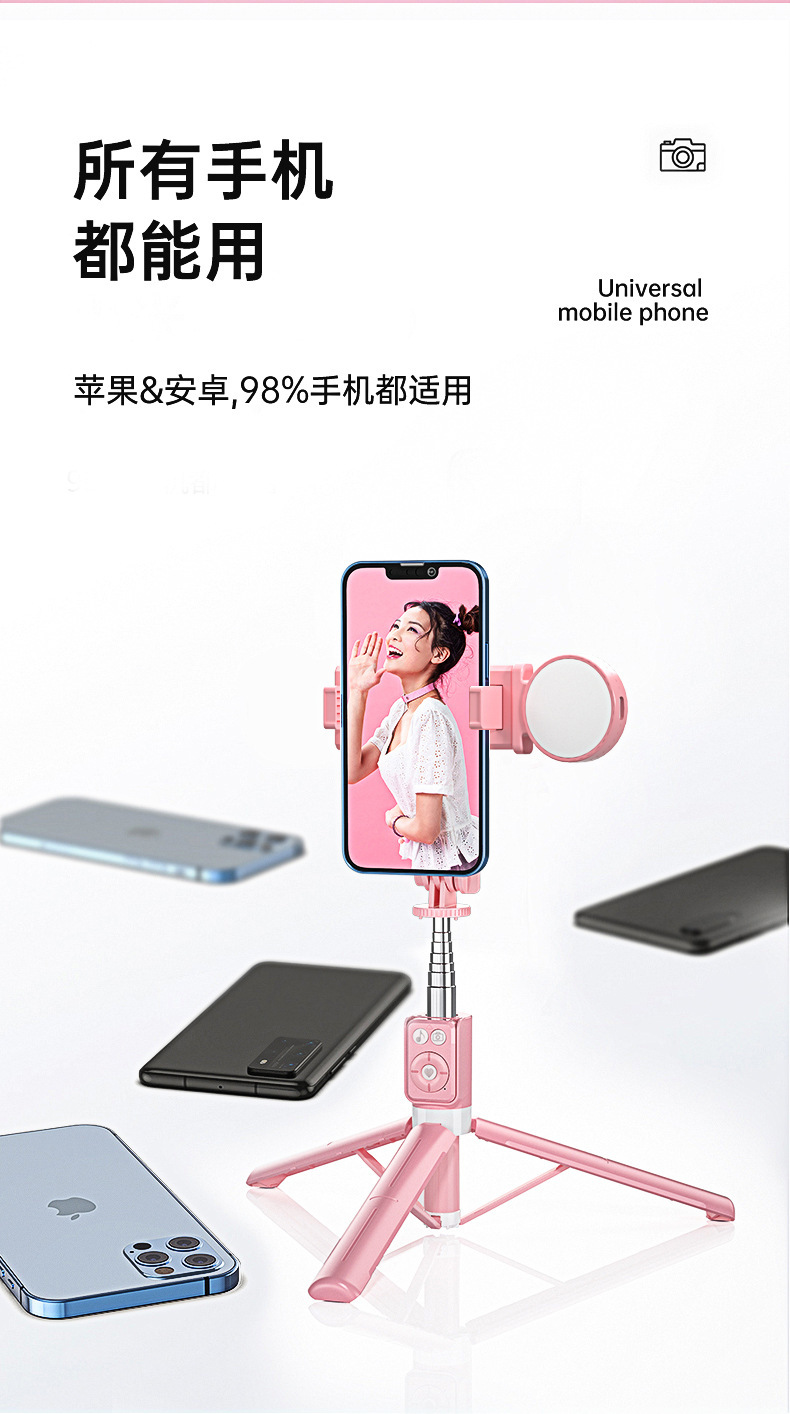 B12s 휴대 전화 셀카 스틱 브래킷 떨림 블루투스 셀카 분리 가능한 라이브 라이트 채우기 라이트 데스크탑 삼각대