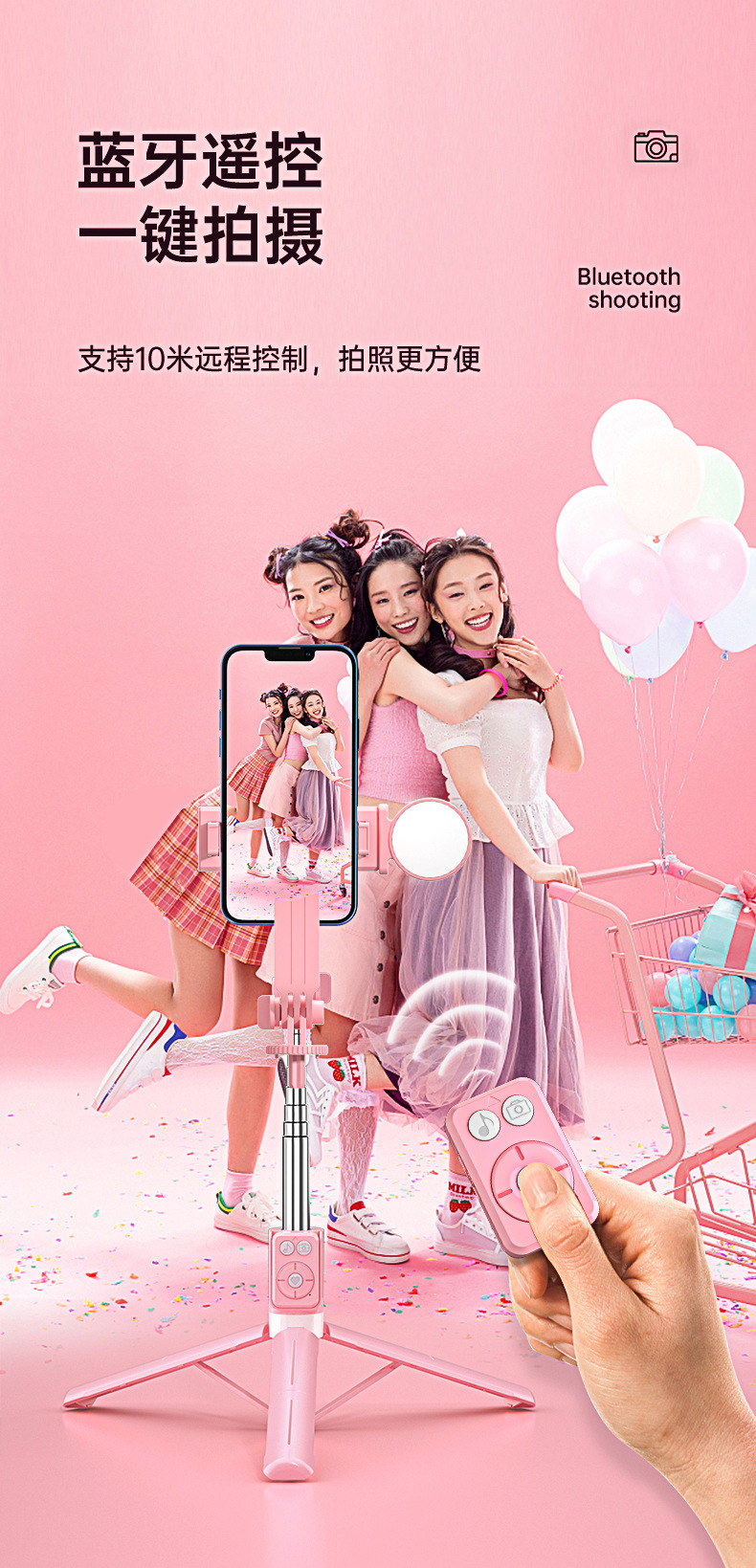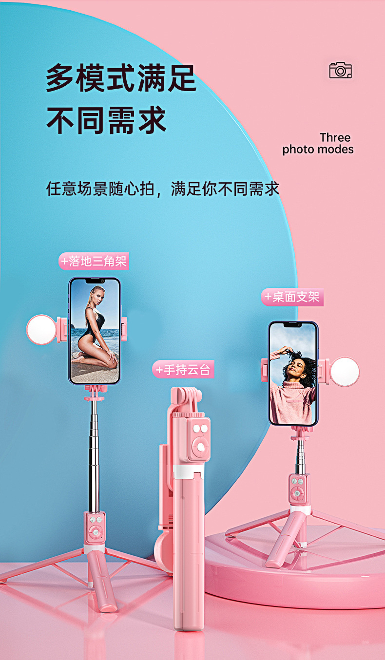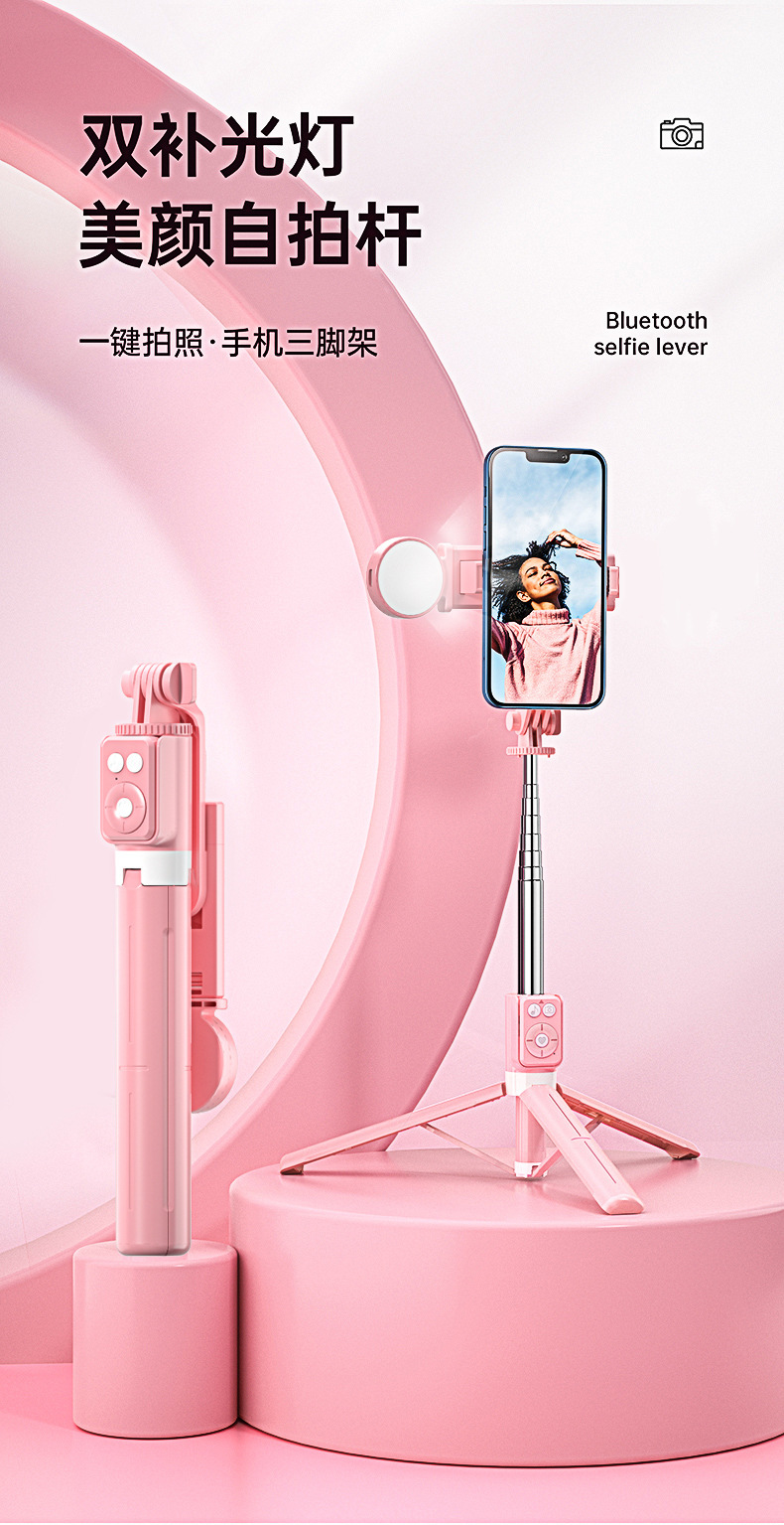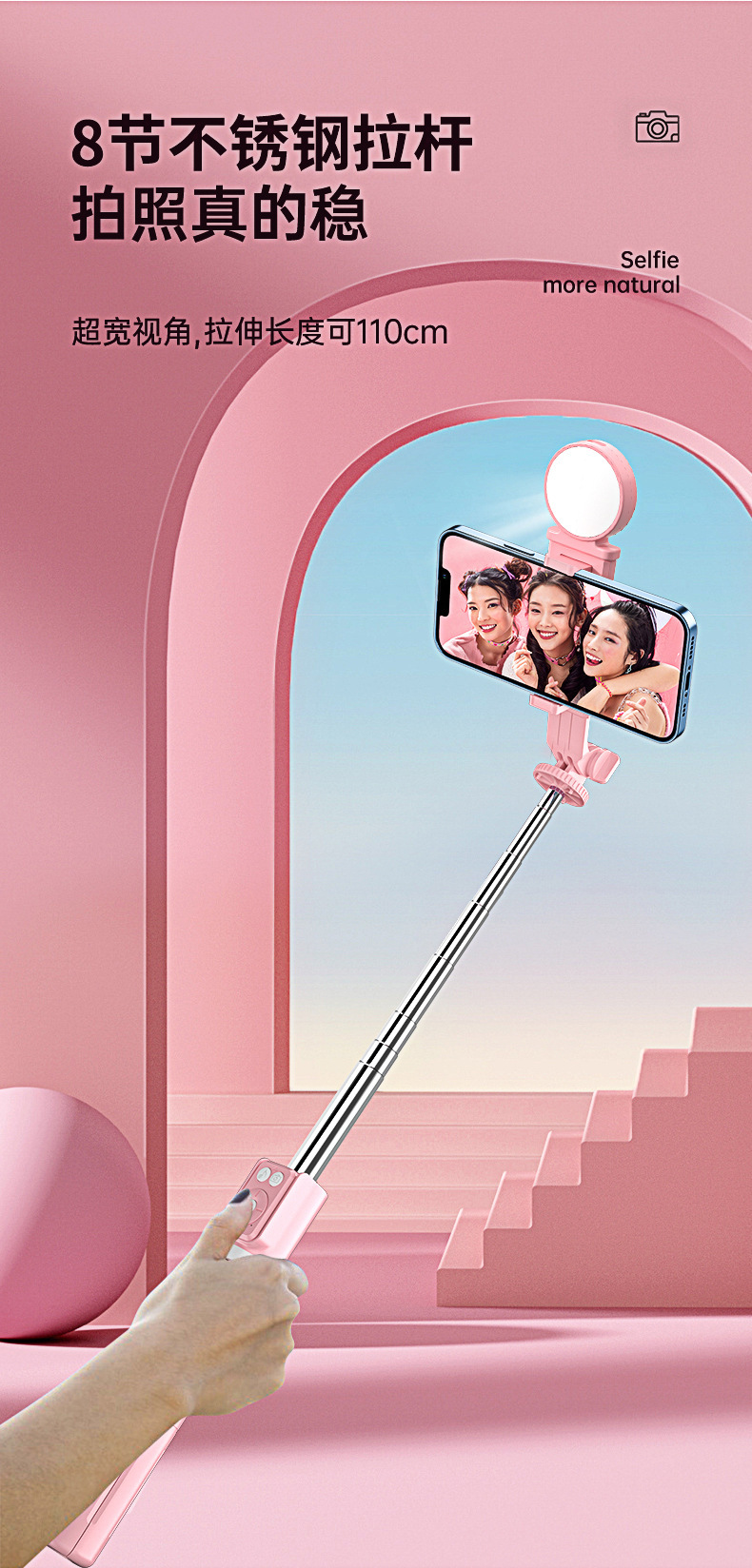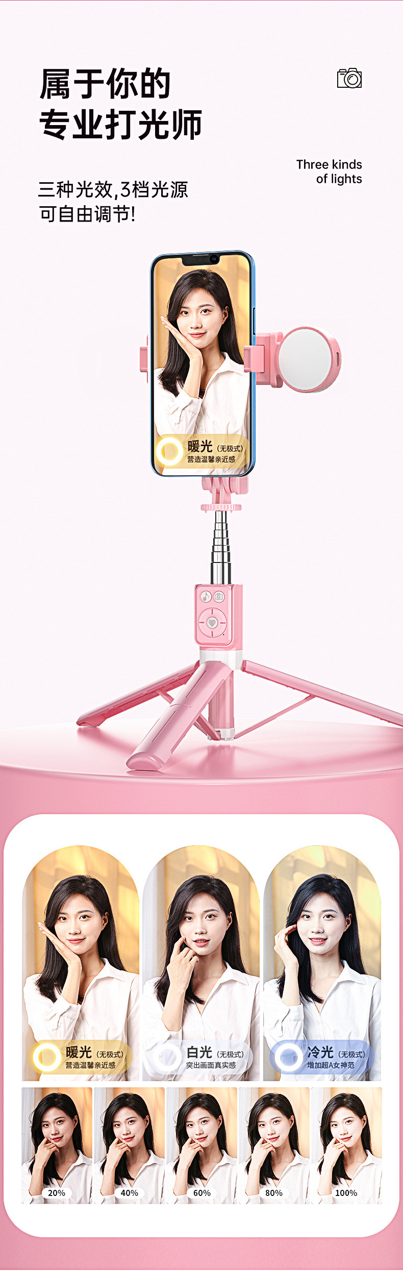 B12s 휴대 전화 셀카 스틱 브래킷 떨림 블루투스 셀카 분리 가능한 라이브 라이트 채우기 라이트 데스크탑 삼각대