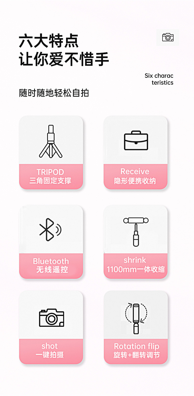 • B12 셀카 스탠드 [라이트 없는 핑크] (1.1m )