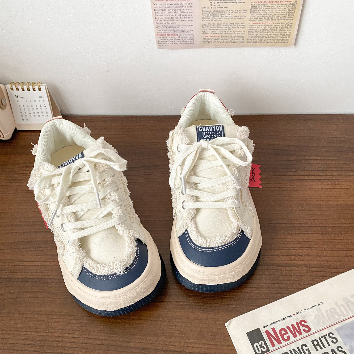 Xiaozhong 두꺼운 밑창 작은 흰색 신발 여성의 2024 봄과 가을 신입생 올 매치 캔버스 신발 캐주얼 스포츠 보드 신발